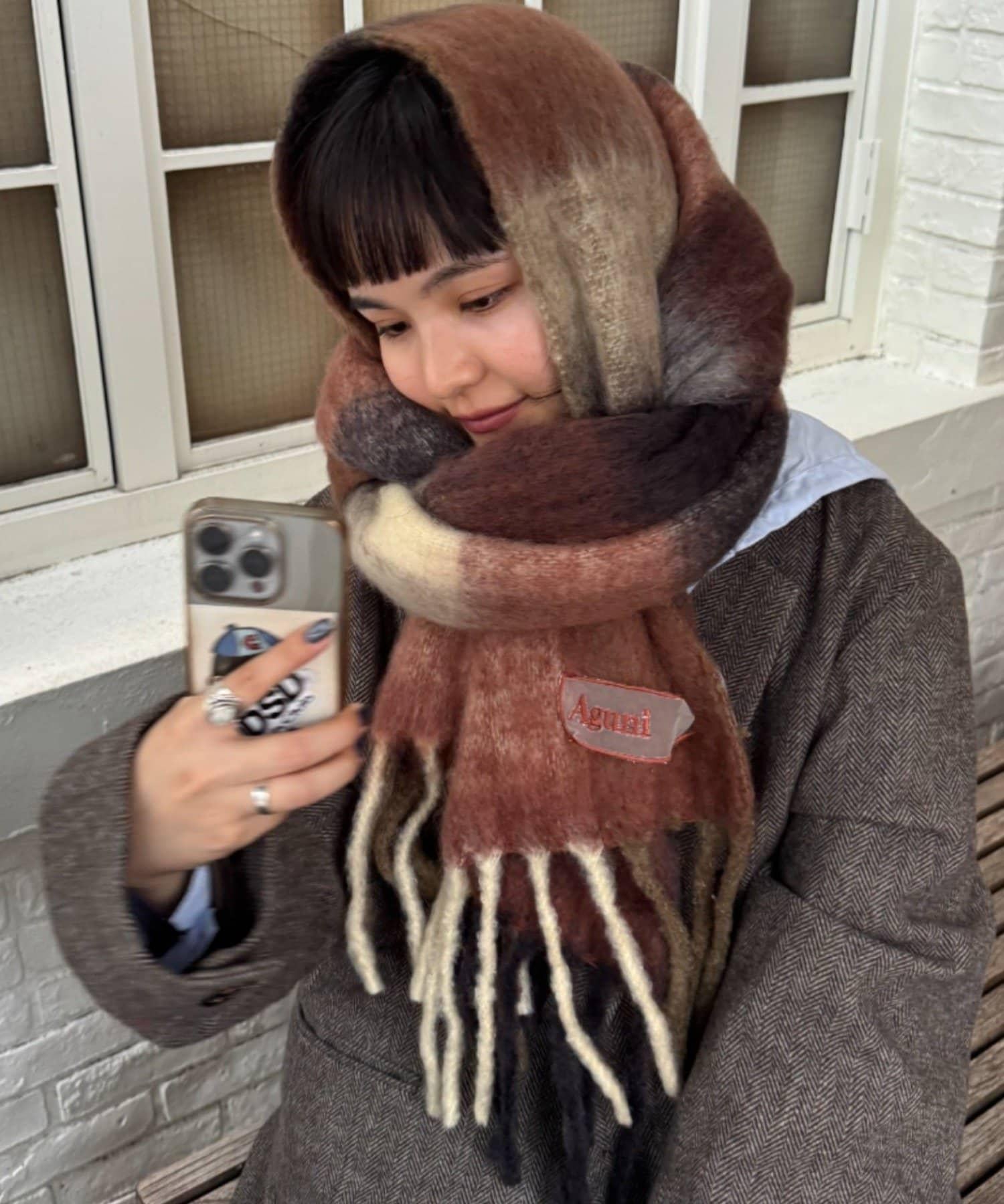 色彩柔和、溫暖人心的格紋流蘇圍巾!