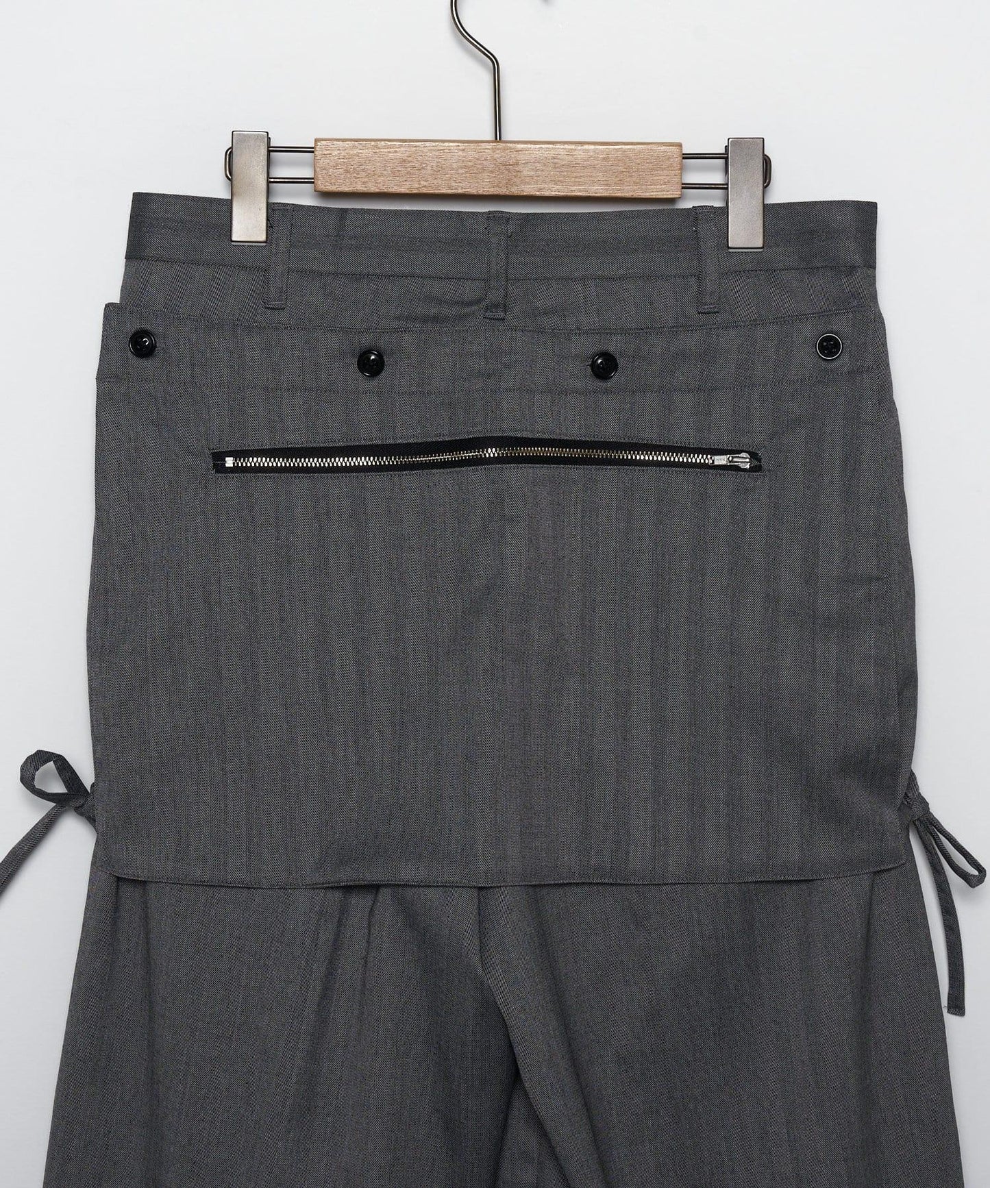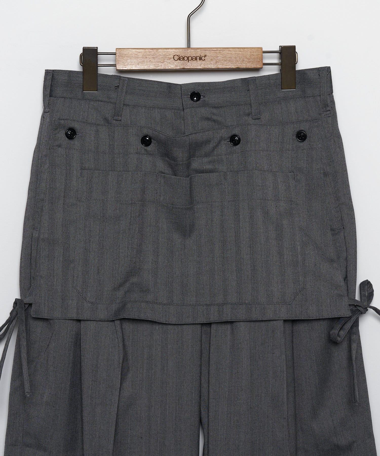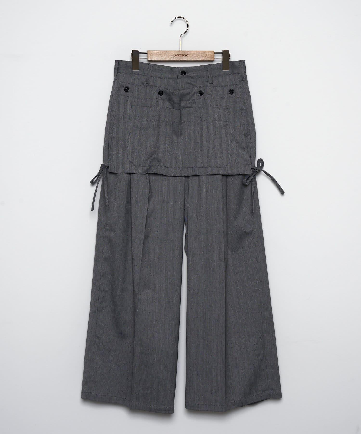 標準的寬鬆長褲現在配上了圍裙,使其更加獨特。