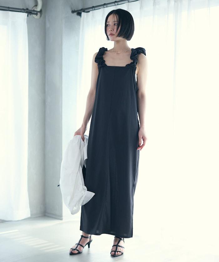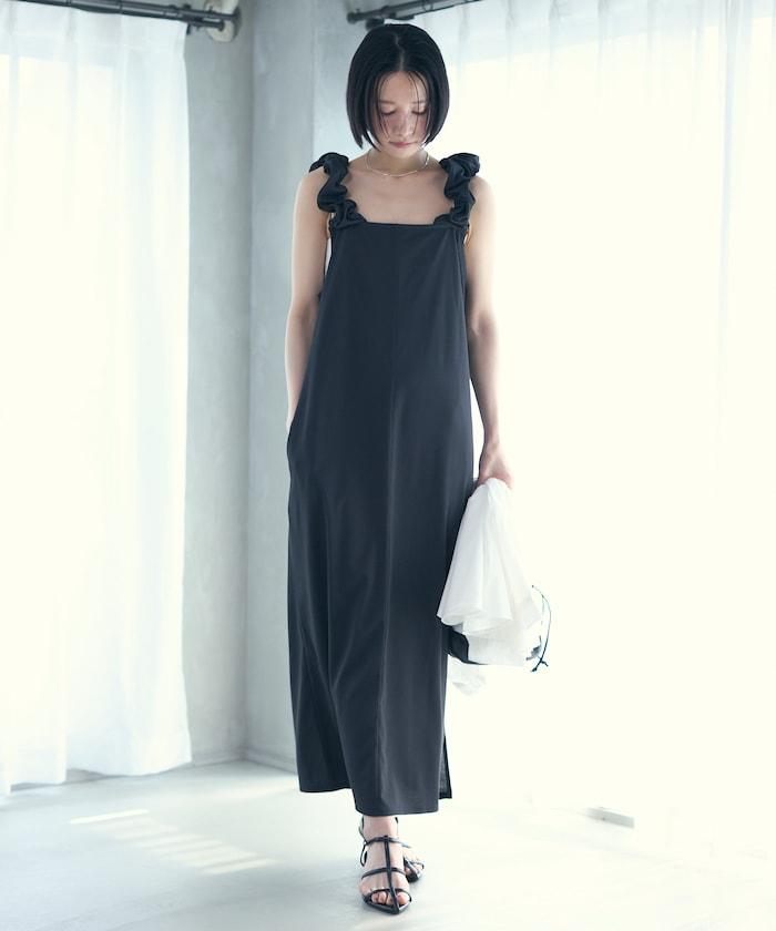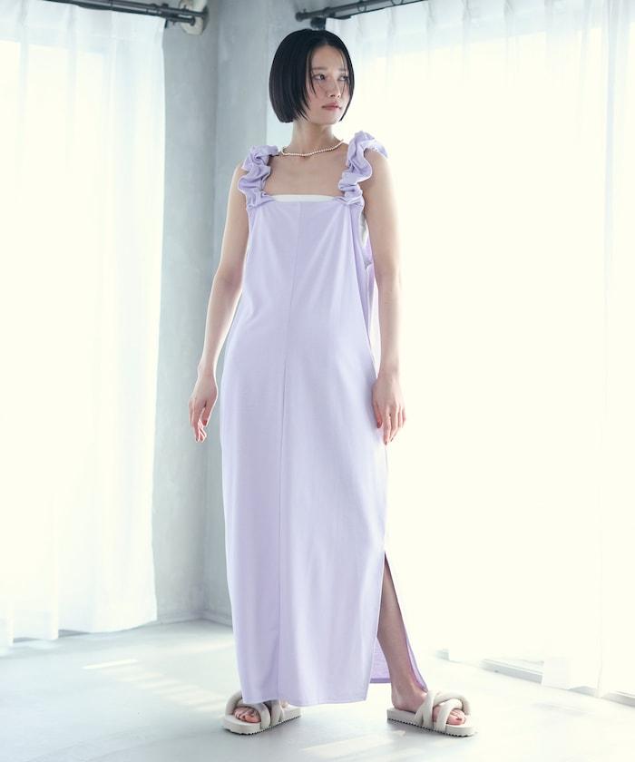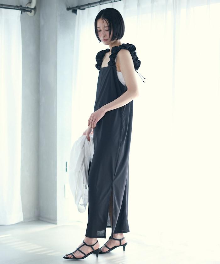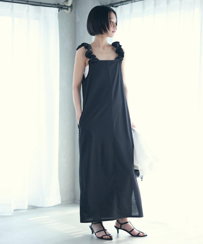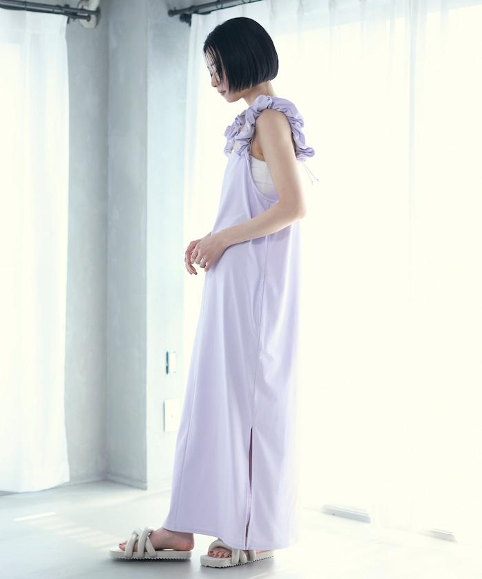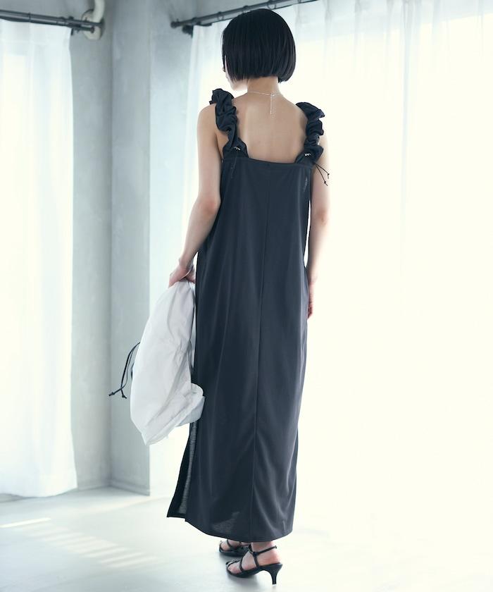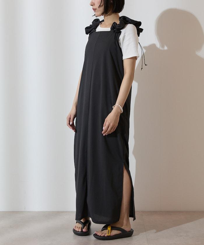 《AIR》DRY 吸溼速幹露肩連衣裙 / 空氣乾爽 褶皺長款連衣裙 / 吸水速幹 / 接觸冷感 / 防紫外線