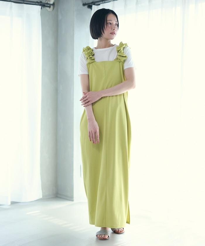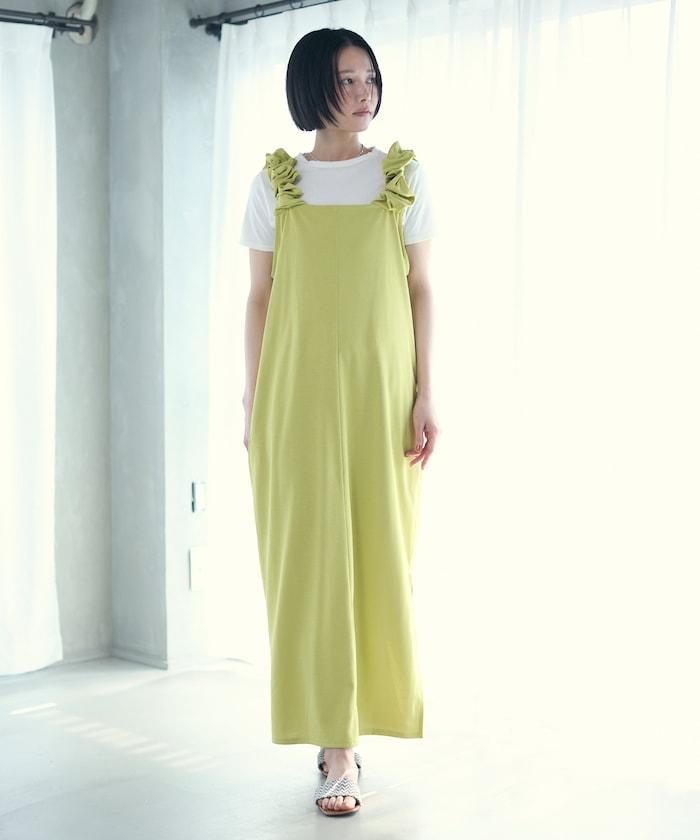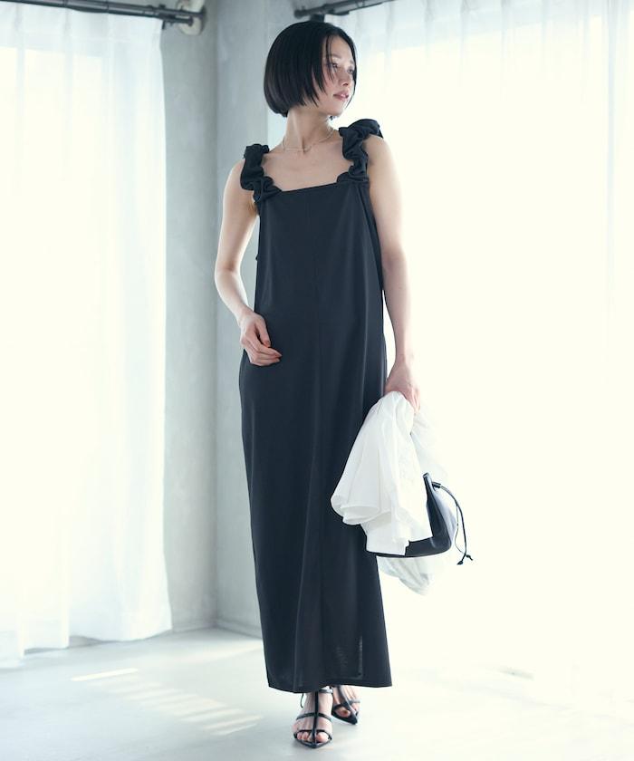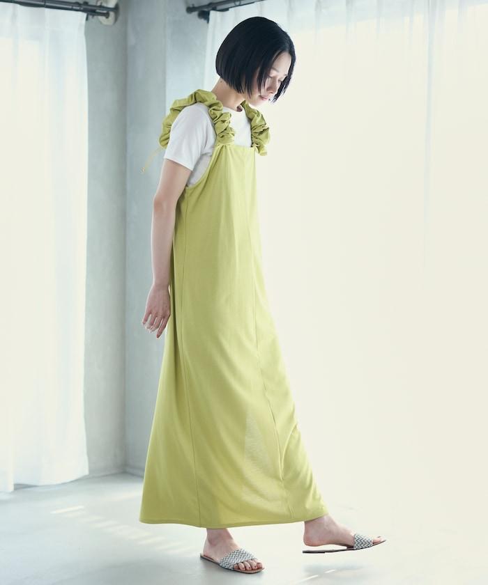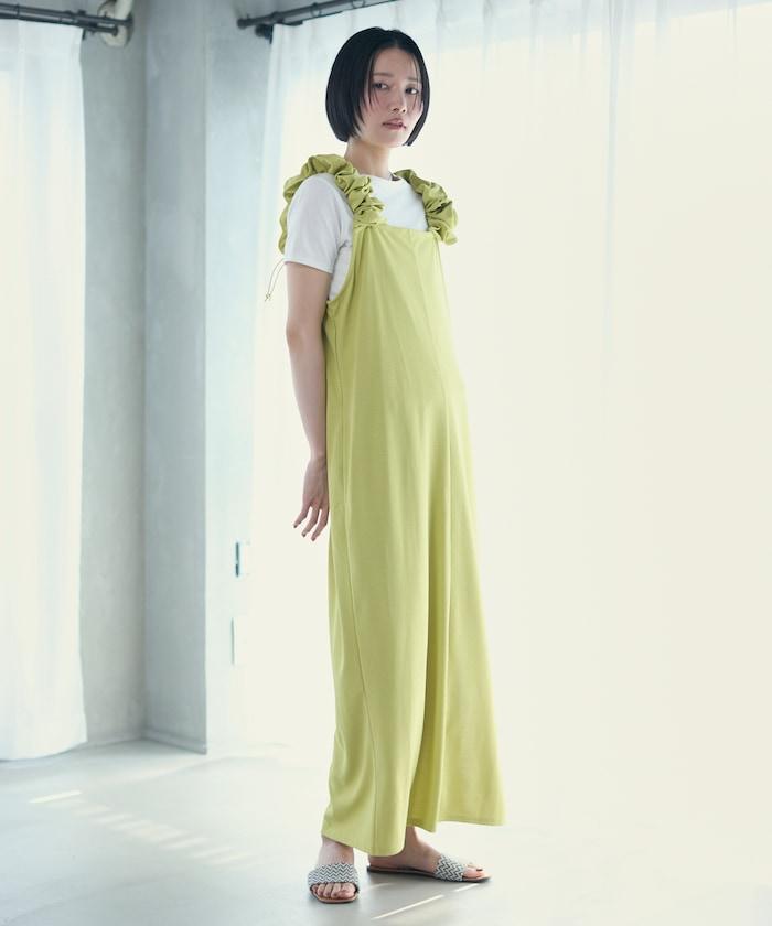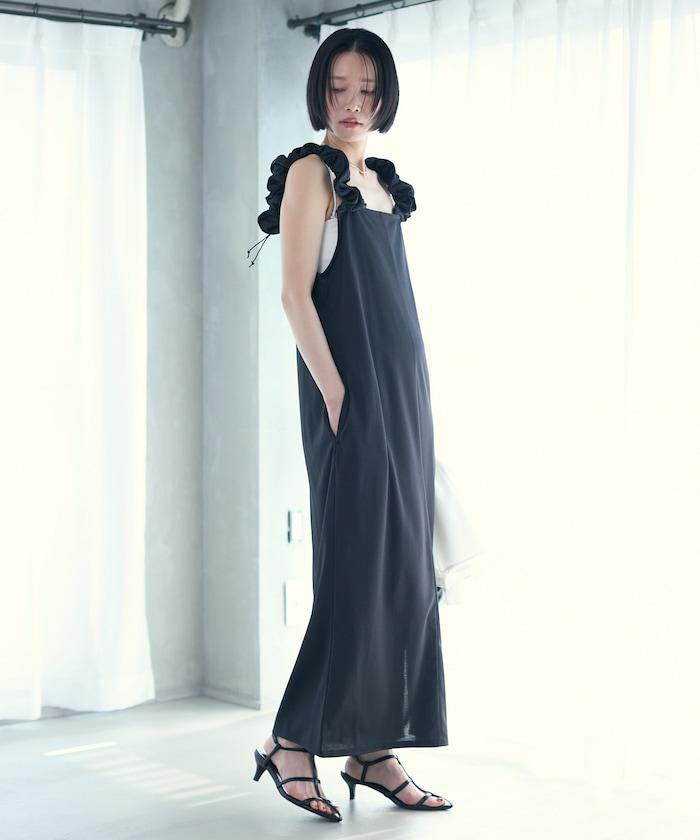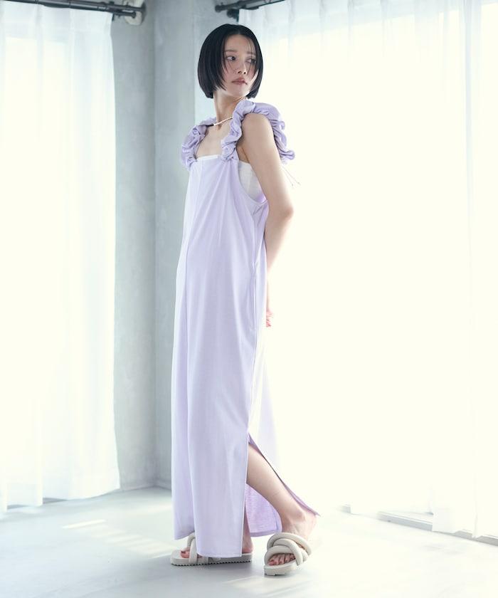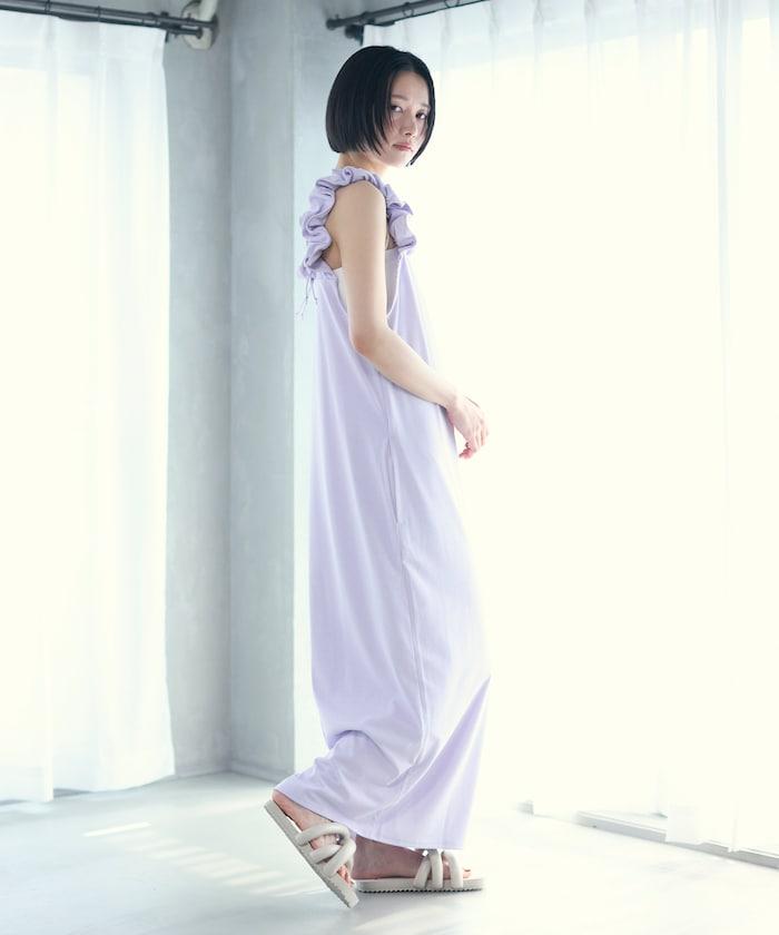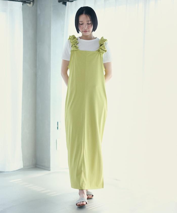 《AIR》DRY 吸溼速幹露肩連衣裙 / 空氣乾爽 褶皺長款連衣裙 / 吸水速幹 / 接觸冷感 / 防紫外線