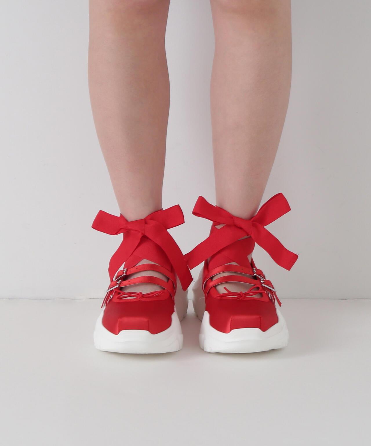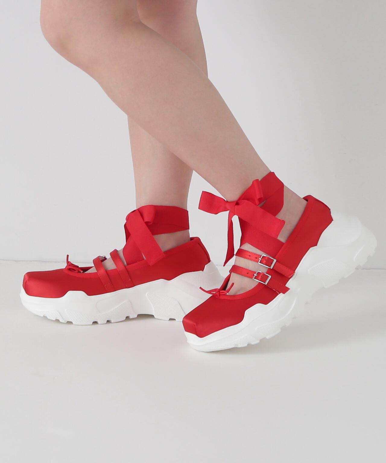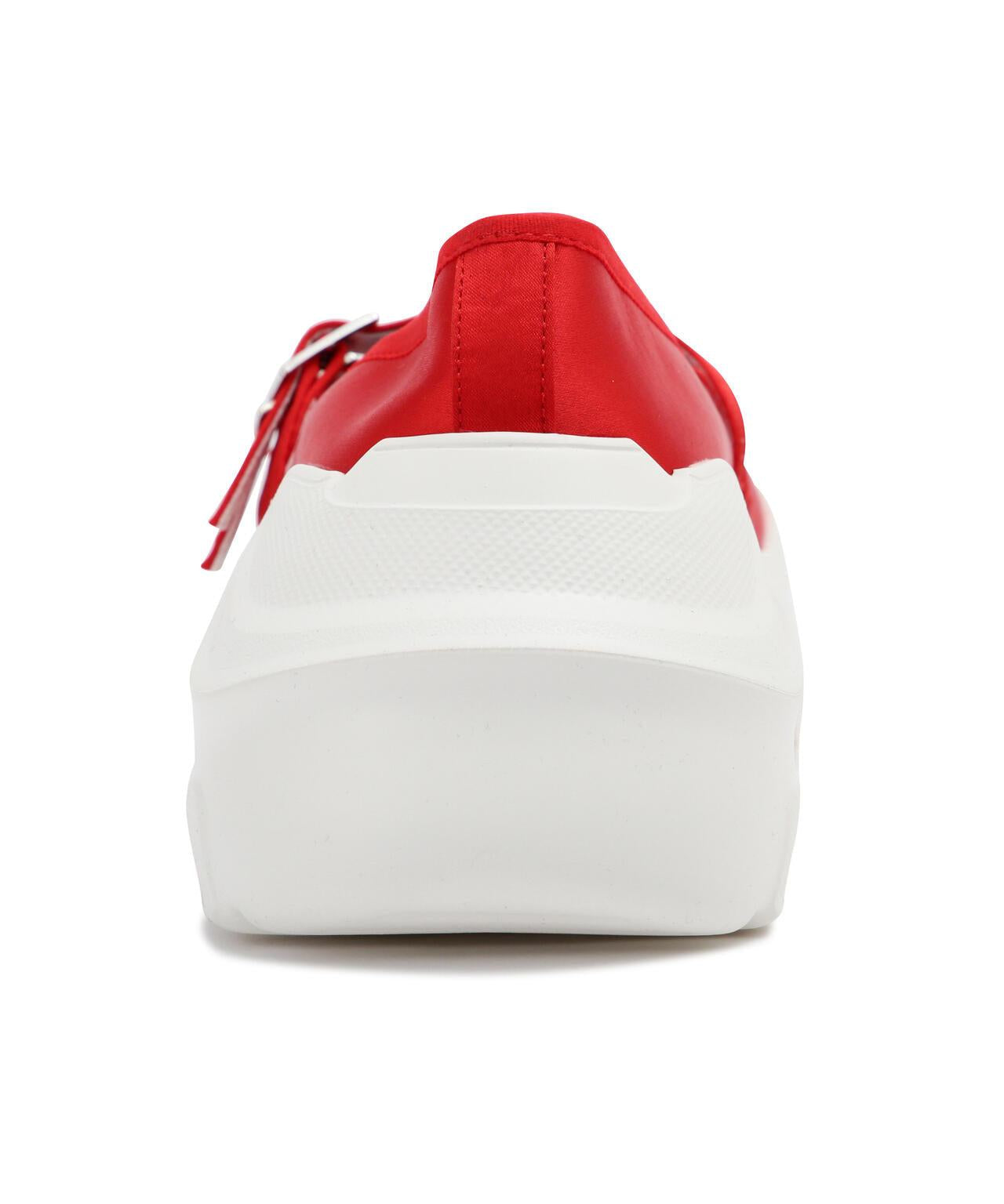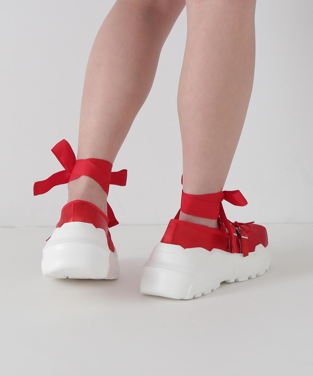 ROYAL FLASH 特別訂製產品吉賽爾系列緞面限量版設計,靈感來自芭蕾舞鞋,方形鞋頭和絲帶細節。緞面材料採用特有的硃紅色編織,其中一根經線或緯線長期漂浮在表面,給人以優雅迷人的印象,是時尚芭蕾舞核心風格的完美搭配。鞋上的絲帶可以取下,以獲得協調的外觀,腳背上的兩條腰帶可以調節合腳程度。