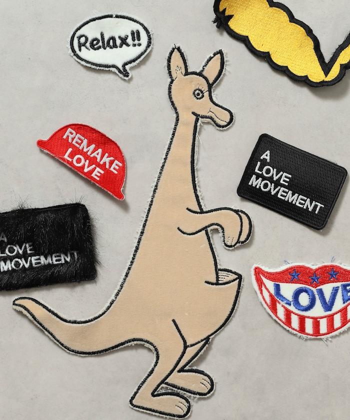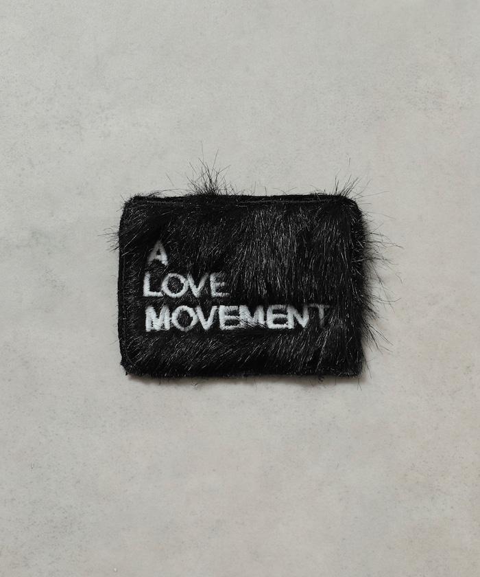 一個帶有可愛絨毛設計的 LOVE MOVEMENT 標誌徽章。