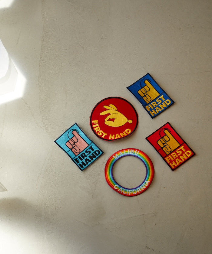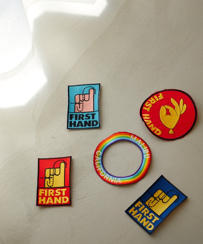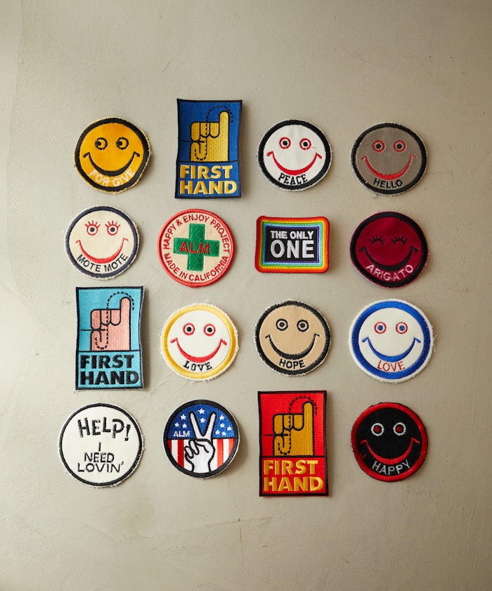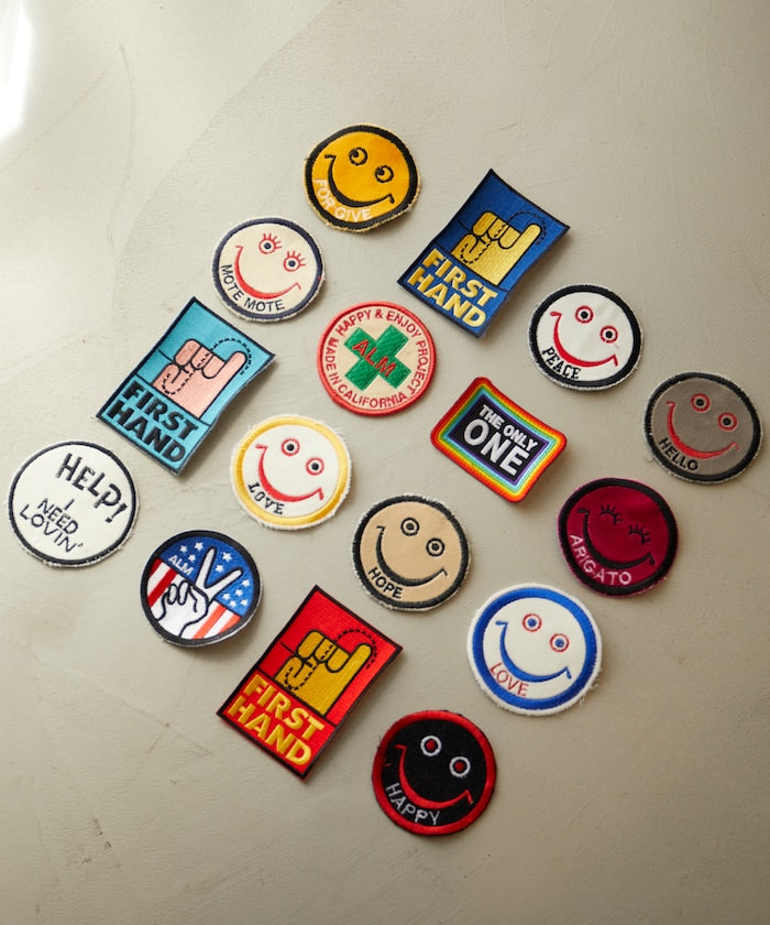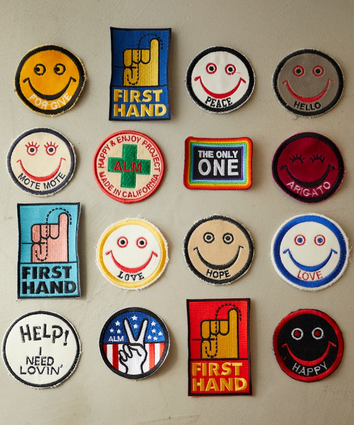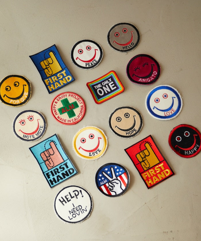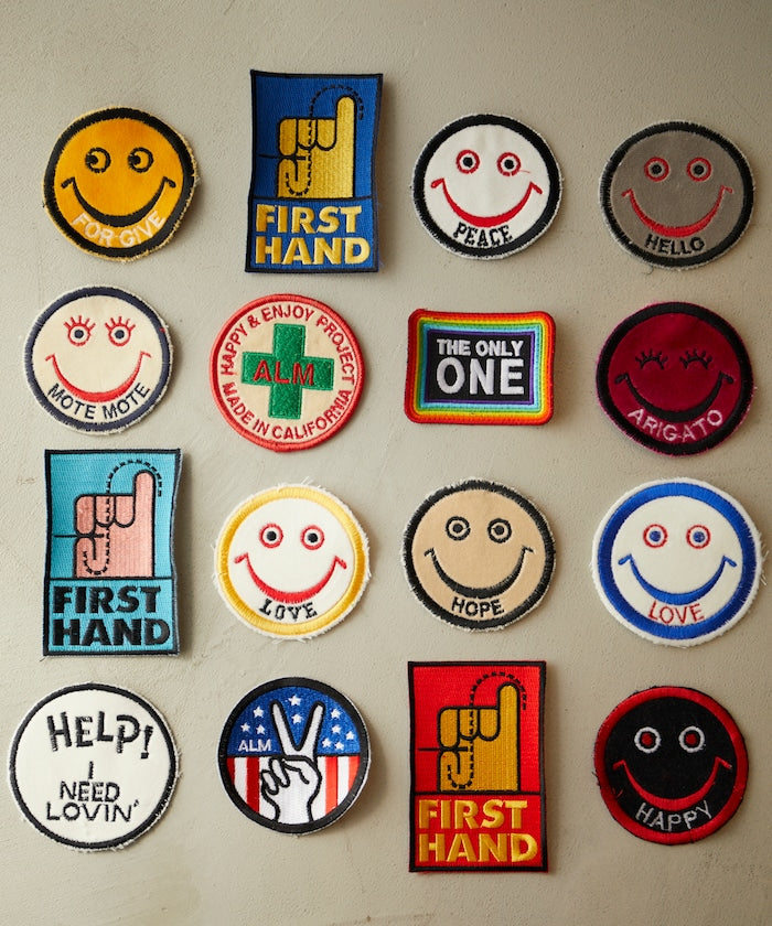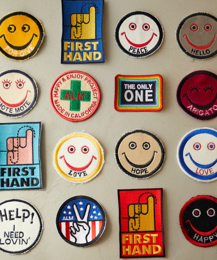 包括 ALM 的標準笑臉貼片和 Firsthand 👍銷售的品牌標誌設計。