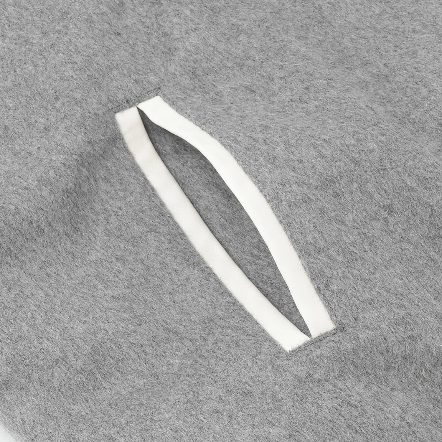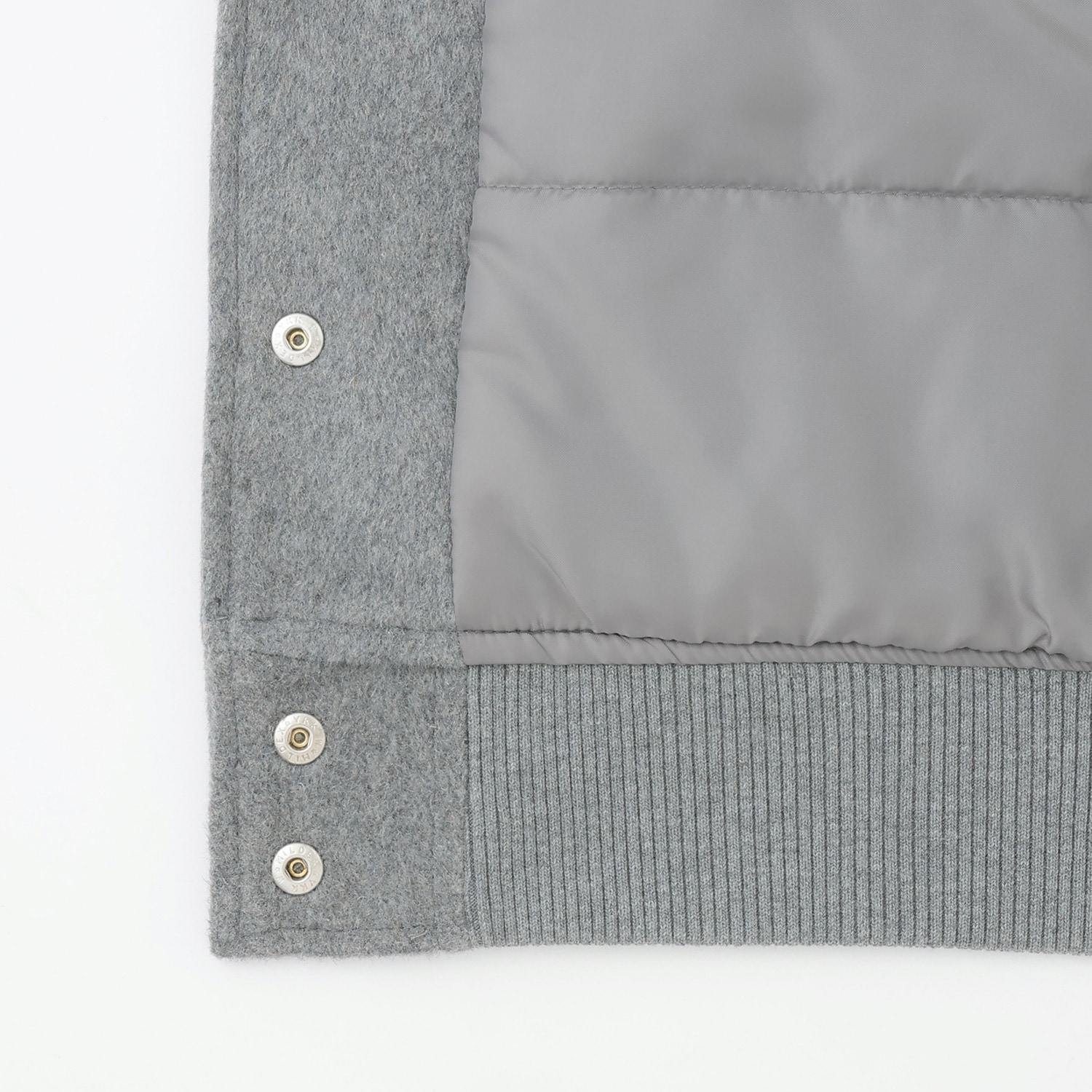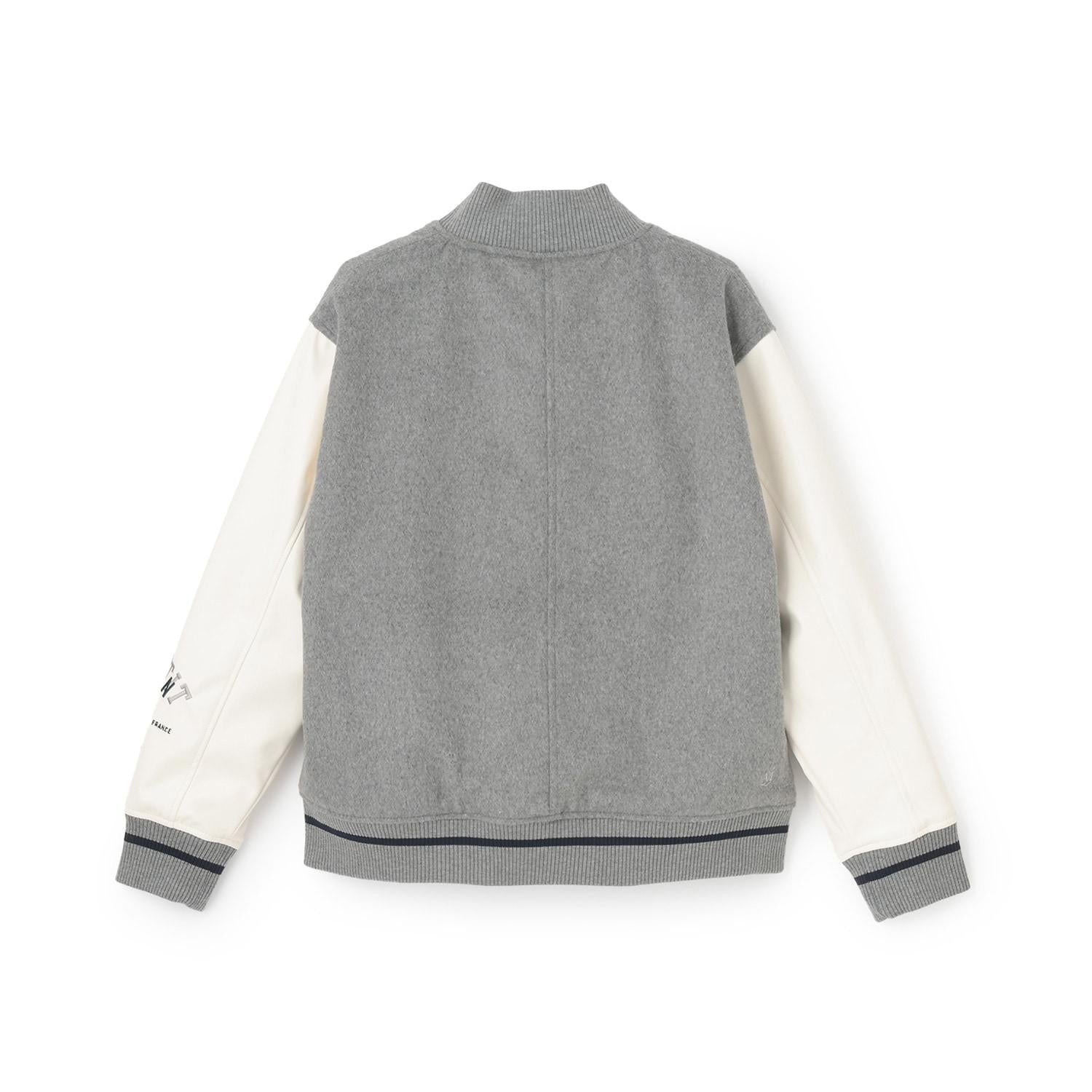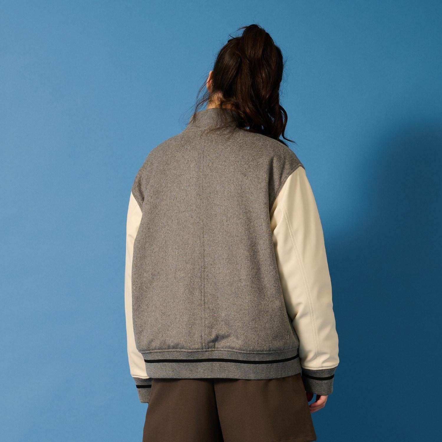 這是一款帶襯墊的夾克,袖子採用合成革製成。