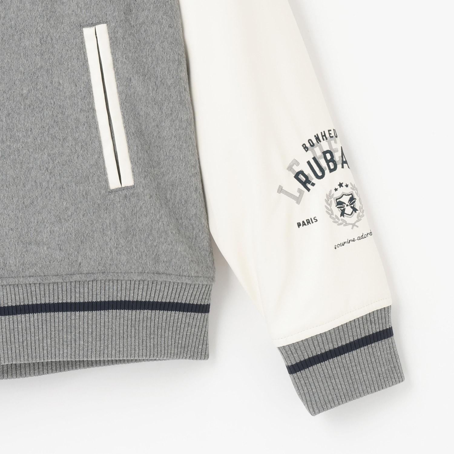 胸前的刺繡和嵯峨徽章是設計亮點,羅紋部分線條流暢,但成熟穩重。
