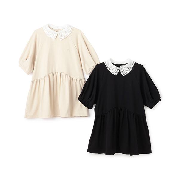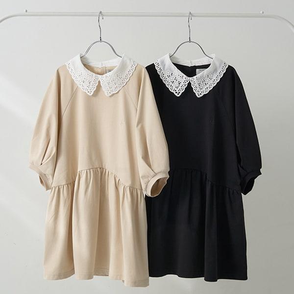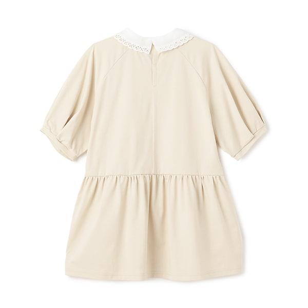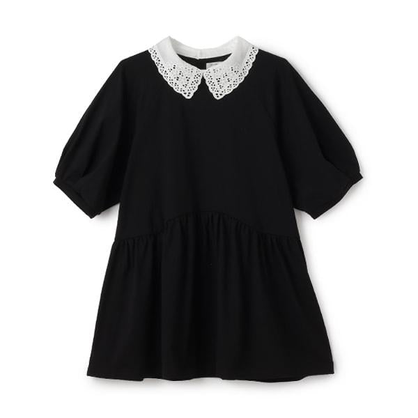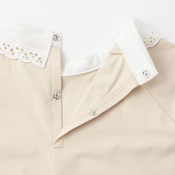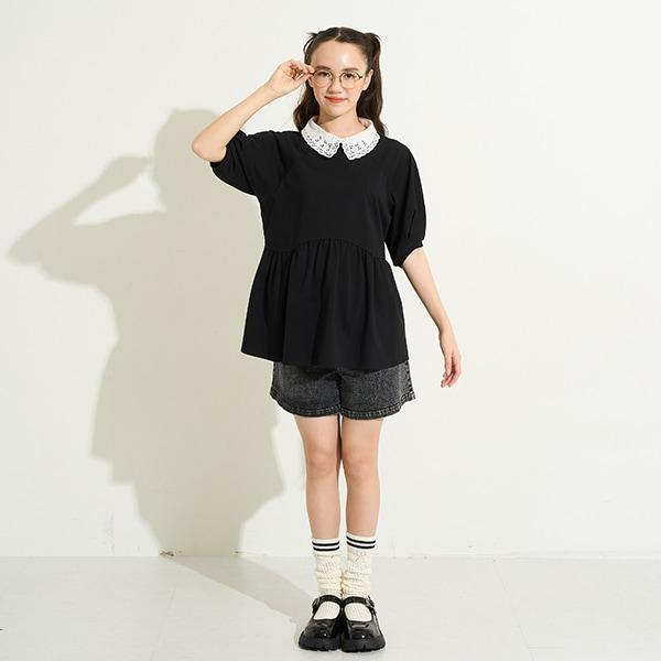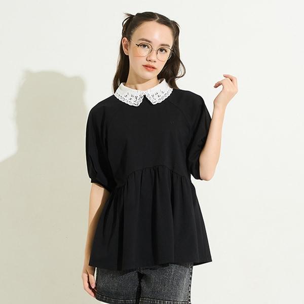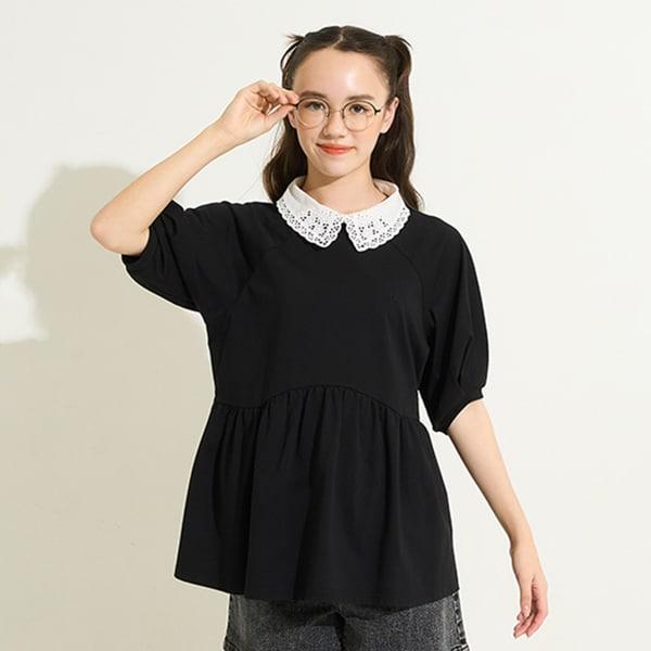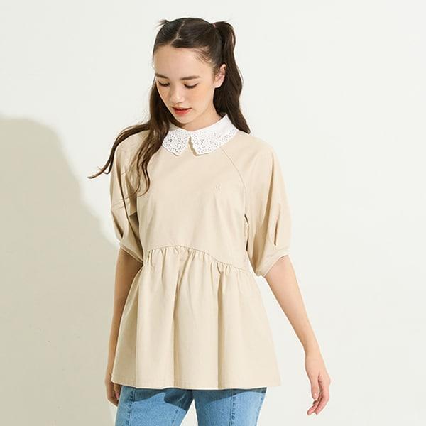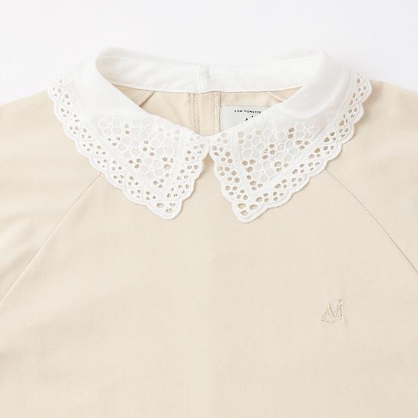 【AMI】【接觸涼感】刺繡翻領荷葉邊下襬針織套頭衫