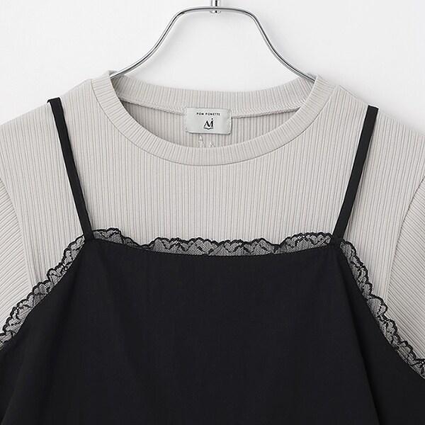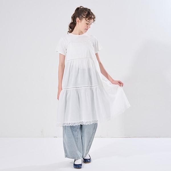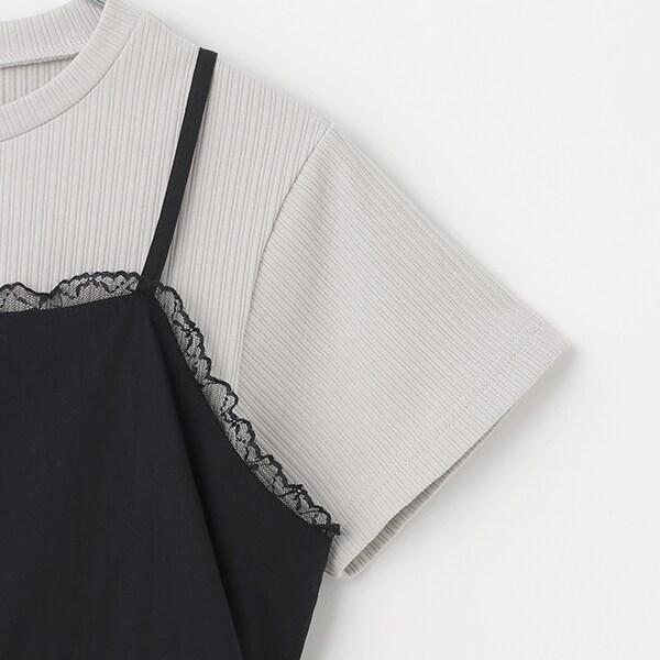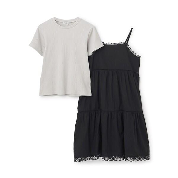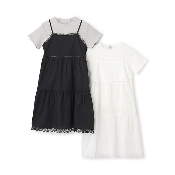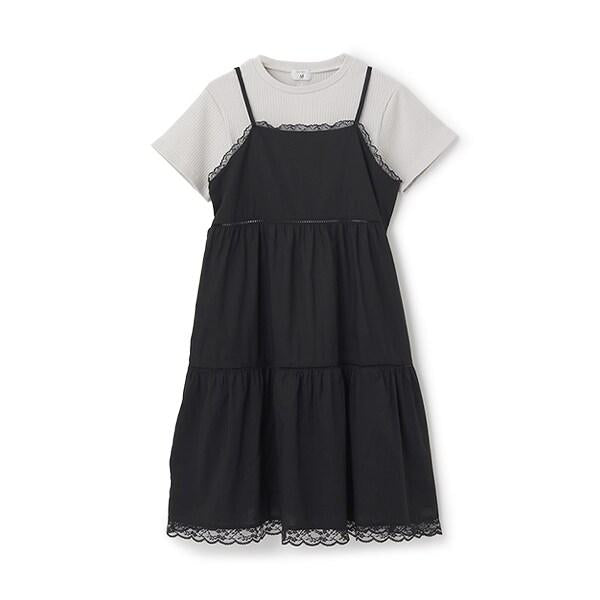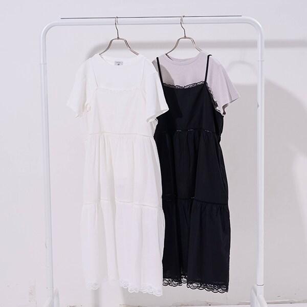 【AMI】棉質蕾絲吊帶連衣裙×T恤套裝