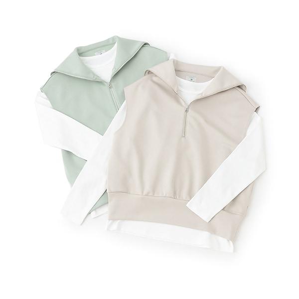 【AMI】水手風半拉鍊棉質背心×長袖T恤