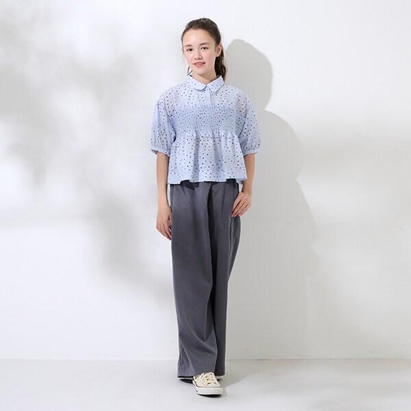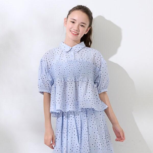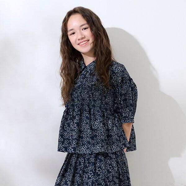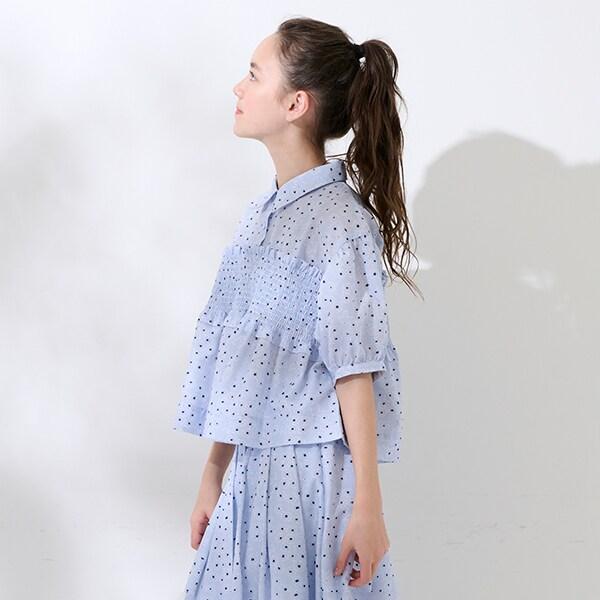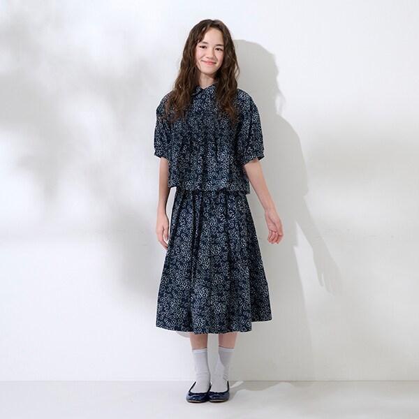 長度略微縮短,給人緊湊的印象。搭配同花紋的內搭短裙,可打造優雅的連身造型。