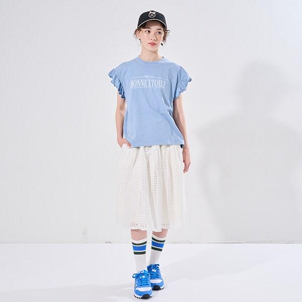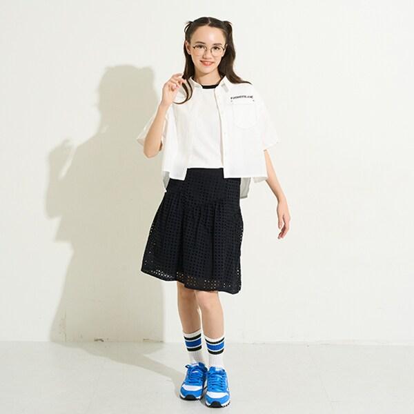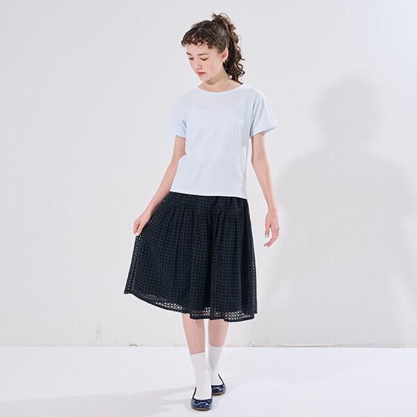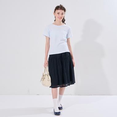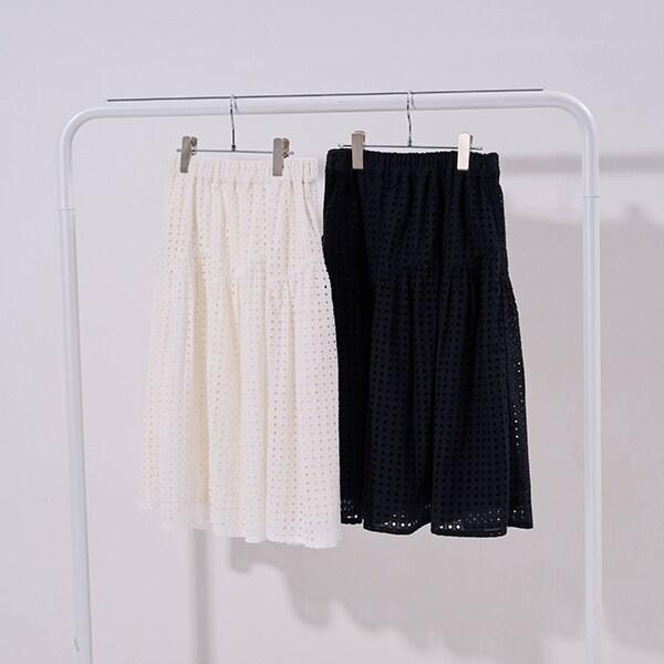 【AMI】鏤空蕾絲層疊半身裙