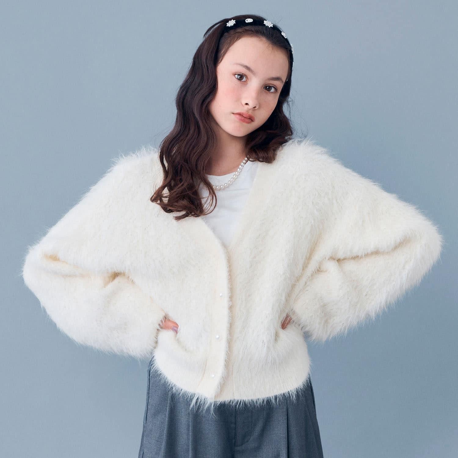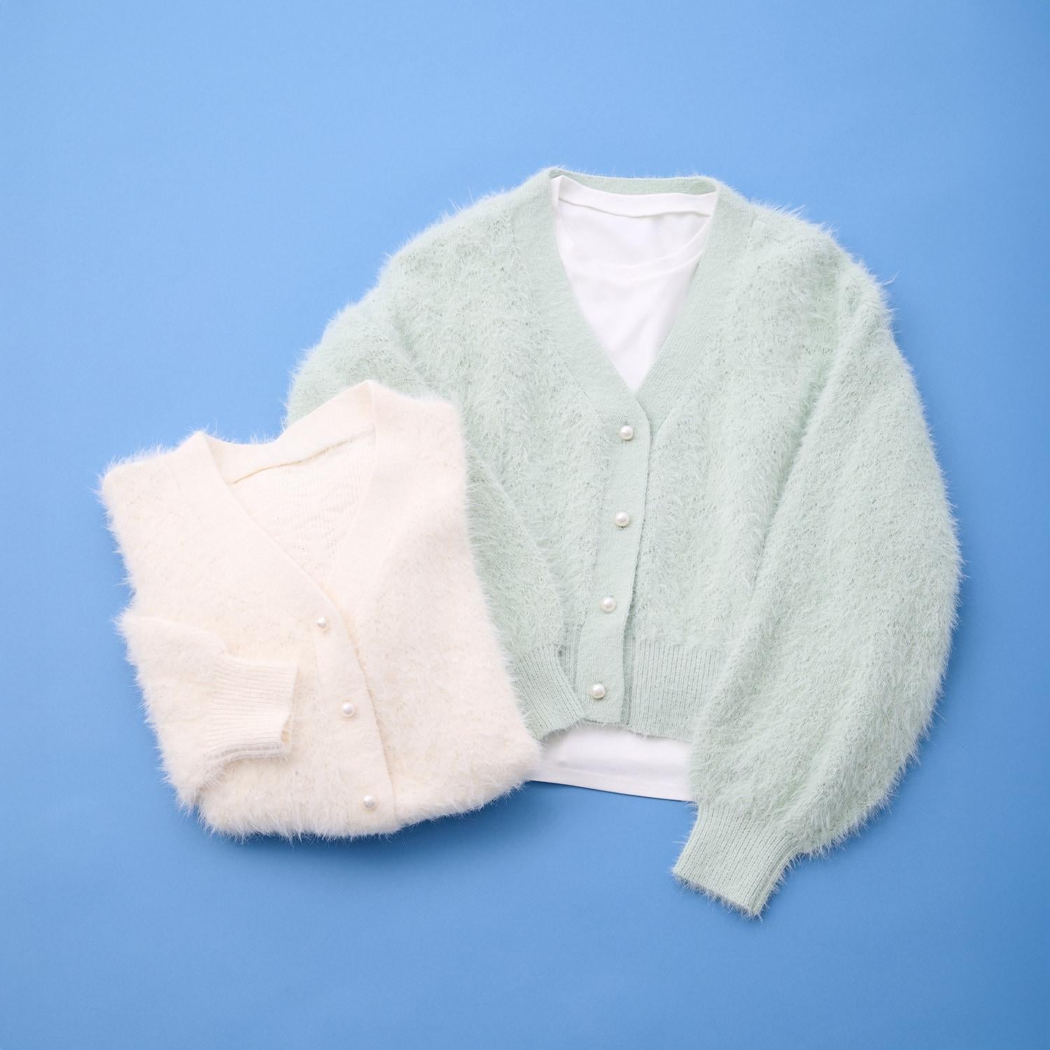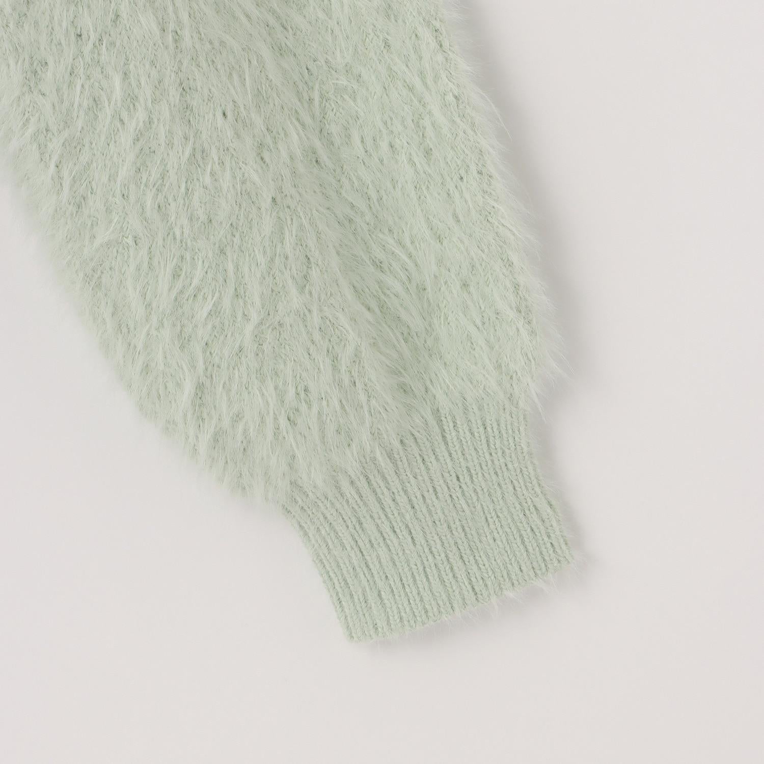柔軟輕盈的絨毛針織營造出溫柔的氛圍。