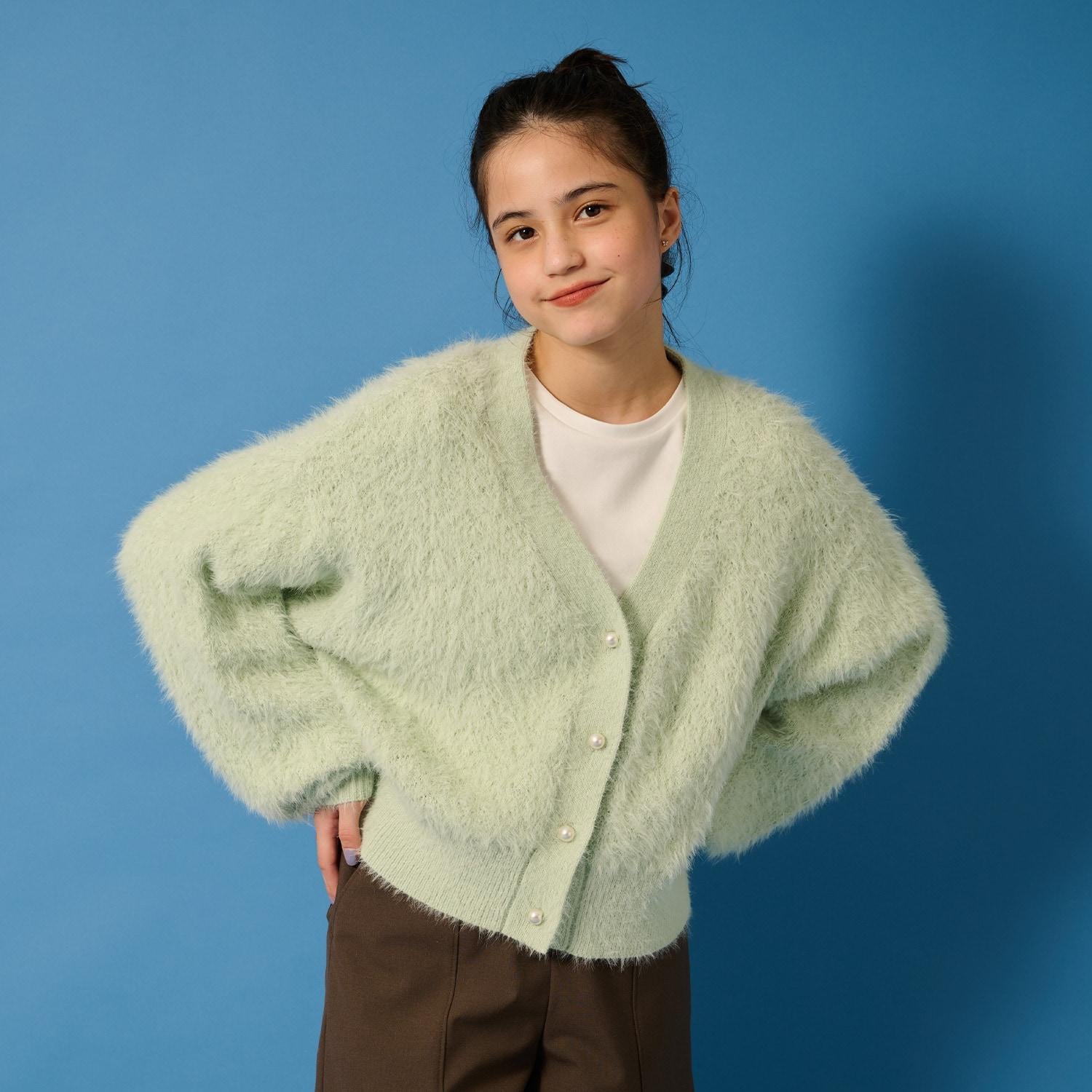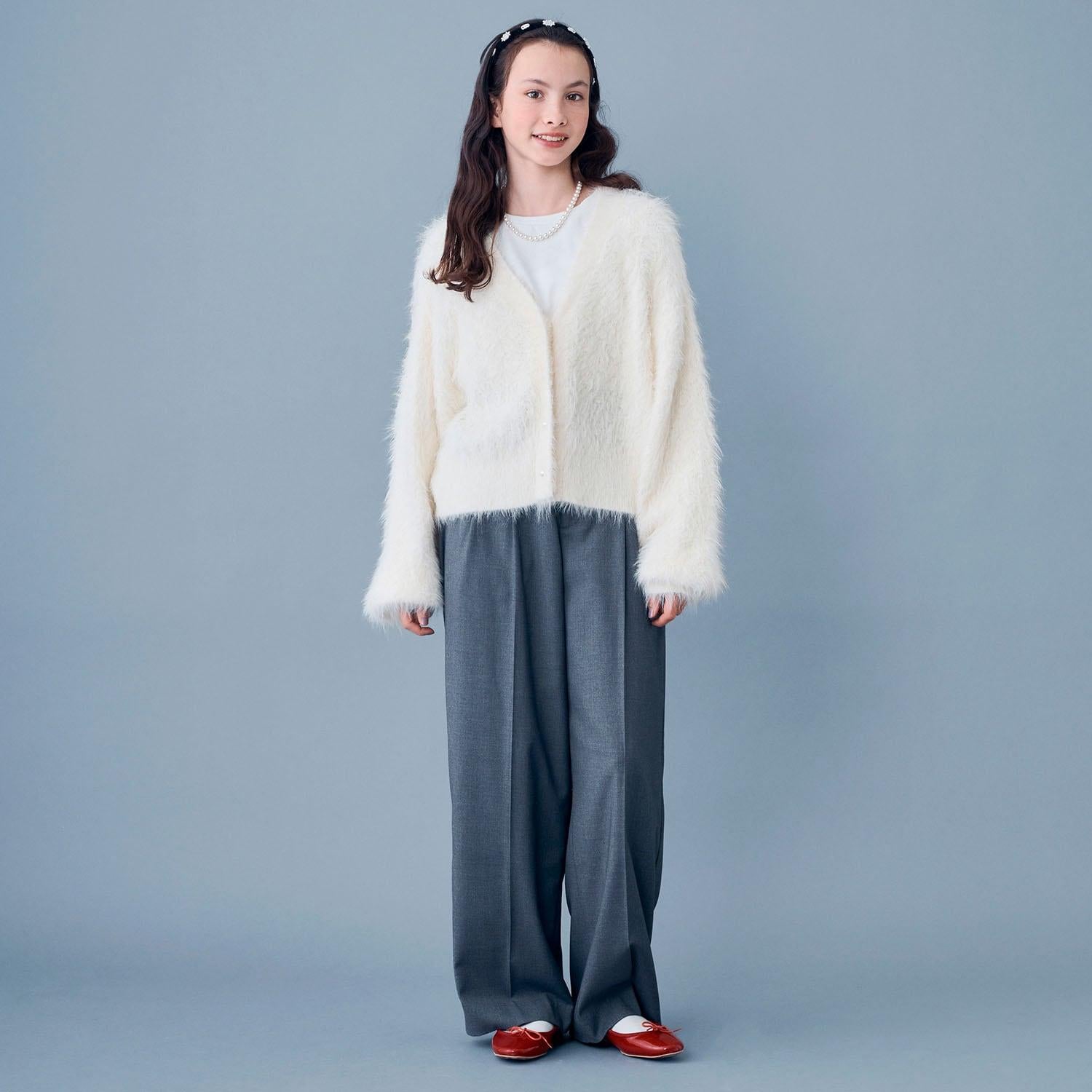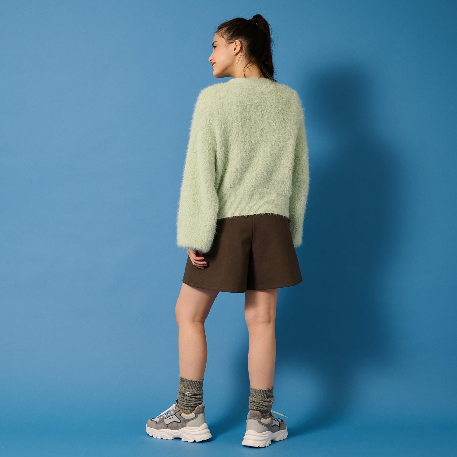 柔軟輕盈的絨毛針織營造出溫柔的氛圍。