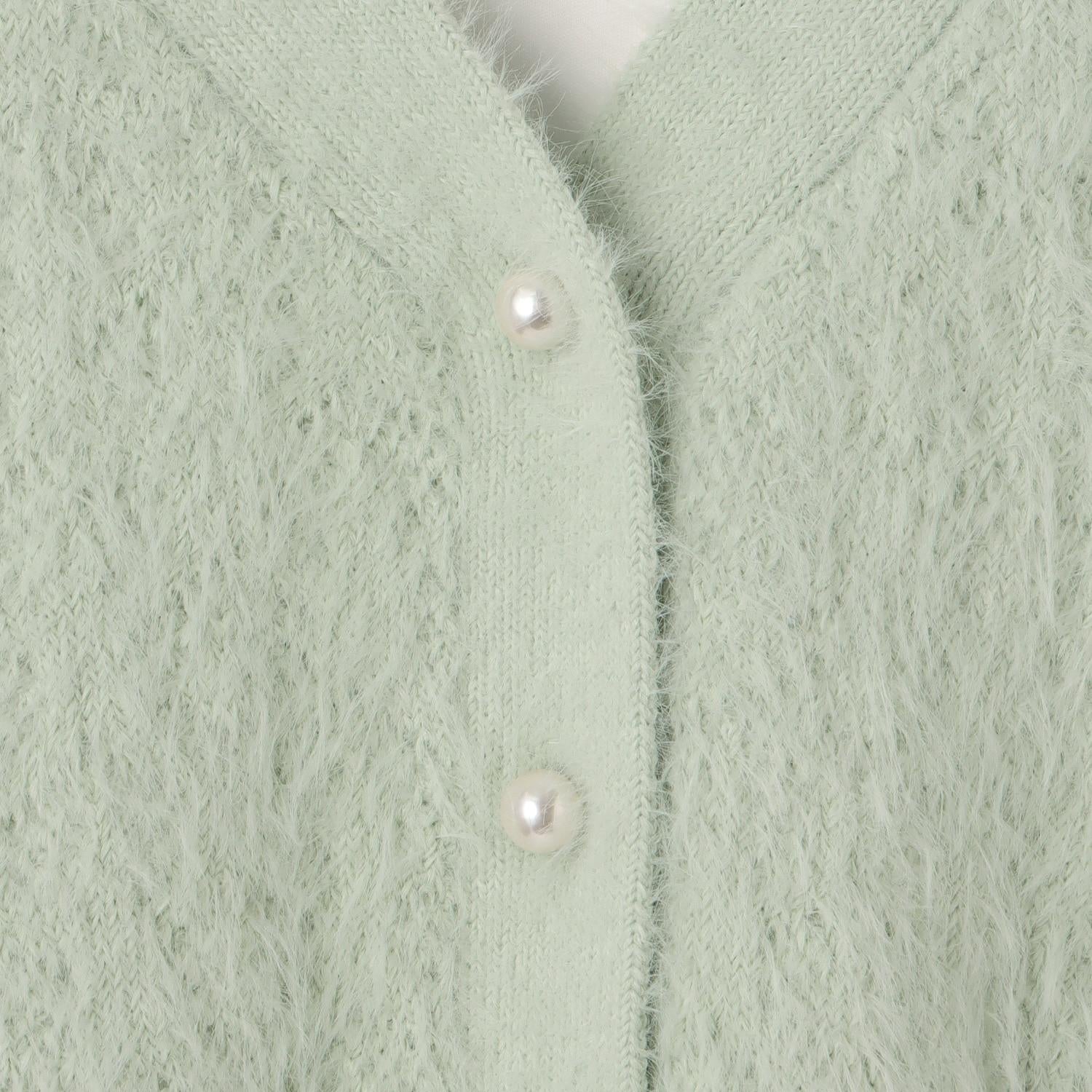 針織面料的精緻花紋和假珍珠紐扣是時尚的亮點。