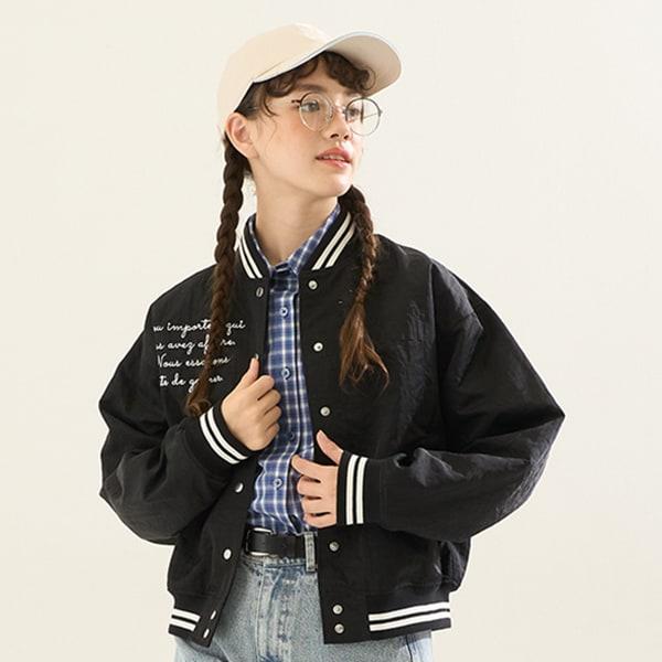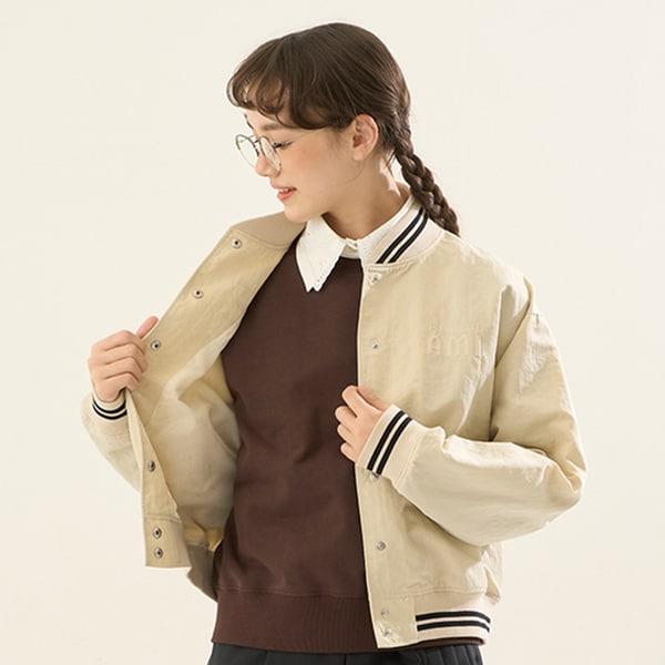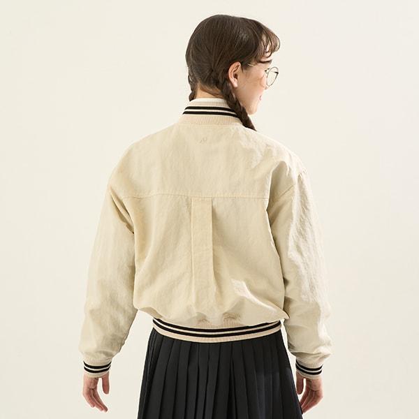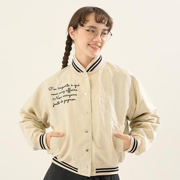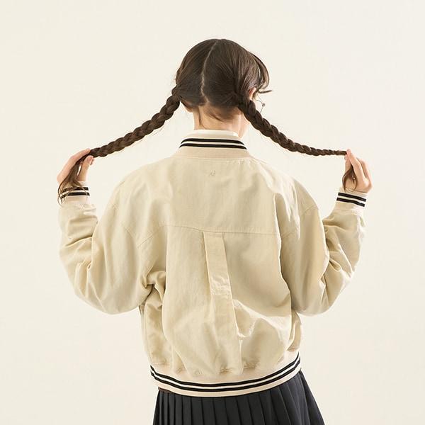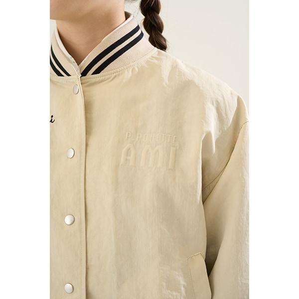 【AMI】【防潑水】條紋羅紋棒球夾克