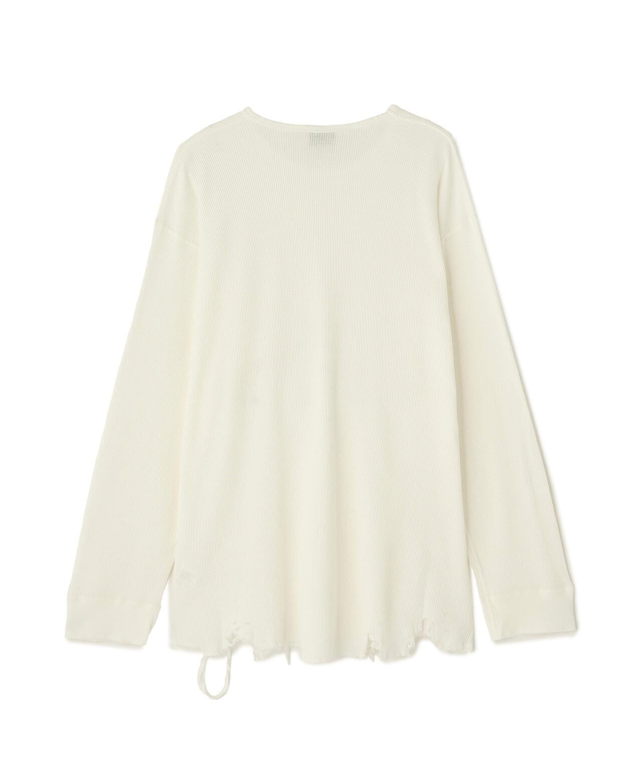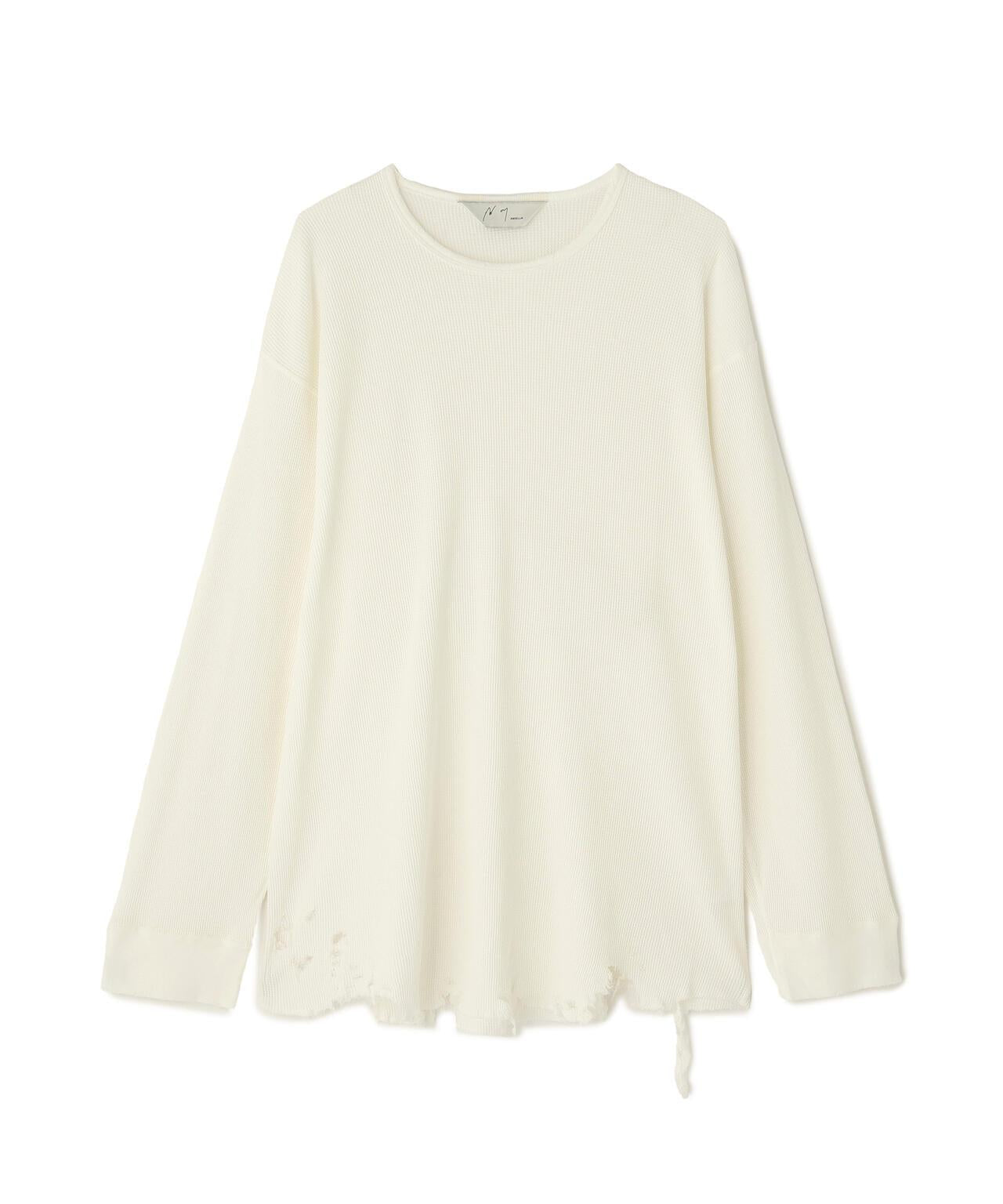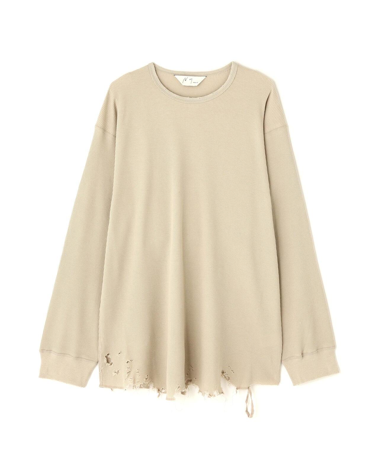 ANCELLM / ANCELLM / DAMAGE WAFFLE CREW LS TANCELLM 的打底衫是 DAMAGE WAFFLE,我們一直將其作為標準款式。它的長度設置得更長、更寬鬆,讓損傷從上衣下襬露出來。 華夫格是一種高彈性材料,洗滌時會收縮,穿著時會拉伸。它越用越長,所以我們希望您能享受每次穿著時出現的不同,並培養它,包括損傷。 內衣也是用平縫機縫製的,因為它應該穿在裸露的皮膚上。這樣可以分散貼在皮膚上的縫合區域,使服裝無壓力。 下襬和袖口的破損很醒目,但並不喧賓奪主。