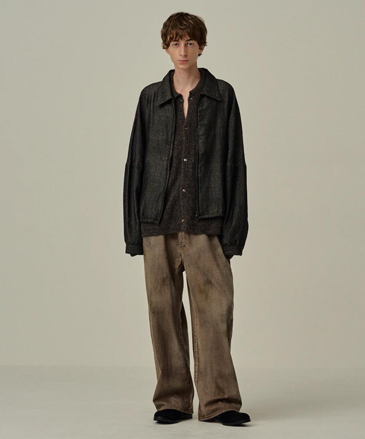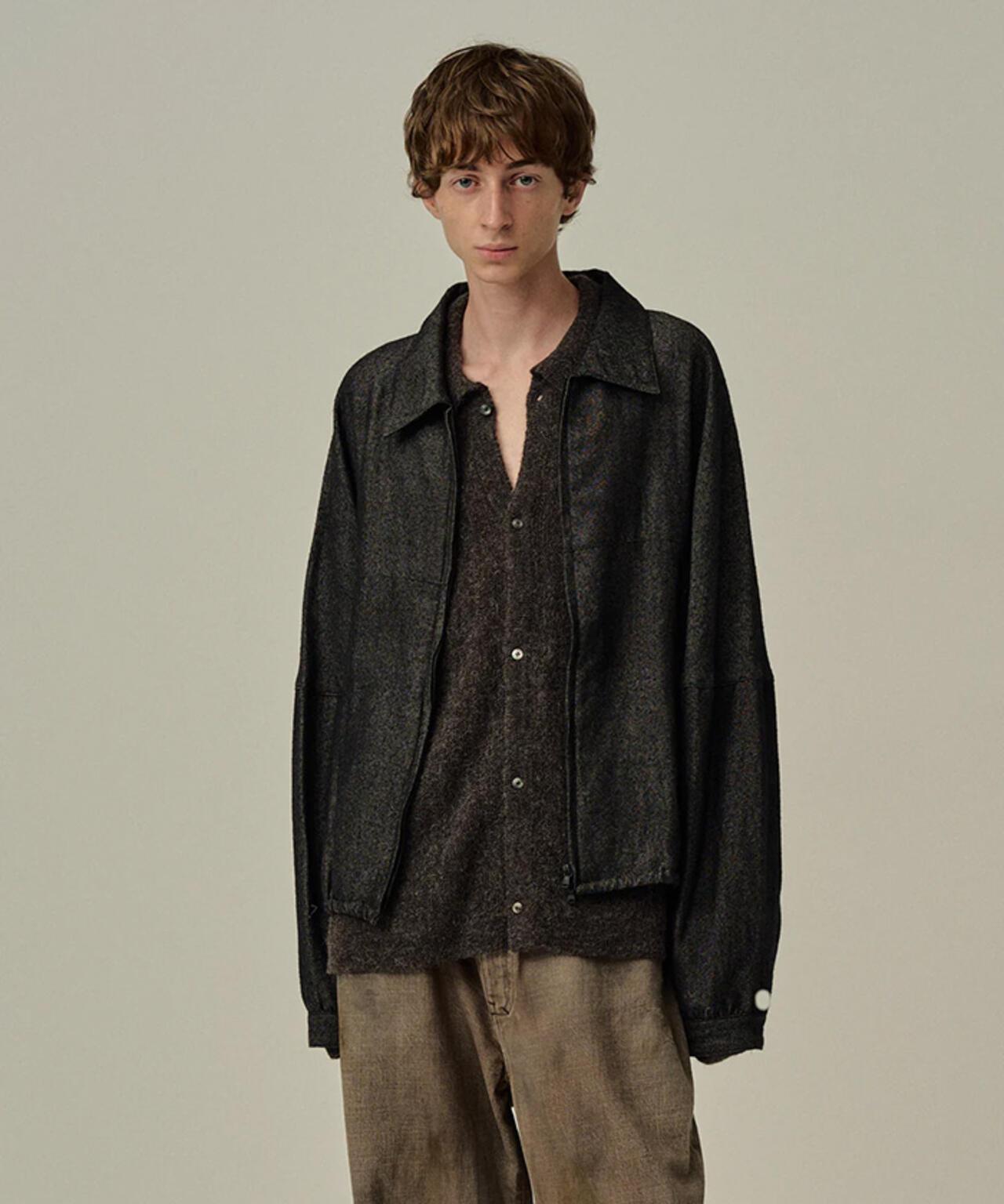 ANCELLM/SHRINK羊毛短拉鍊襯衫夾克 這是一款簡潔的短夾克,將羊毛亞麻的豐富性發揮得淋漓盡致。它的設計去繁就簡,讓您盡情享受面料的魅力。雖然只有一個前袋,但圖案和鑲邊增添了立體效果,不會顯得單調。此外,通過對下襬進行剪裁處理,線頭會隨之移動,掉落的線頭也會隨著使用量的增加而增多,變得更加豐富。面料由羊毛和亞麻交叉編織而成,織法甜美,使面料看起來富有表現力。通過收縮織物,使其具有木質感和豐富的絨毛,為織物的實質輕盈賦予了厚重的情調。雙拉鍊可調節剪裁,讓您盡享各種風格。