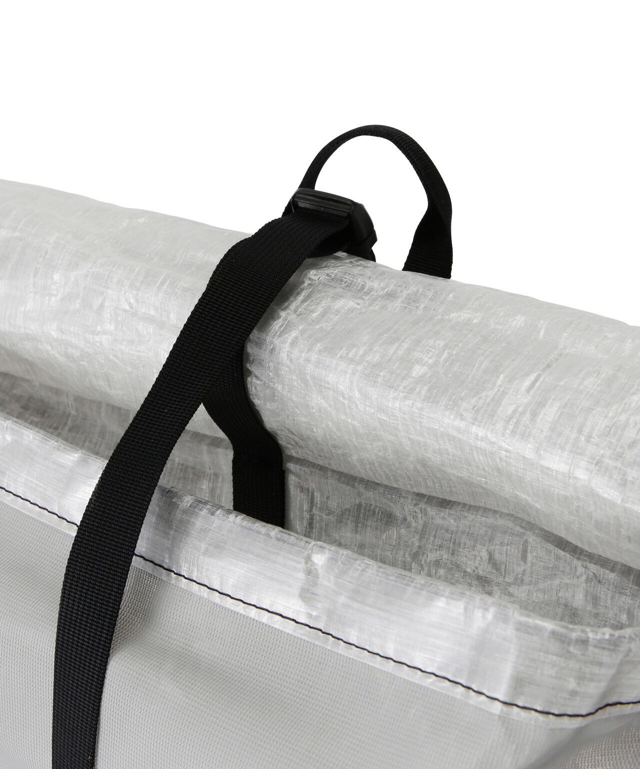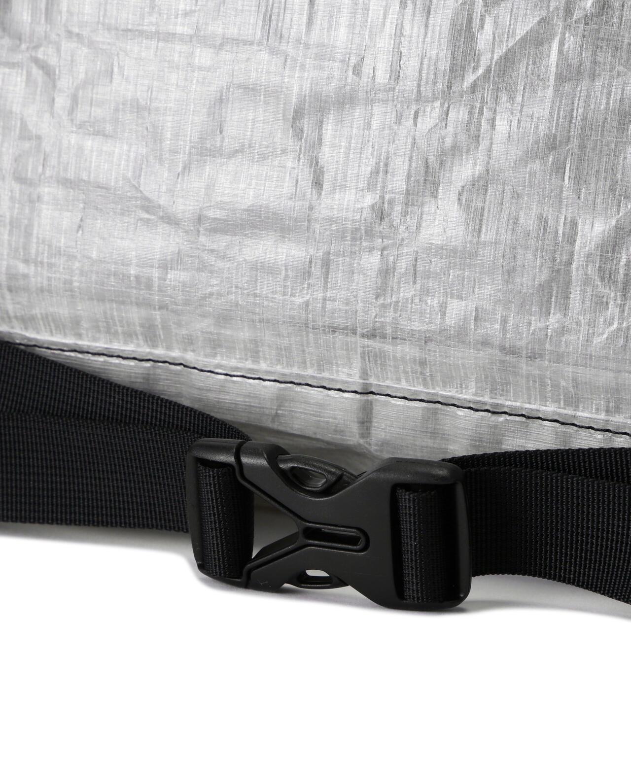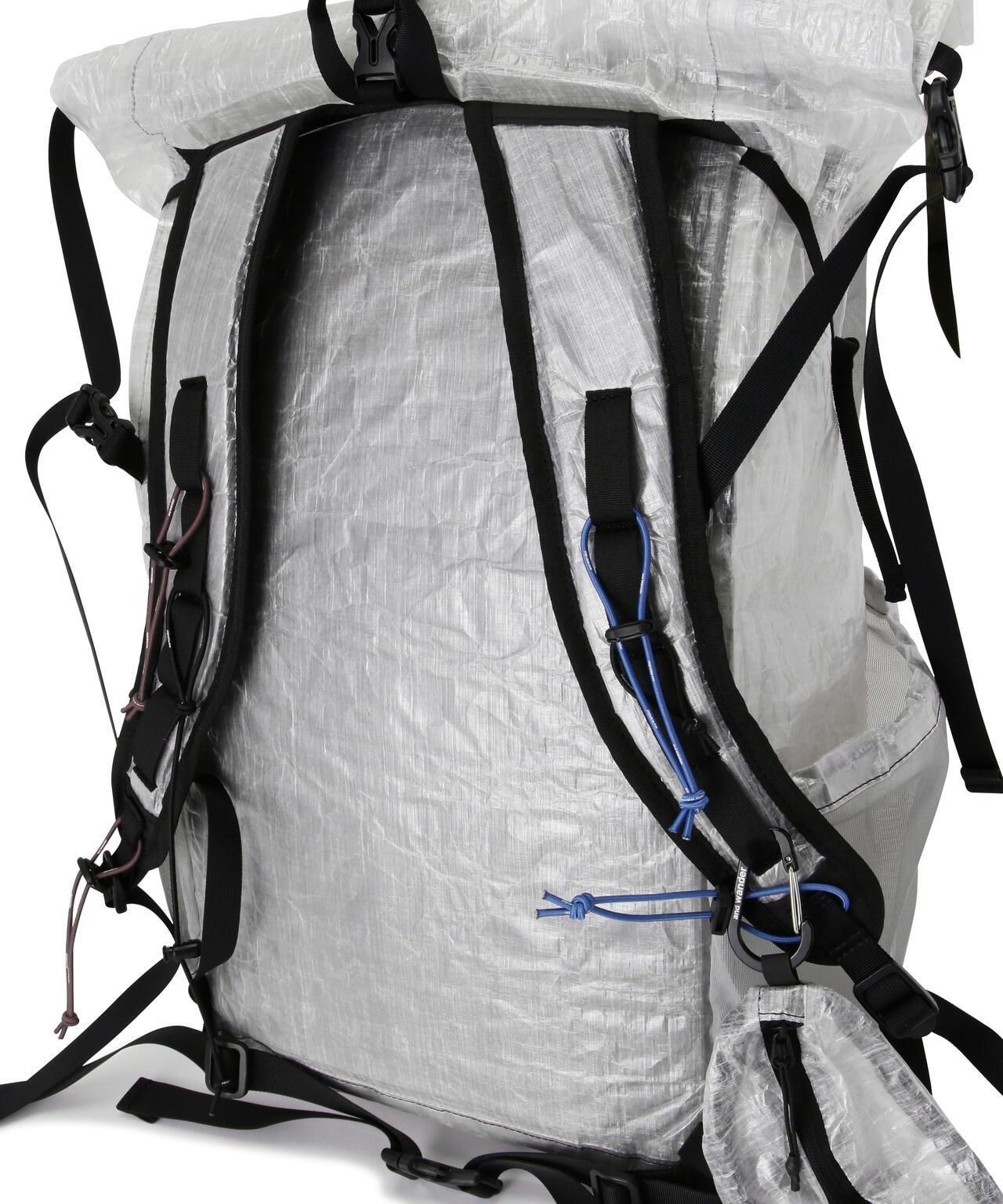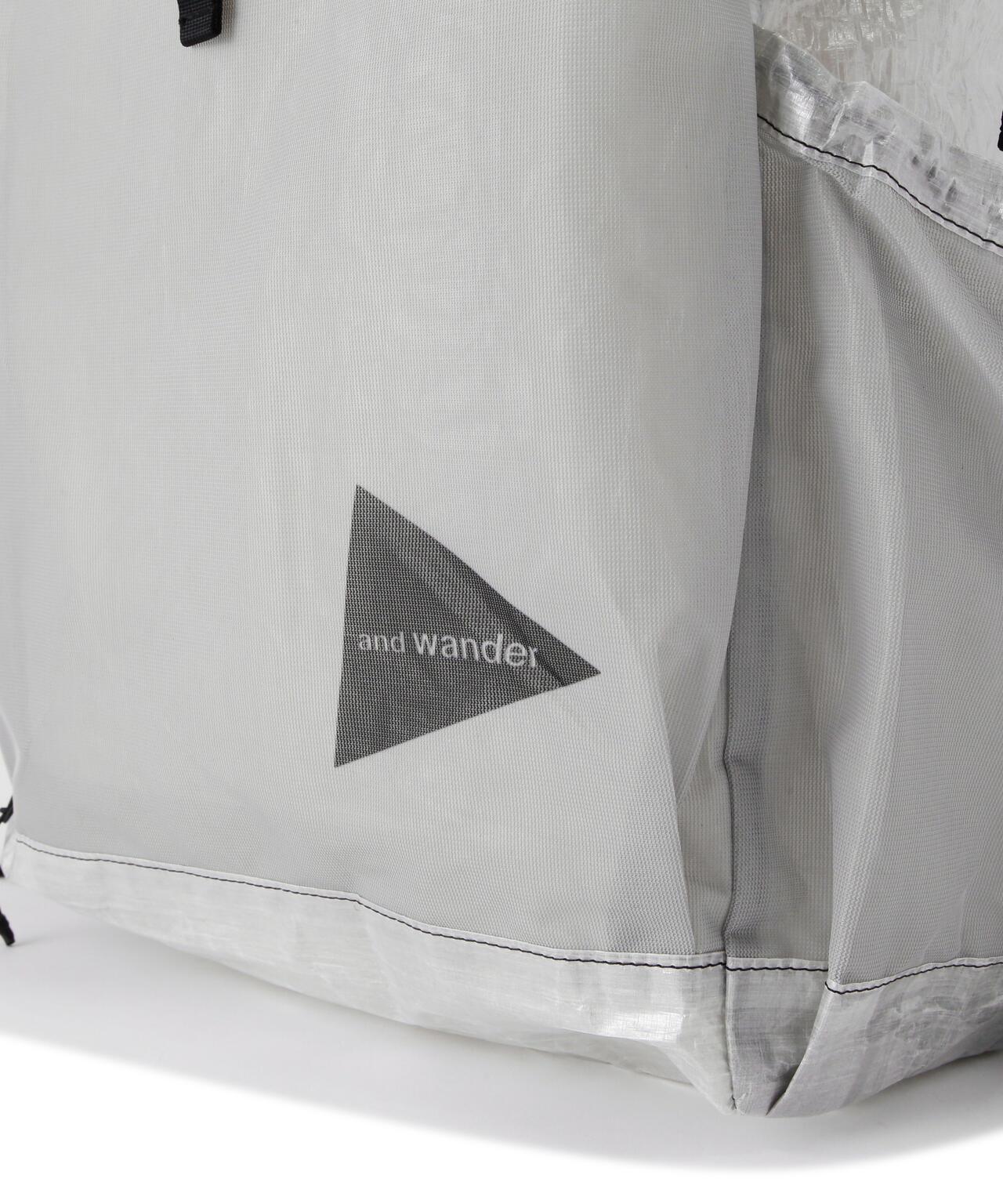 and wander/and wander UL 揹包採用 DyneemaDSM Dyneema 複合織物(原名 Cuben Fibre)。Dyneema 複合織物是由 Dyneema 纖維與 UV 樹脂層壓而成的薄膜,可用於賽艇等的高性能風帆。由於該揹包以輕量化為首要考慮因素,因此如果單點集中受力,可能會刺破或損壞揹包。前袋側面的拉鍊可以讓您進入內部取出物品。實測容量 25-32 升 [和漫步] 風雨無阻。