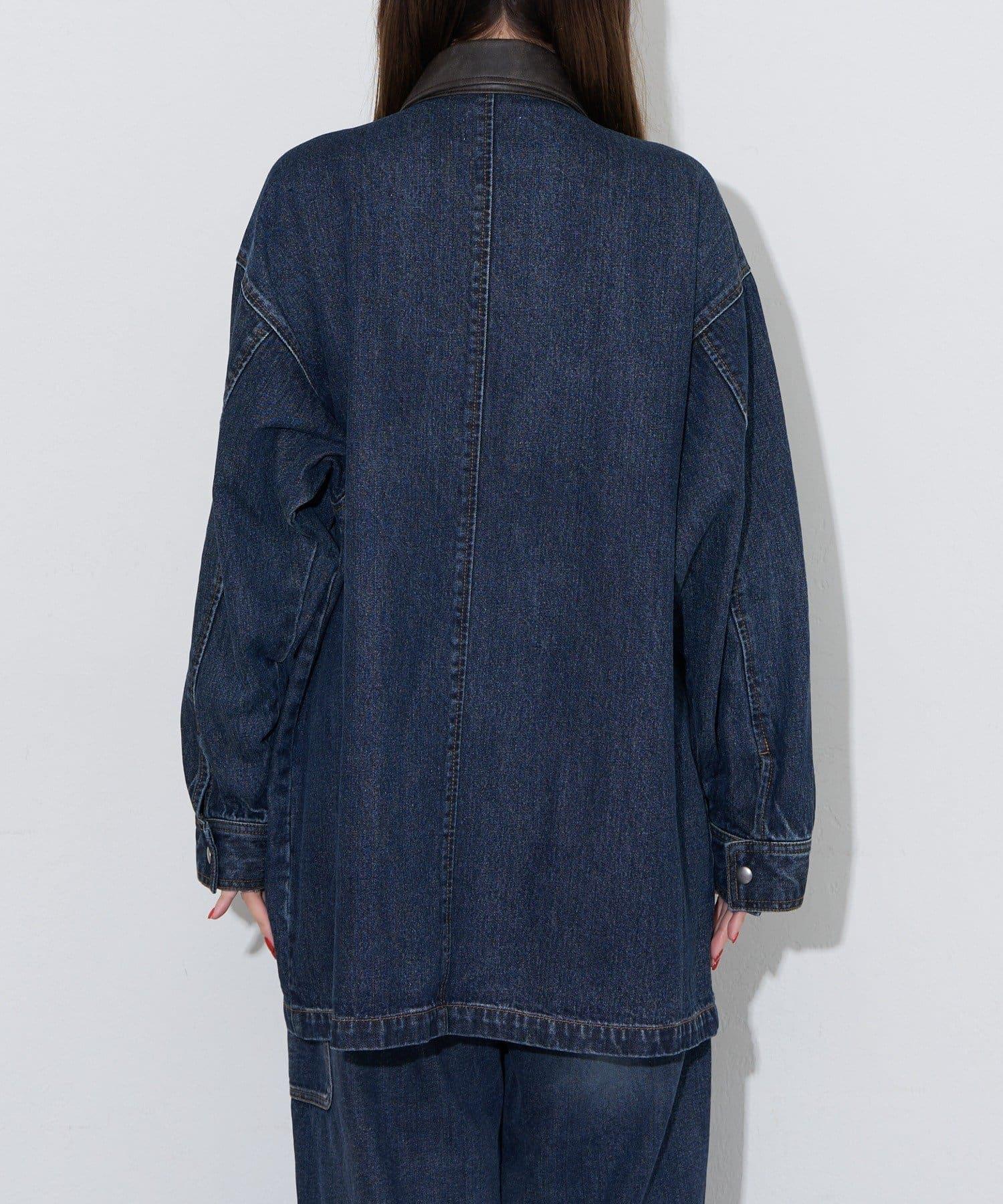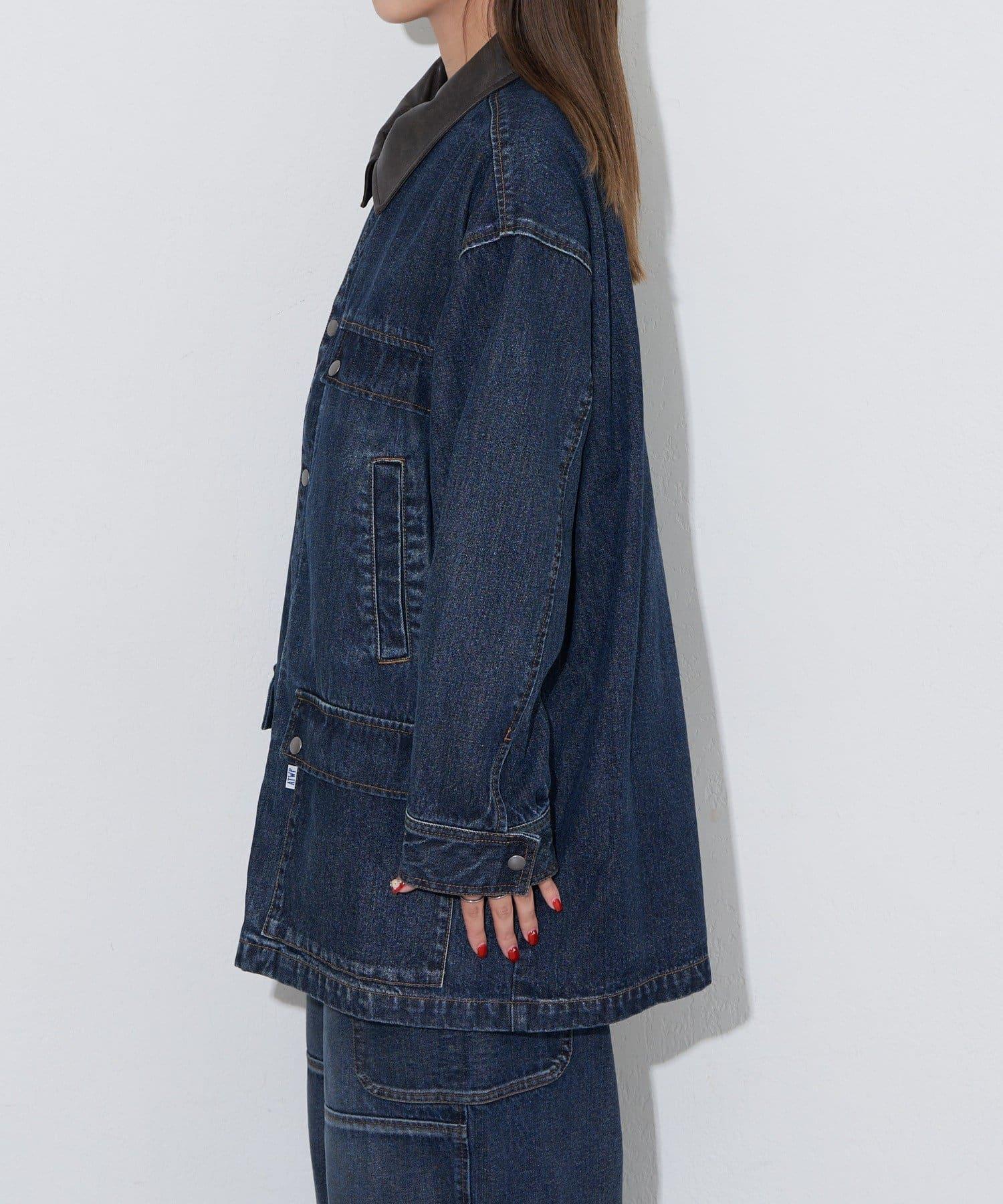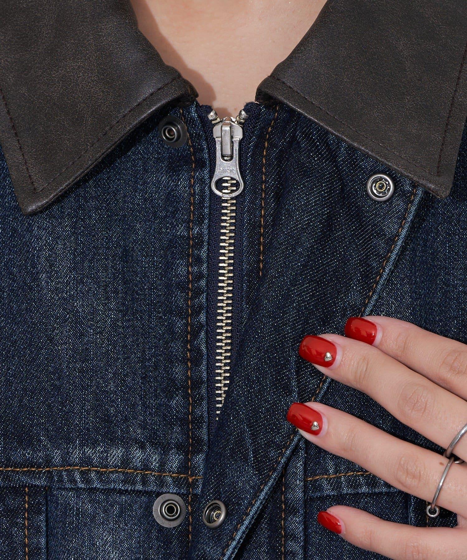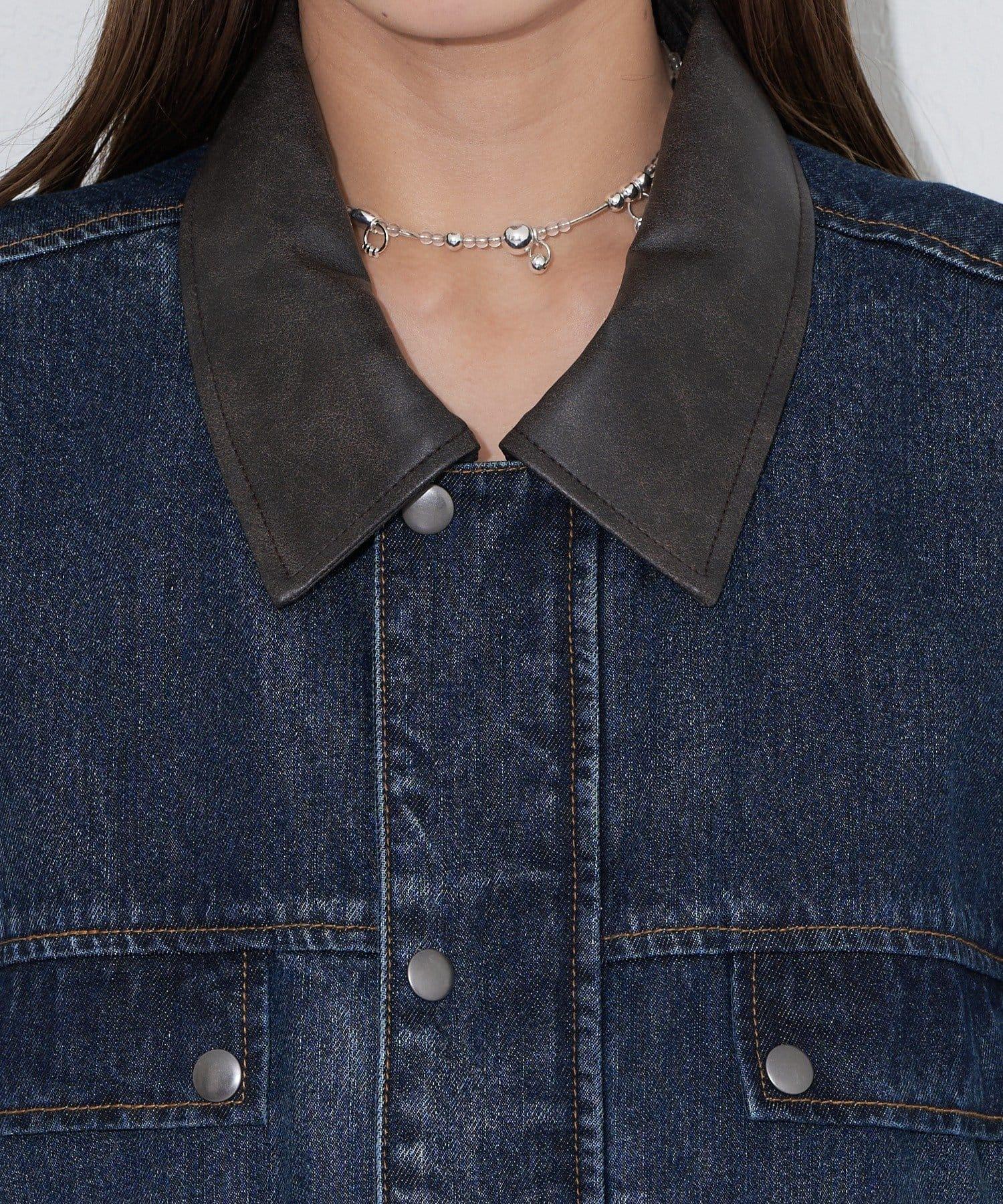 【ANTI WARP /抗翹】領口皮革牛仔獵裝夾克