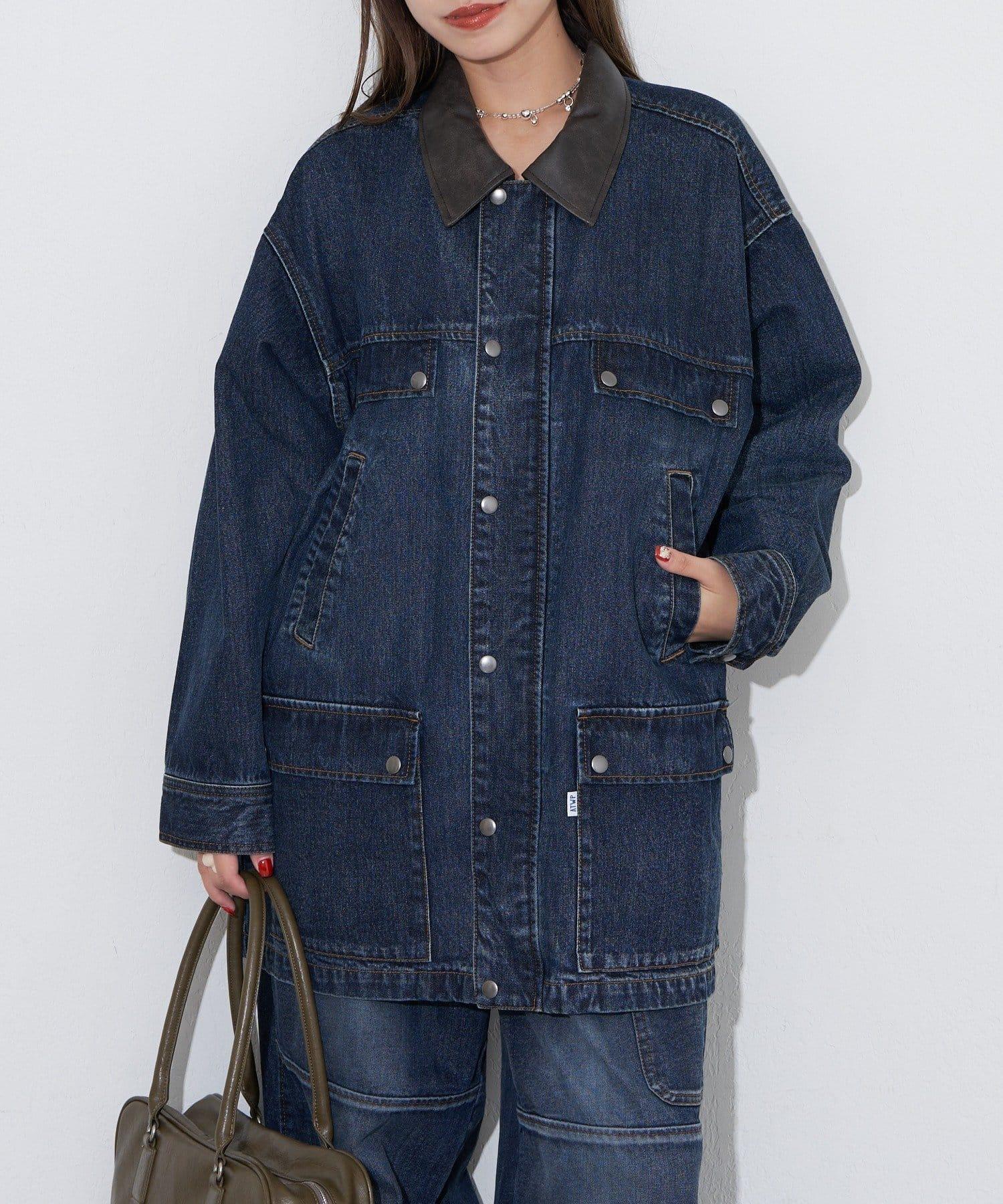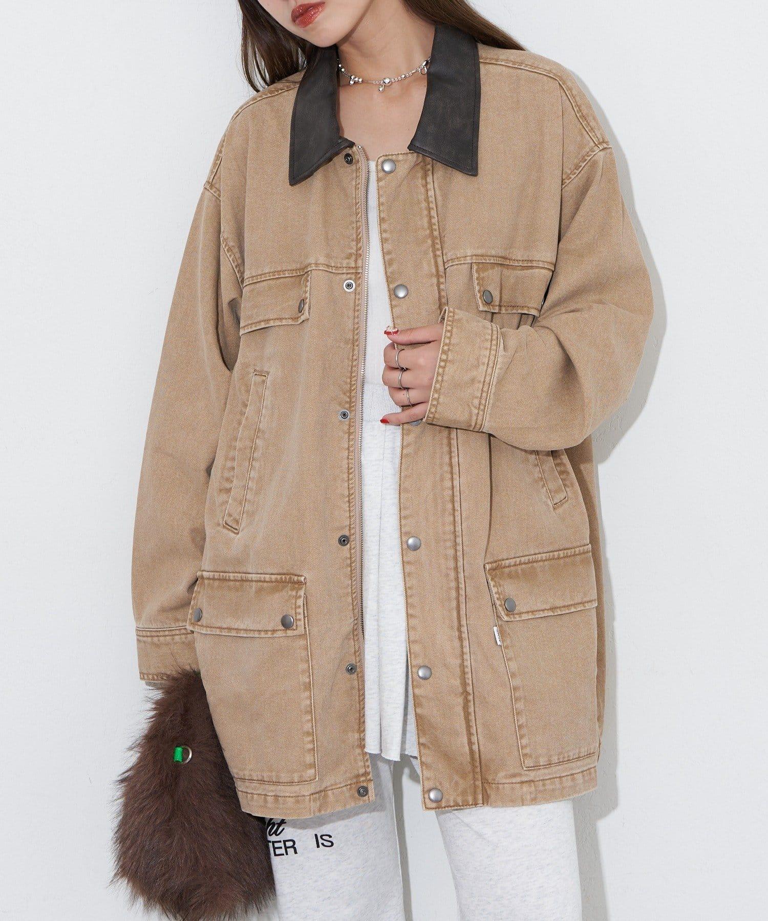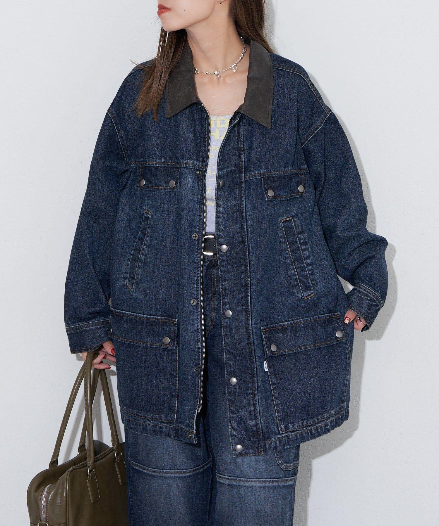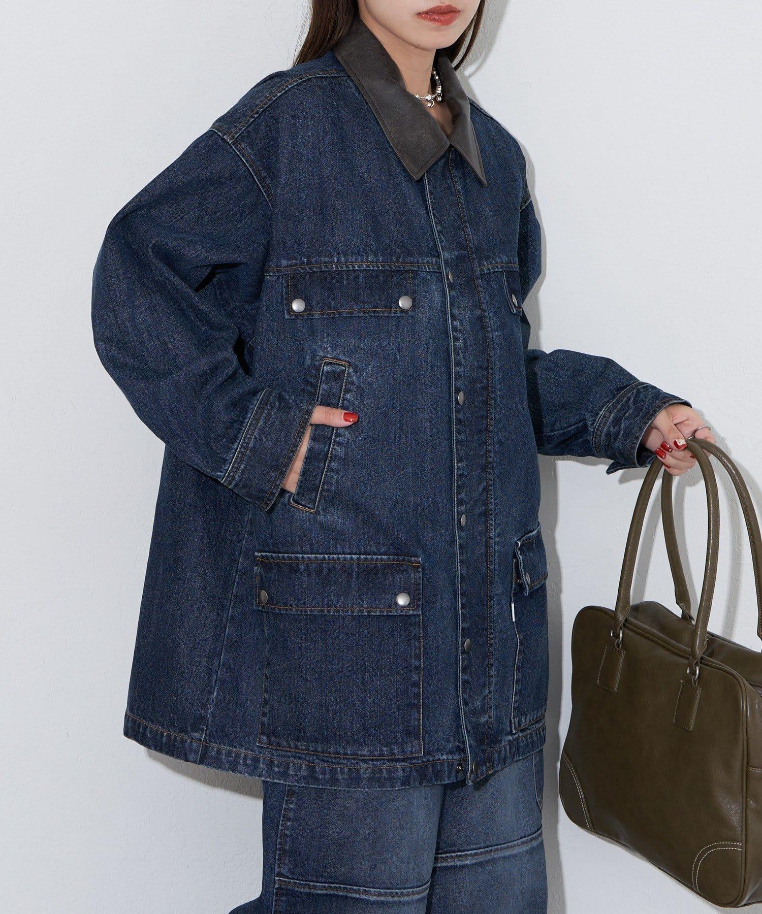 【ANTI WARP /抗翹】領口皮革牛仔獵裝夾克