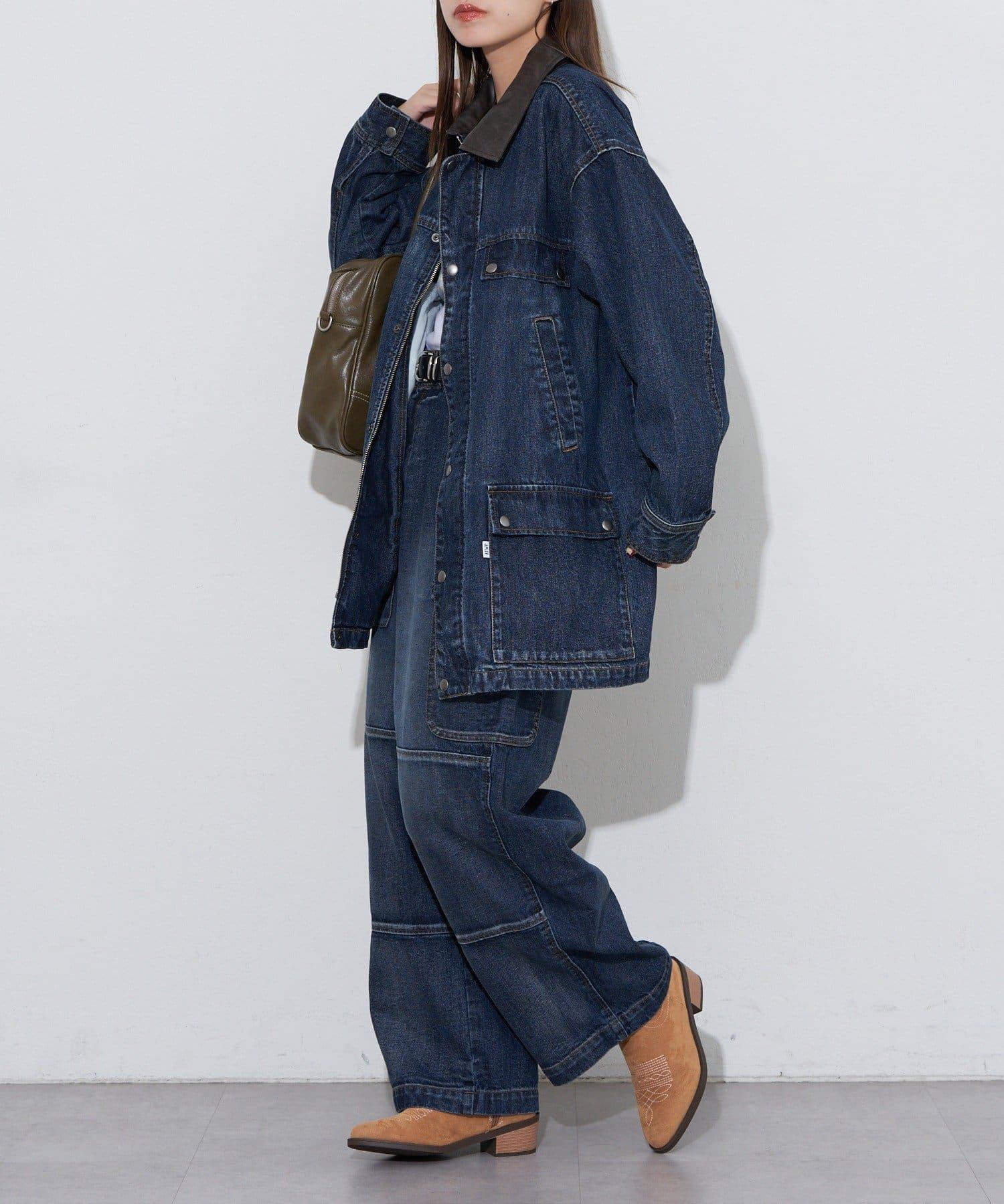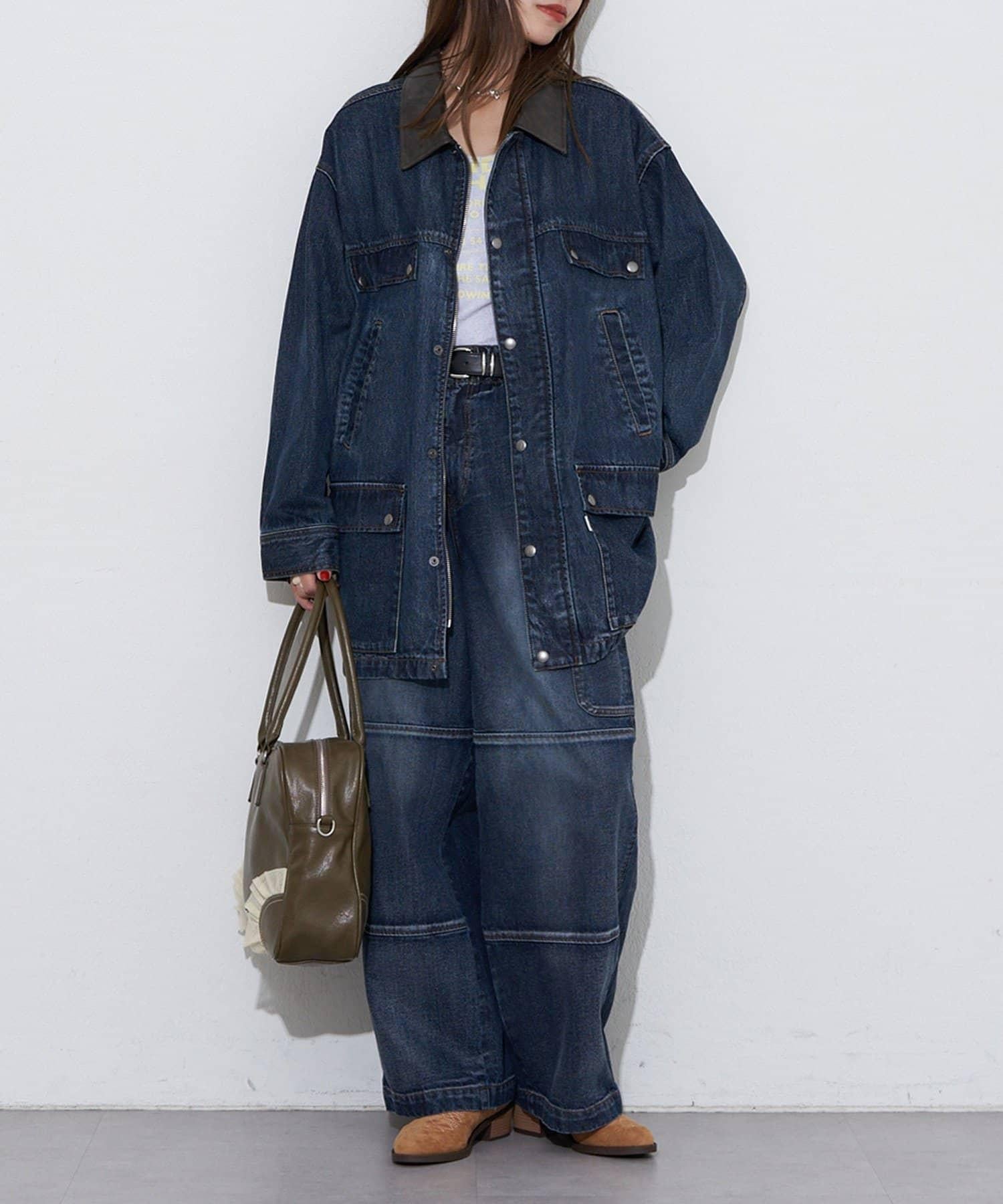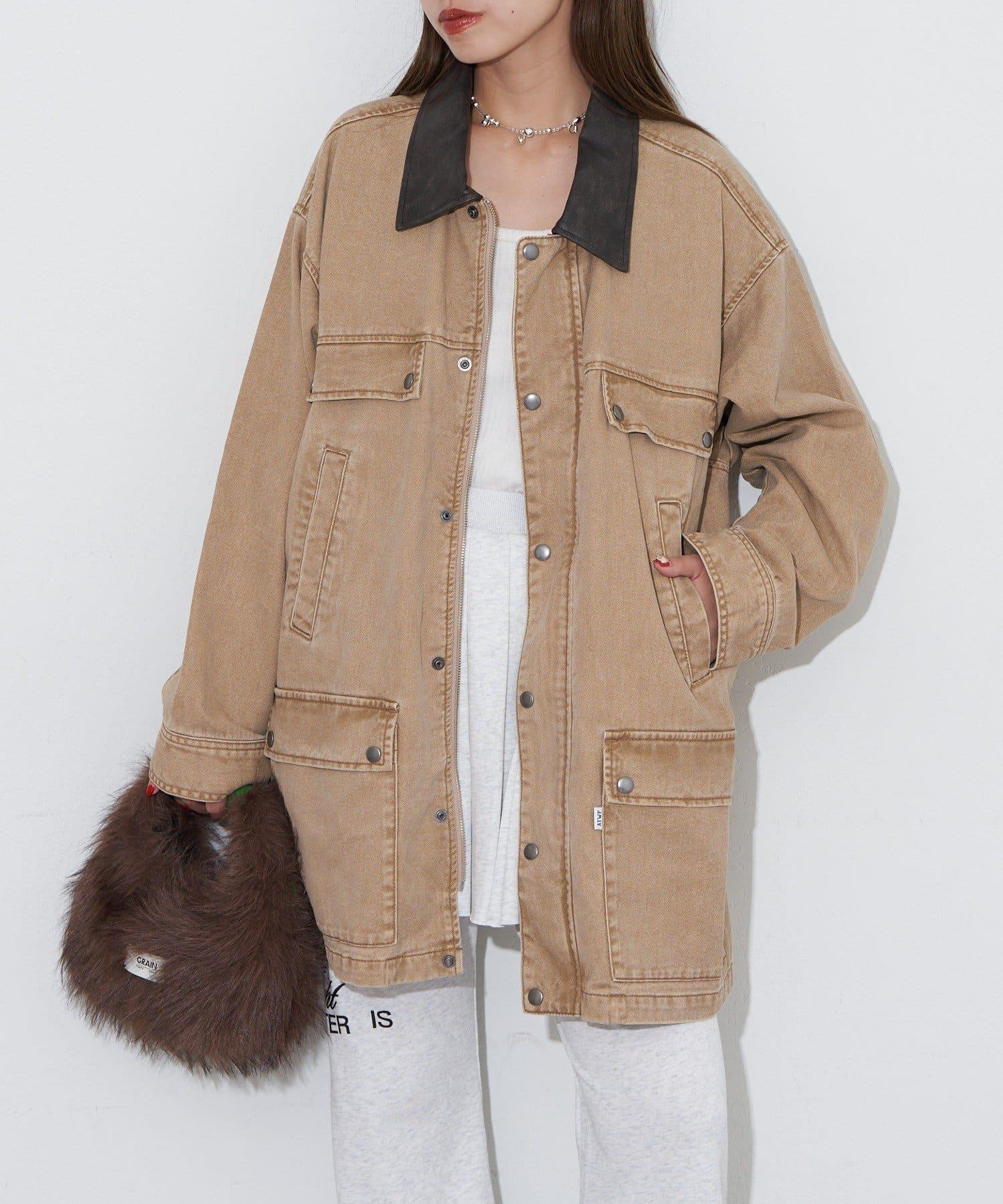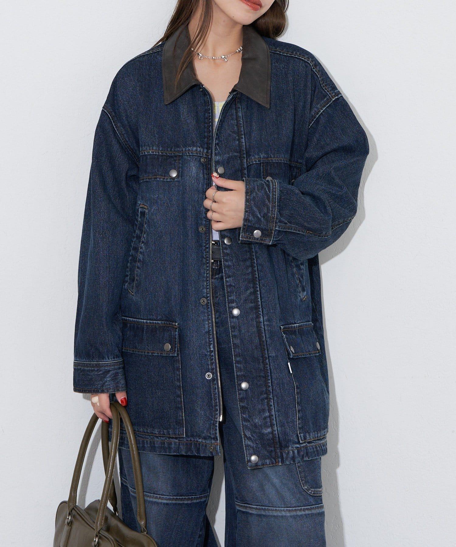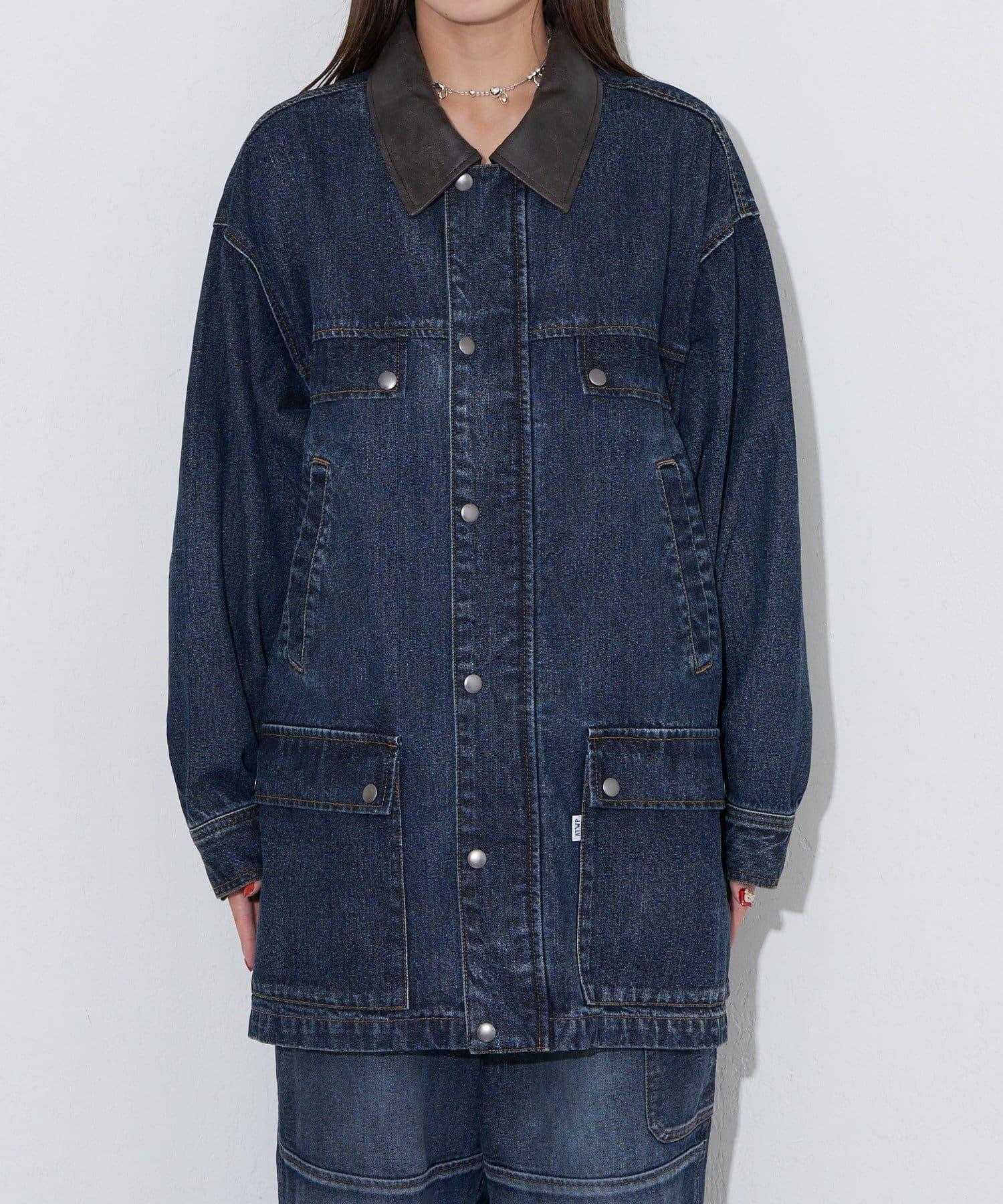 【ANTI WARP /抗翹】領口皮革牛仔獵裝夾克