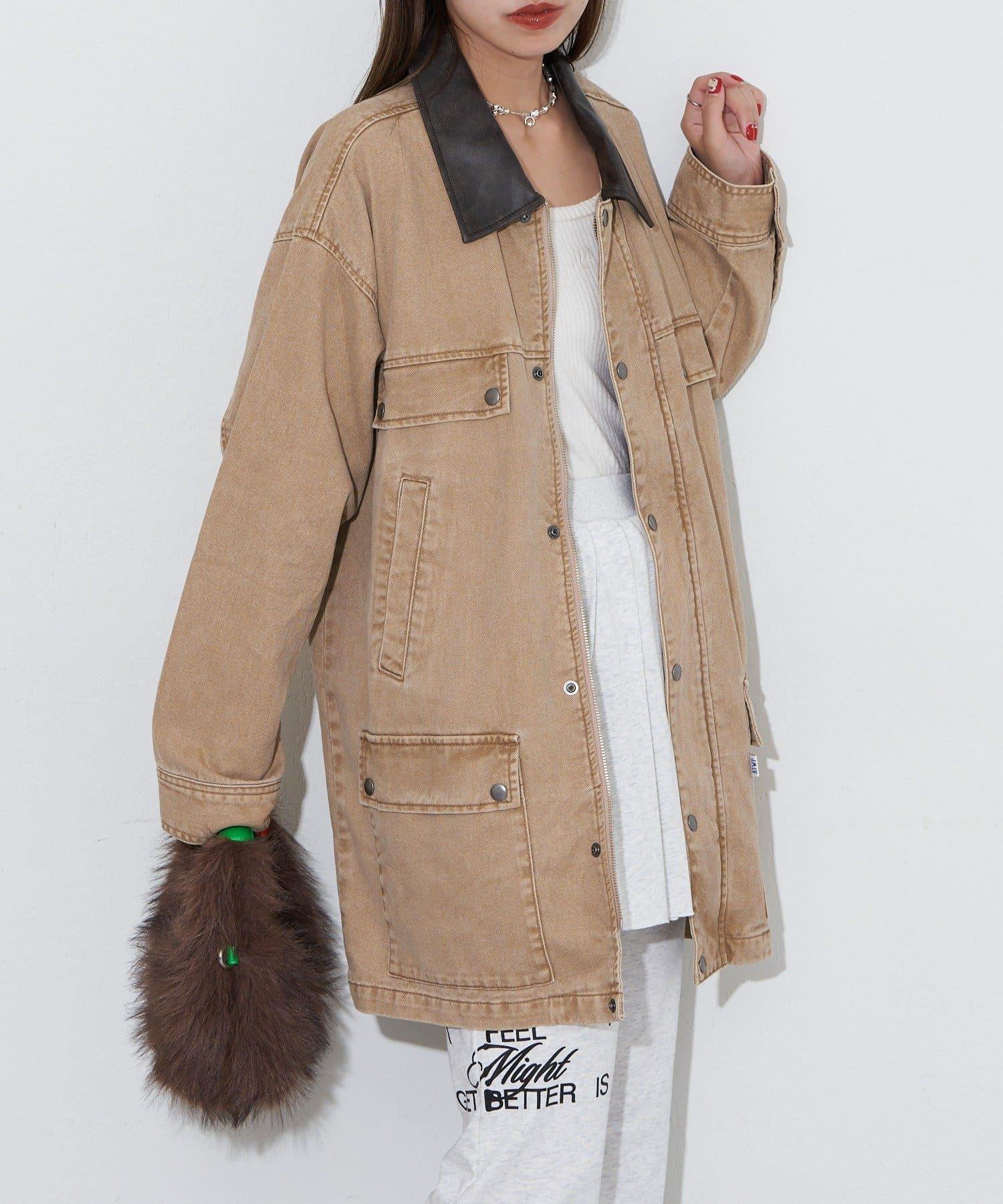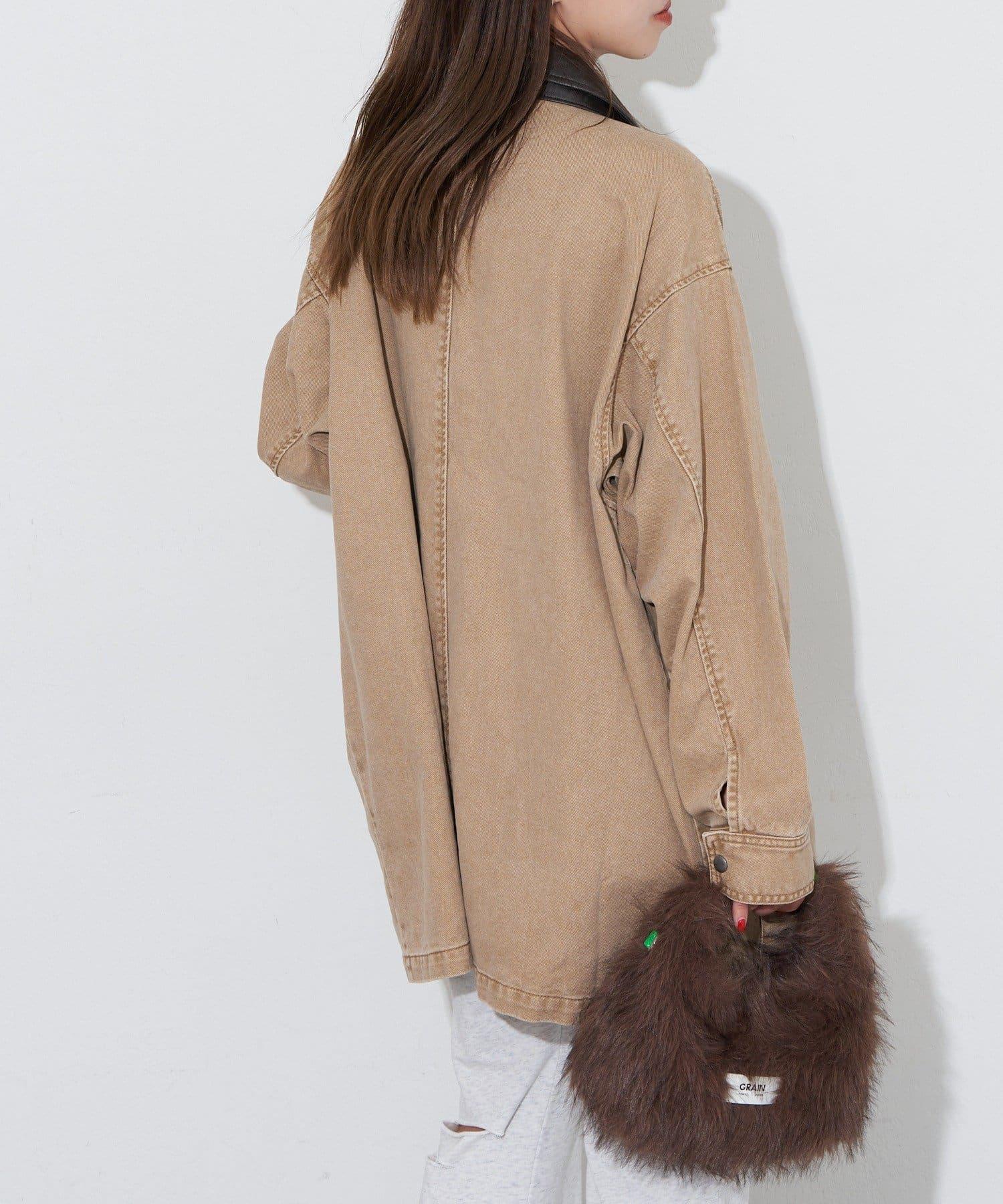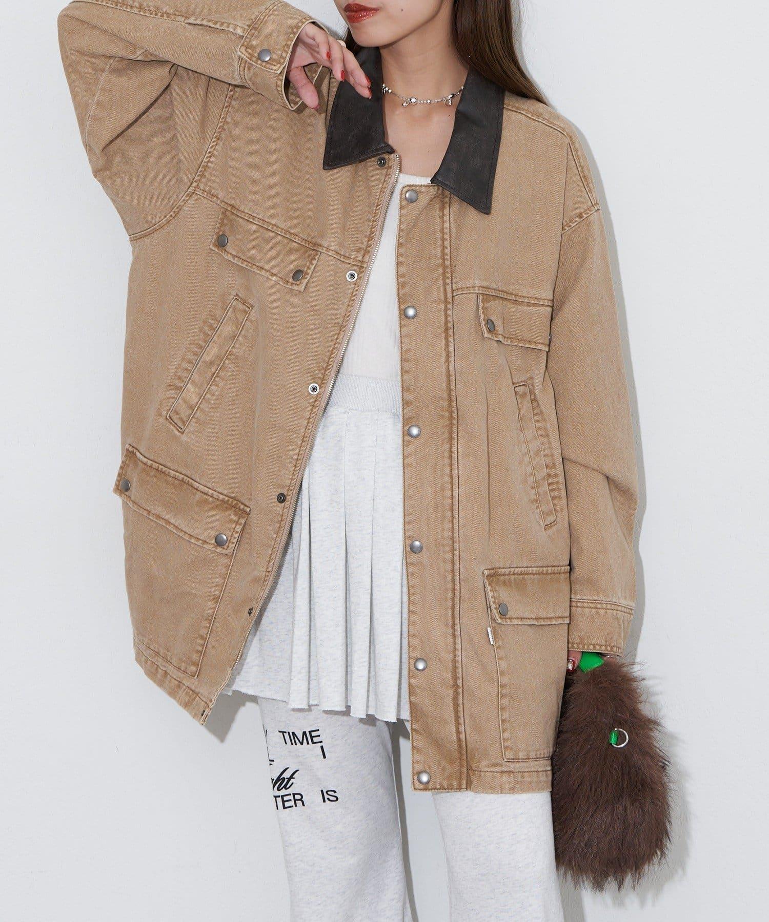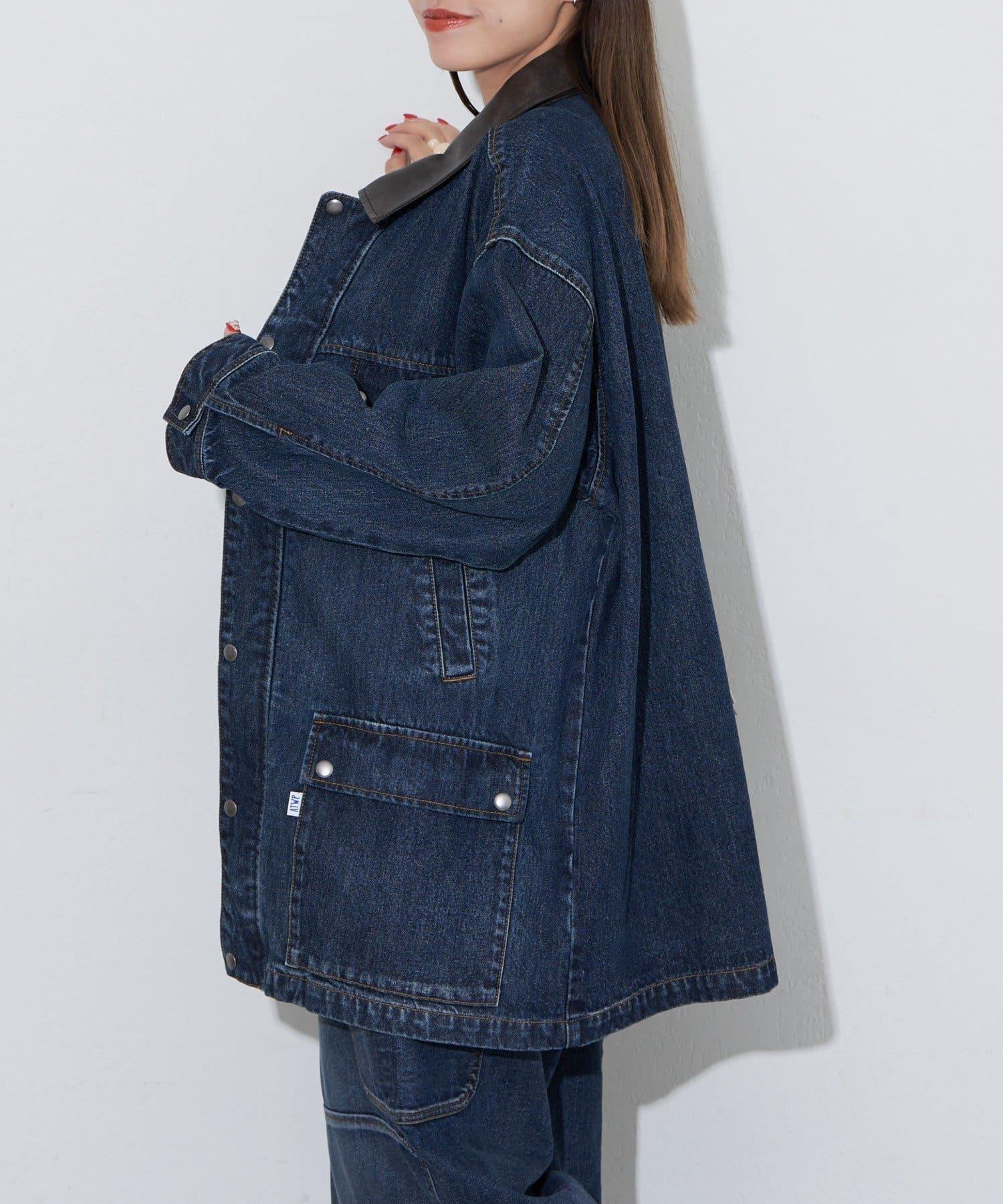 【ANTI WARP /抗翹】領口皮革牛仔獵裝夾克