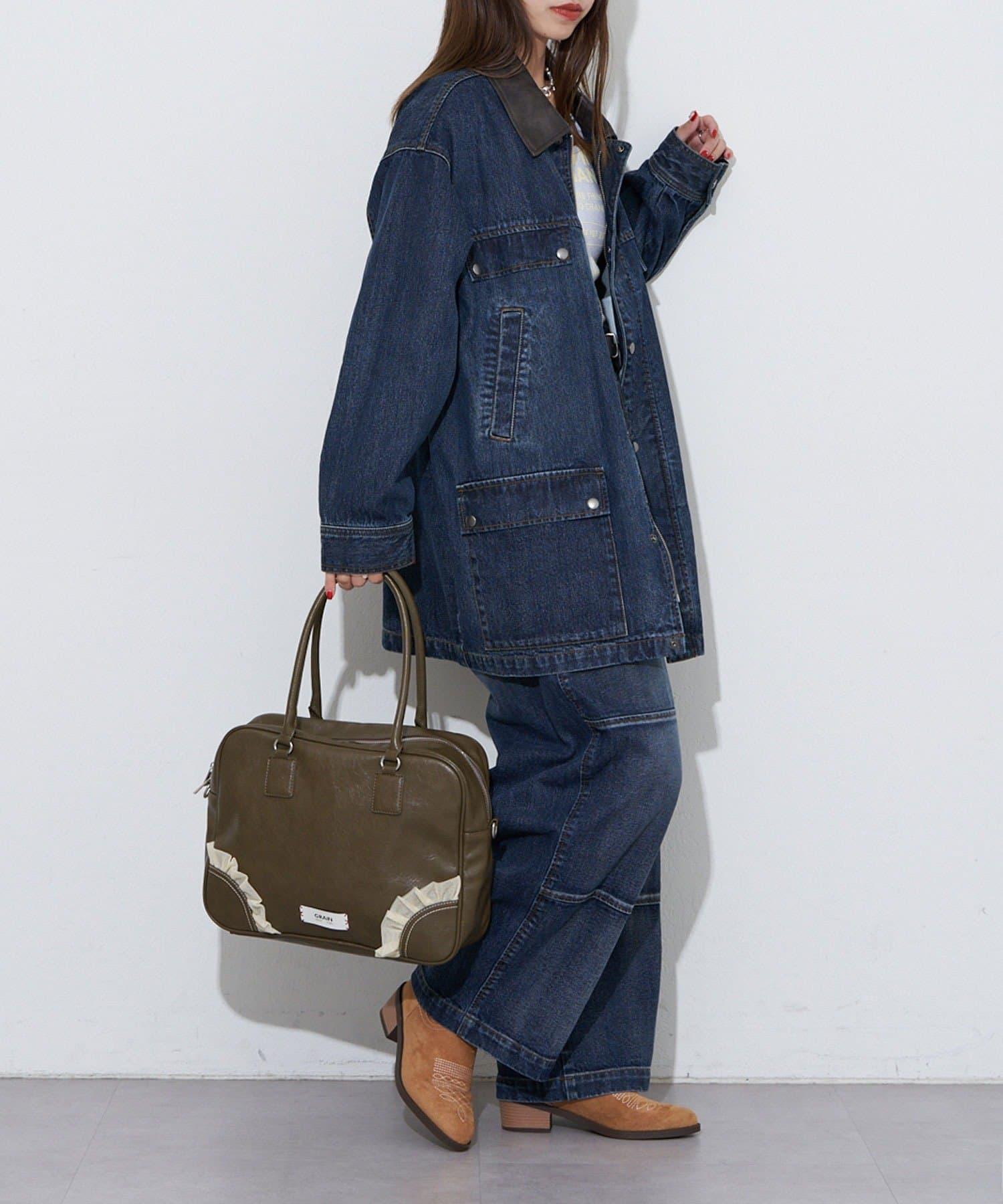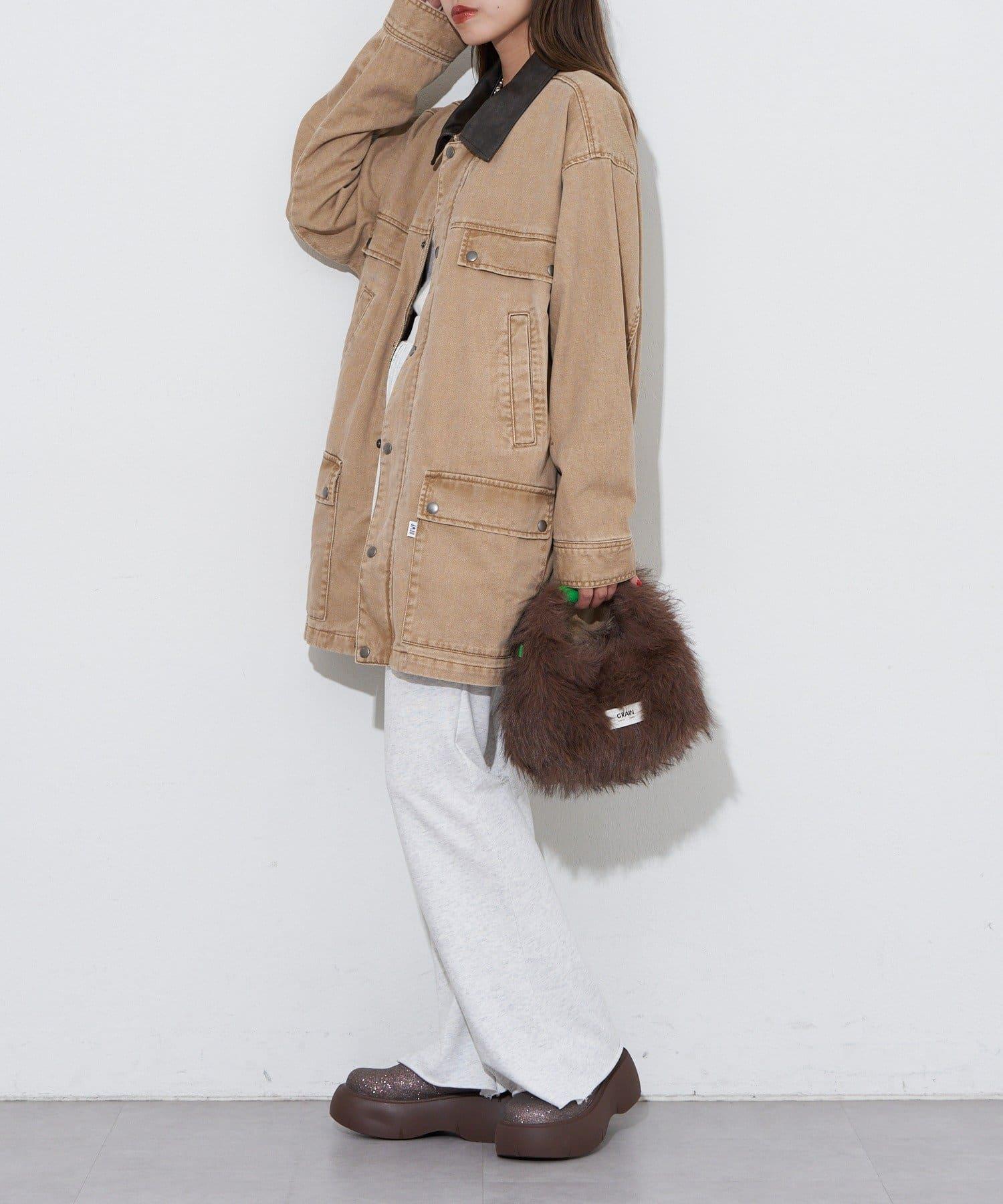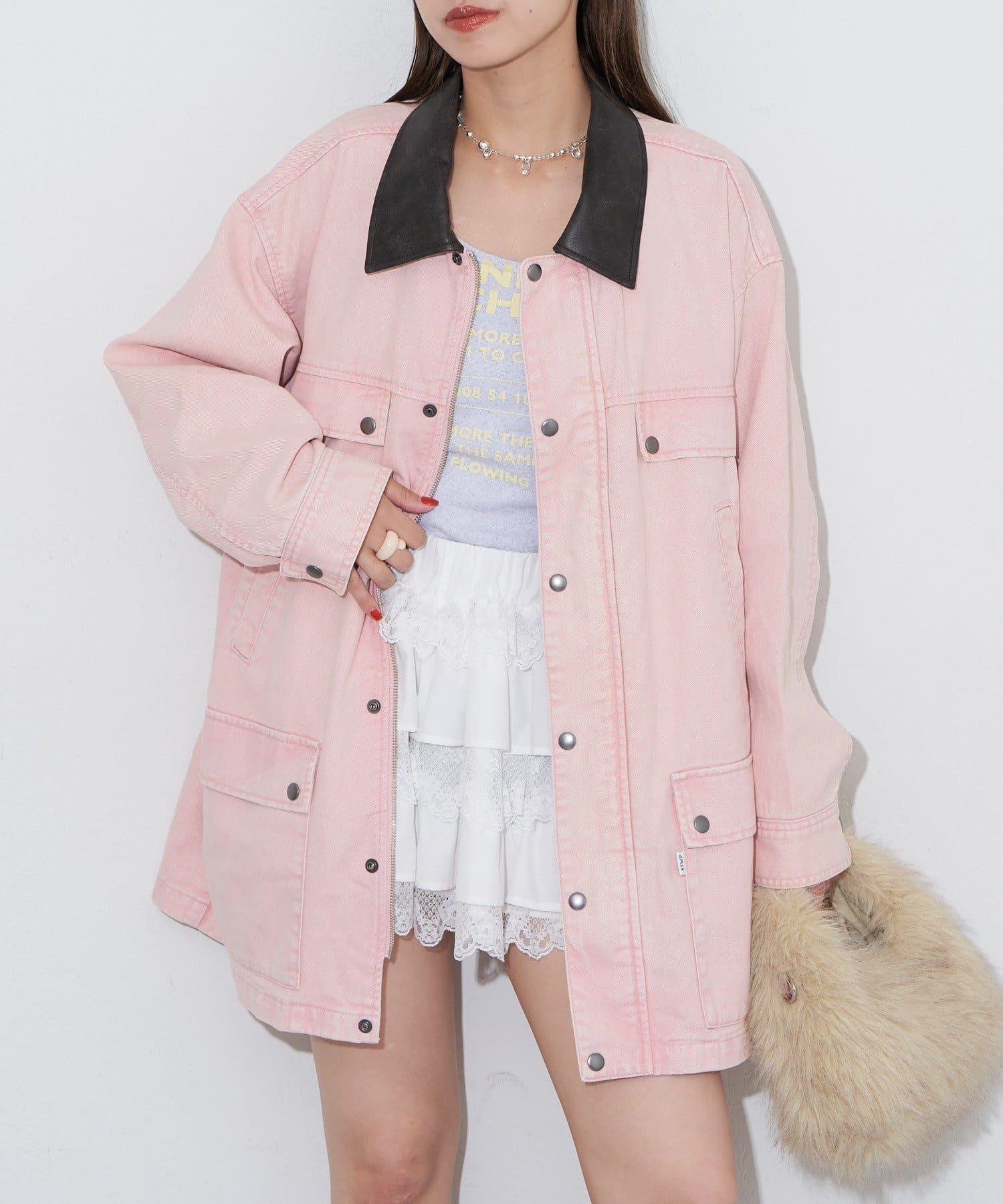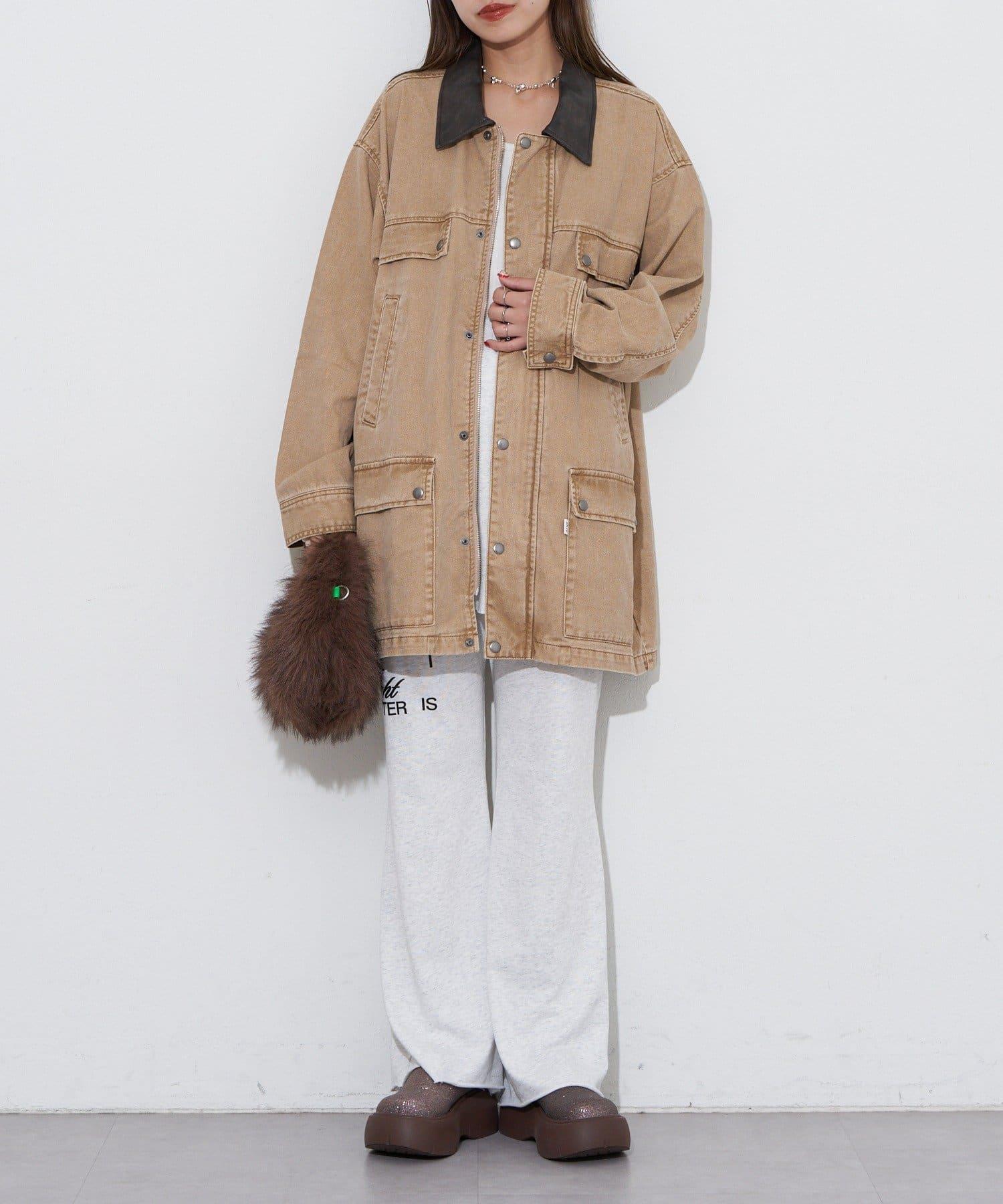 【ANTI WARP /抗翹】領口皮革牛仔獵裝夾克