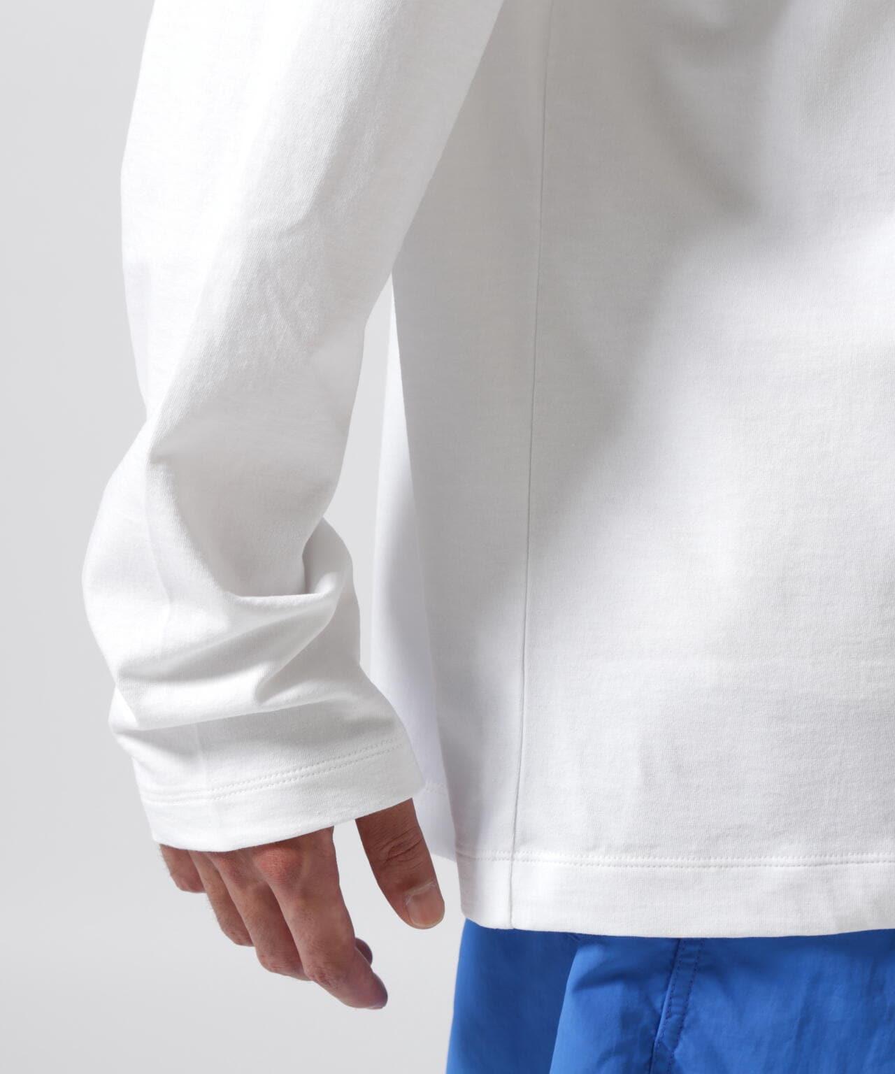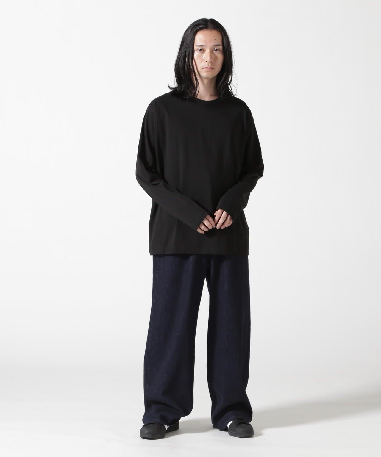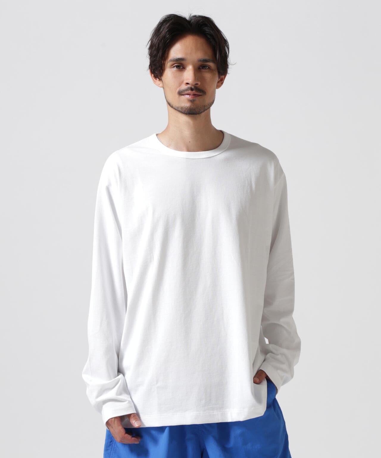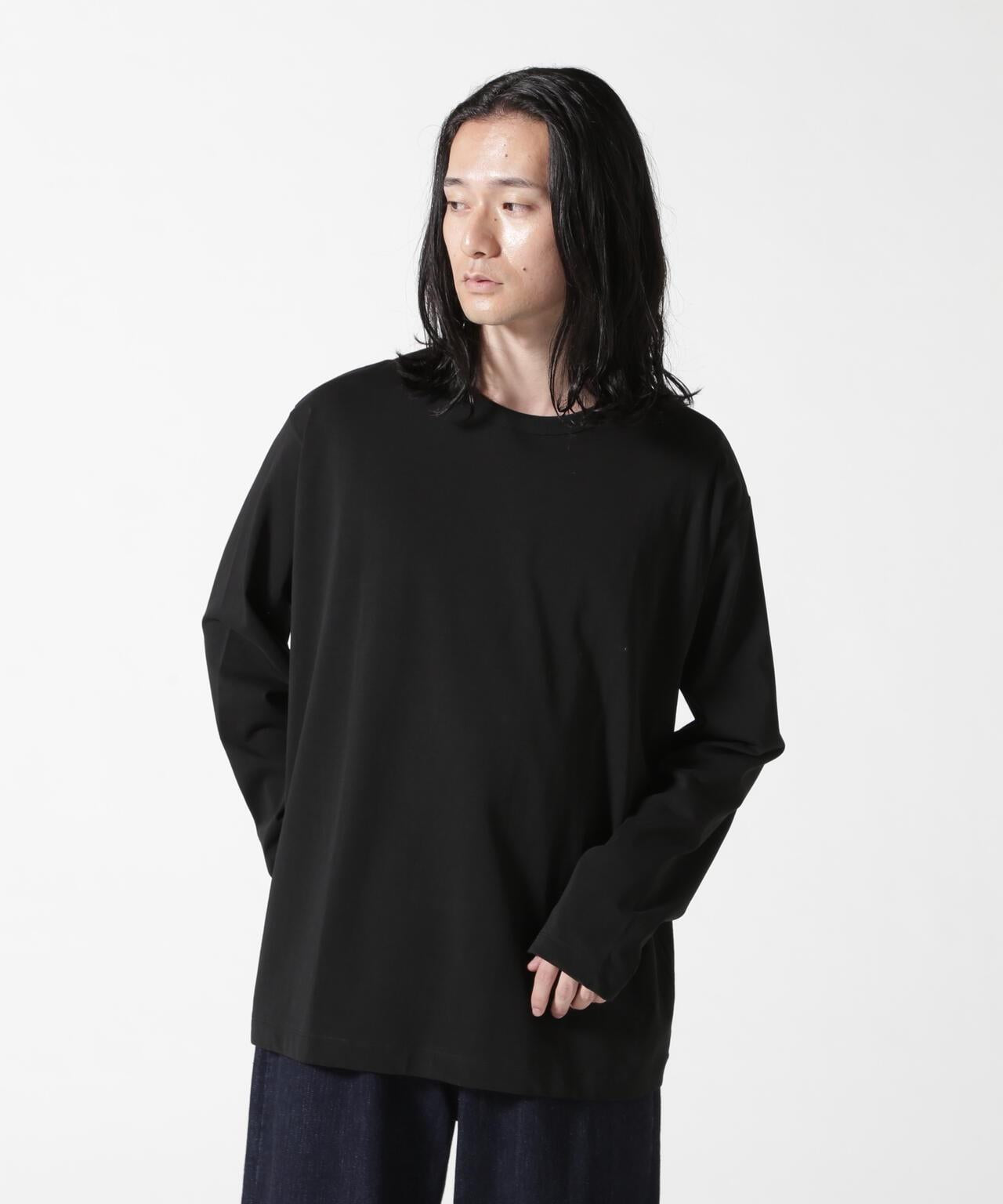 適度寬鬆的長袖 T 恤。它略顯單薄,手感乾爽,既可單穿,也可作為夾克和連體衣的內層。這種針織面料是在和歌山市使用富山縣紡紗廠採用特殊紡紗方法生產的紗線編織而成的。紗線的核心是硬質棉,周圍是用空氣漩渦紡成的超長棉。這是曾任 ATON WORLD BASICS 總監的久崎泰晴的新品牌。Yasuharu Hisasaki 曾在其之前的品牌下推出過該品牌。