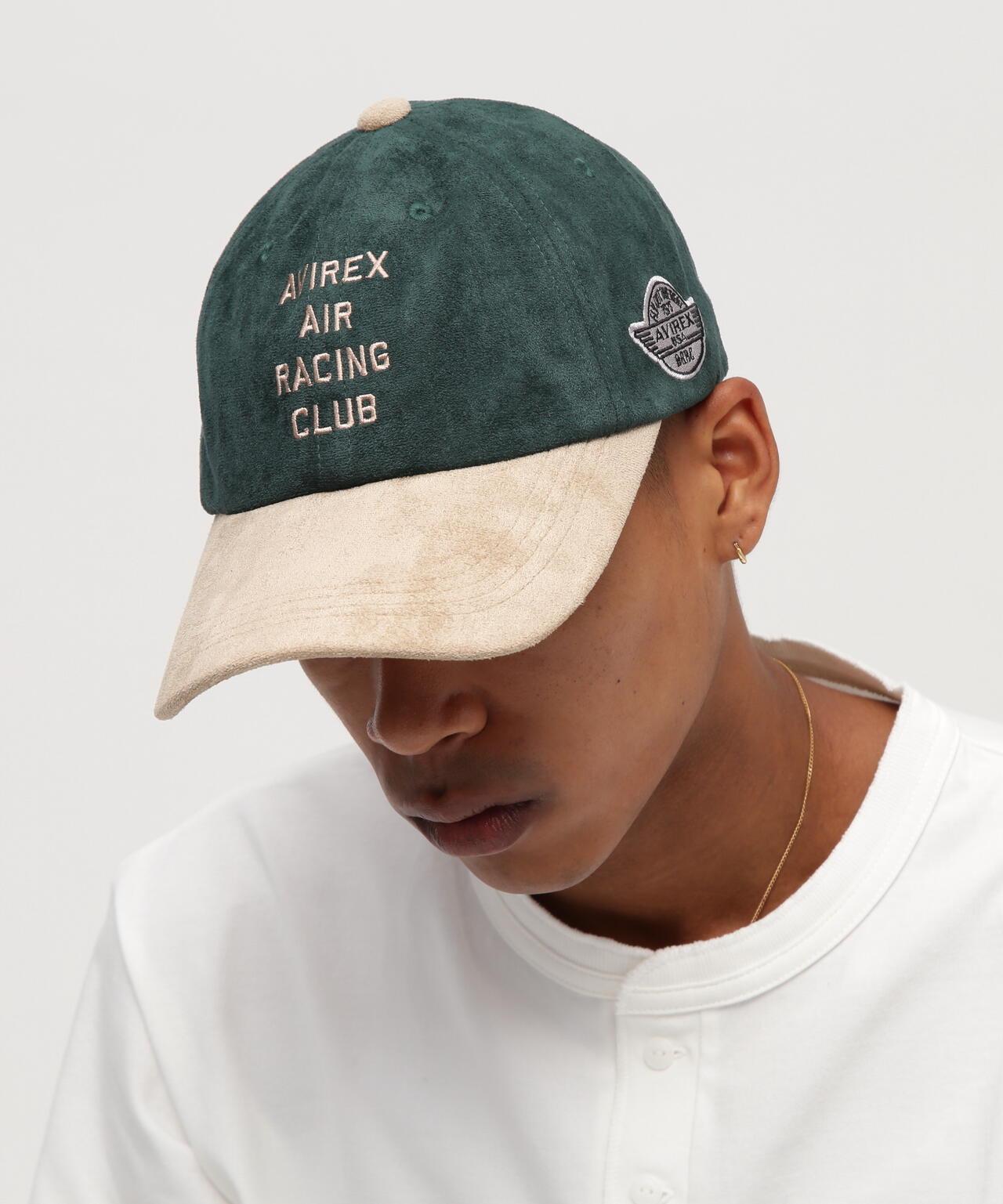正面簡單地省略了 "AVIREX AIR RACING CLUB "標誌的刺繡和多餘的裝飾,雖然簡潔,但拘泥於細節的設計,帽簷和上面的紐扣使用了麂皮色調的素材,側面是軍裝風格的徽章[AVIREX]。1975 年,AVIREX 作為美國空軍的承包商成立,提供飛行夾克,知名度大幅提升。Avirex 源自軍隊,以功能性設計所散發出的獨特美感為基礎。在電影《奪寶奇兵》、《壯志凌雲》和《孟菲斯美女》中,Avirex 的獨特外觀都獲得了一致好評。它的輕薄。