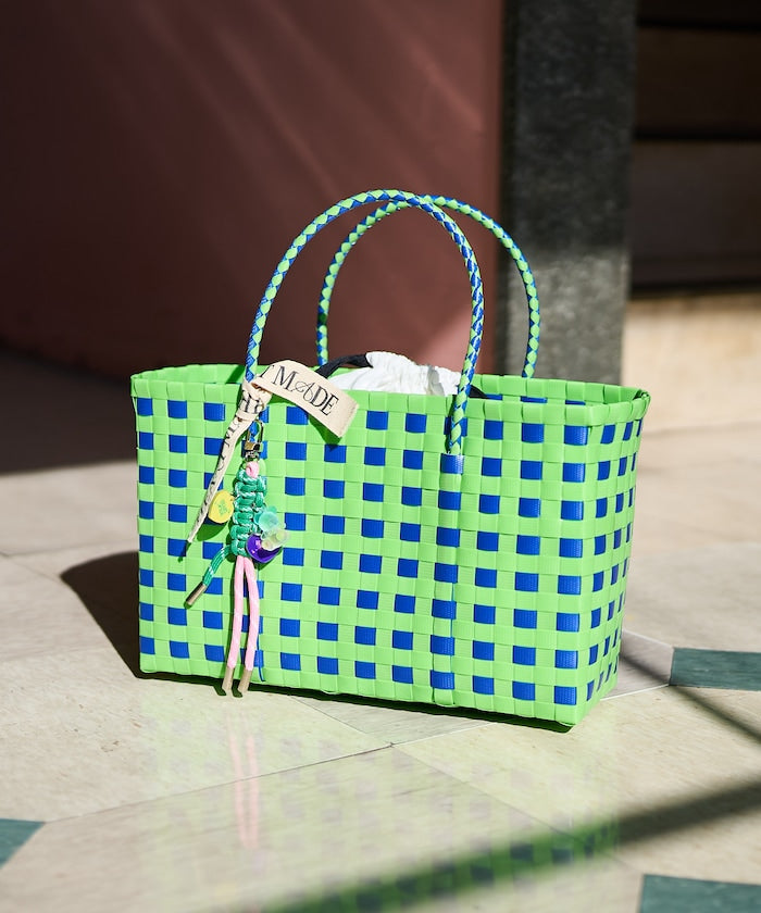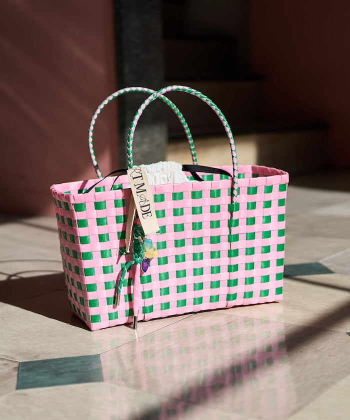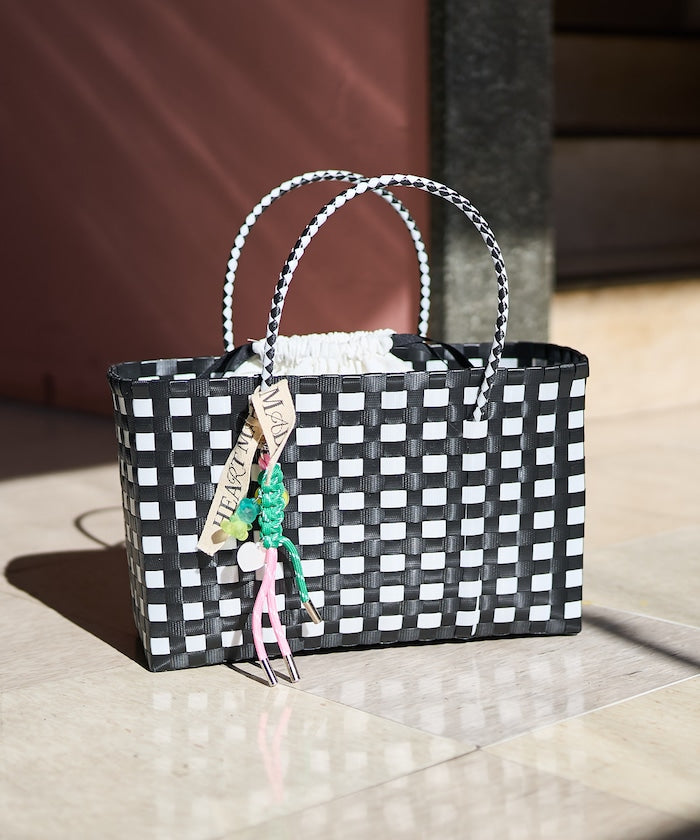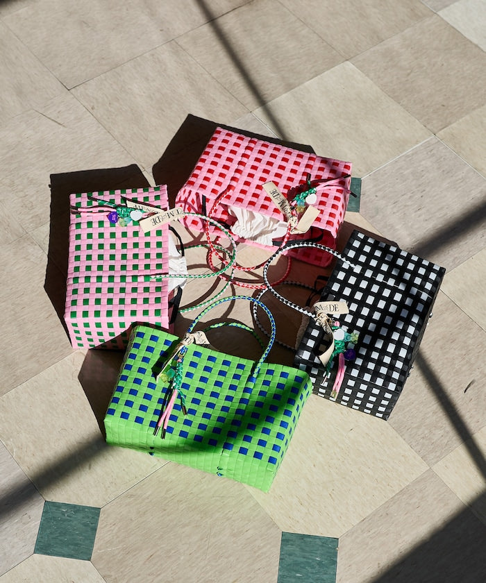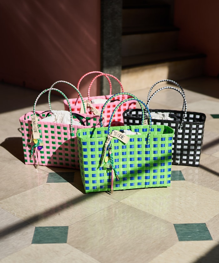 品牌使用回收塑料製作藤編籃子,這種籃子在設計師的背景地泰國曼谷流行已久。該品牌的產品由回收塑料製成。該品牌是對藤編籃子的現代更新,藤編籃子在設計師的家鄉泰國曼谷一直很流行。