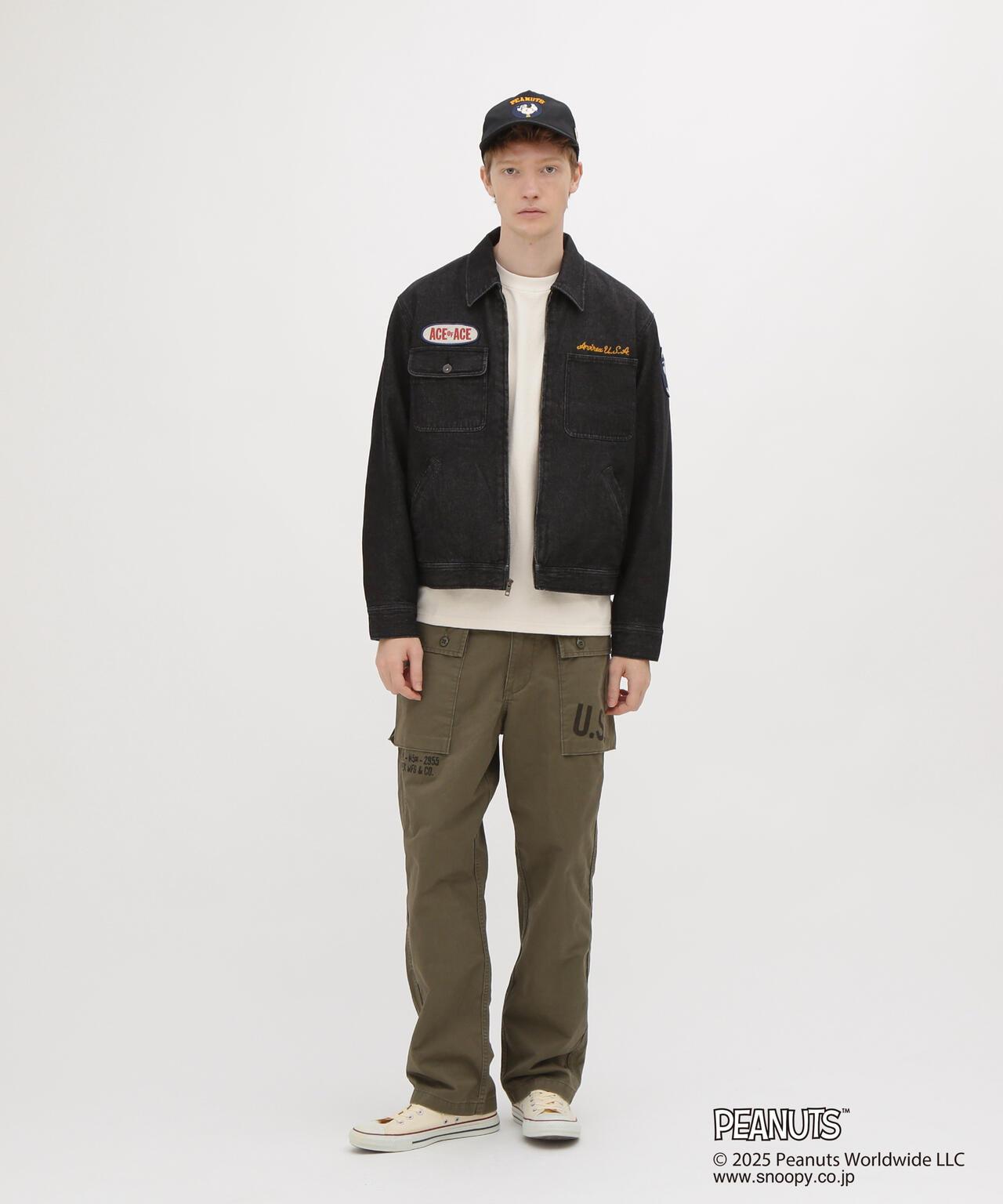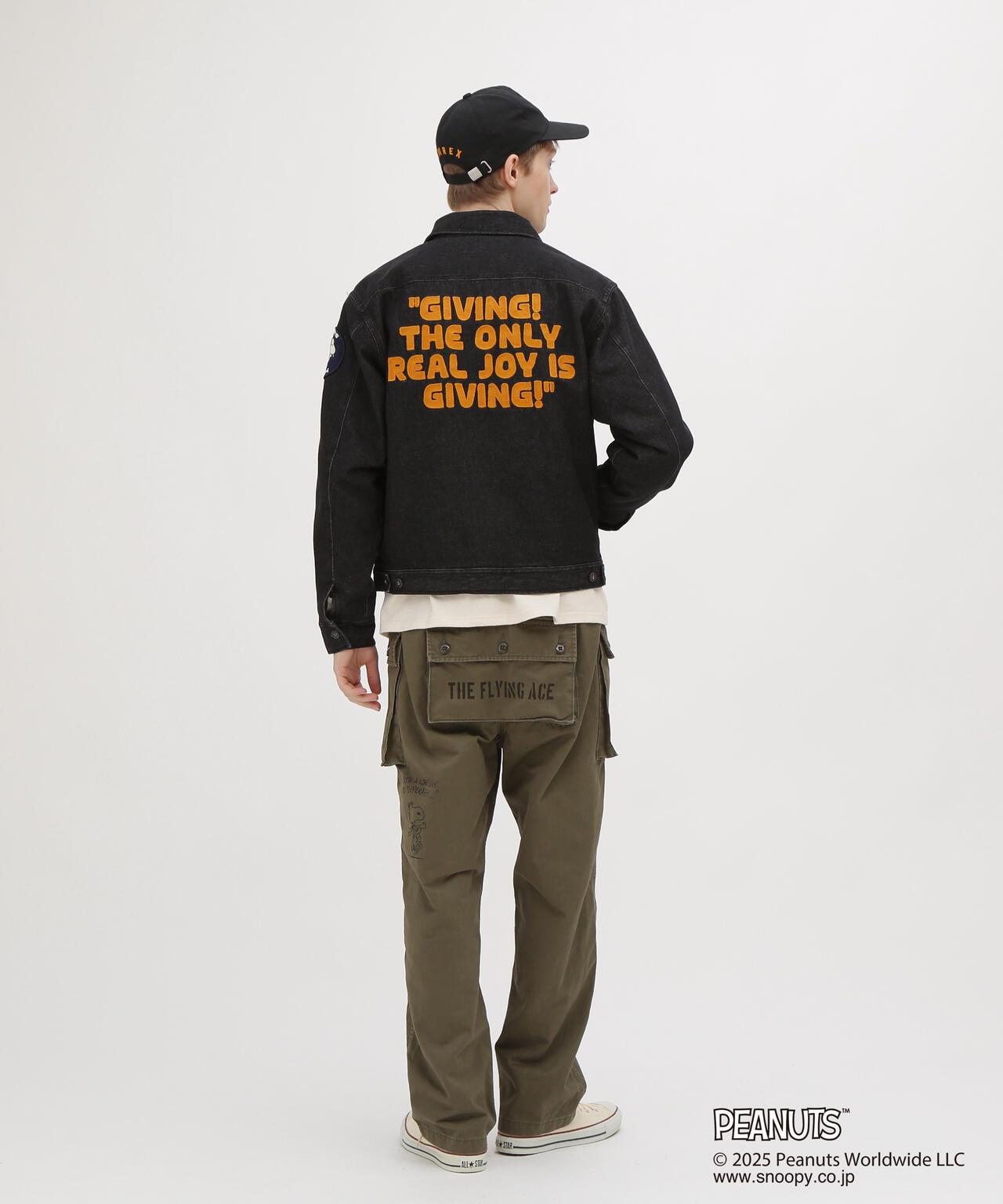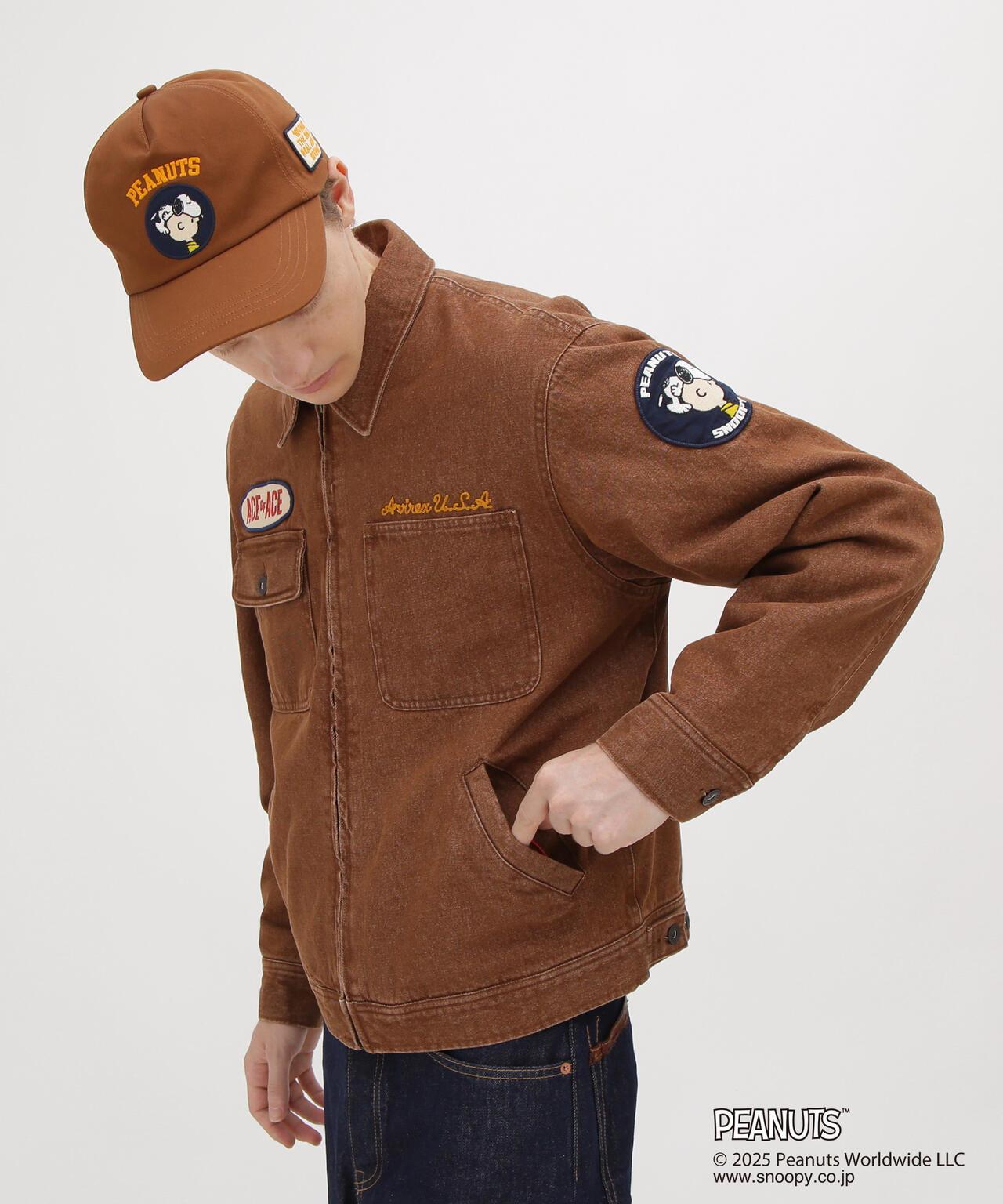 PEANUTS 是一部風靡全球的連環畫,至今仍在 75 個國家、21 種語言的 2200 份報紙上連載。該系列是將原創設計融入 AVIREX 流行產品的集合。正面是史努比和查理-布朗的貼片,左側是史努比 "給予 "的貼片設計,寓意深刻!左側是史努比 "THE ONLY REAL JOY IS GIVING!
