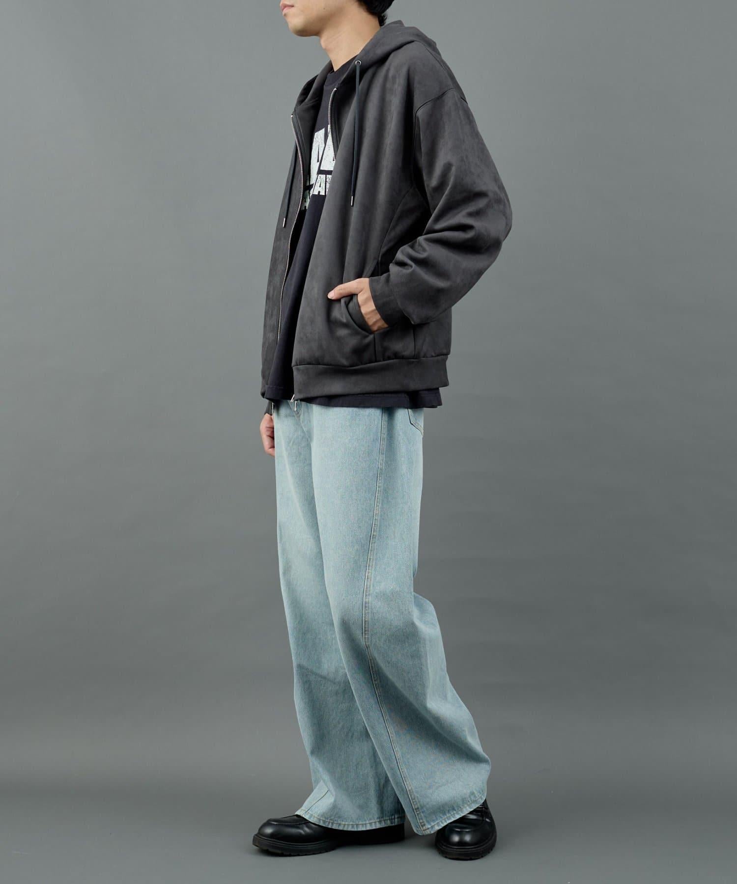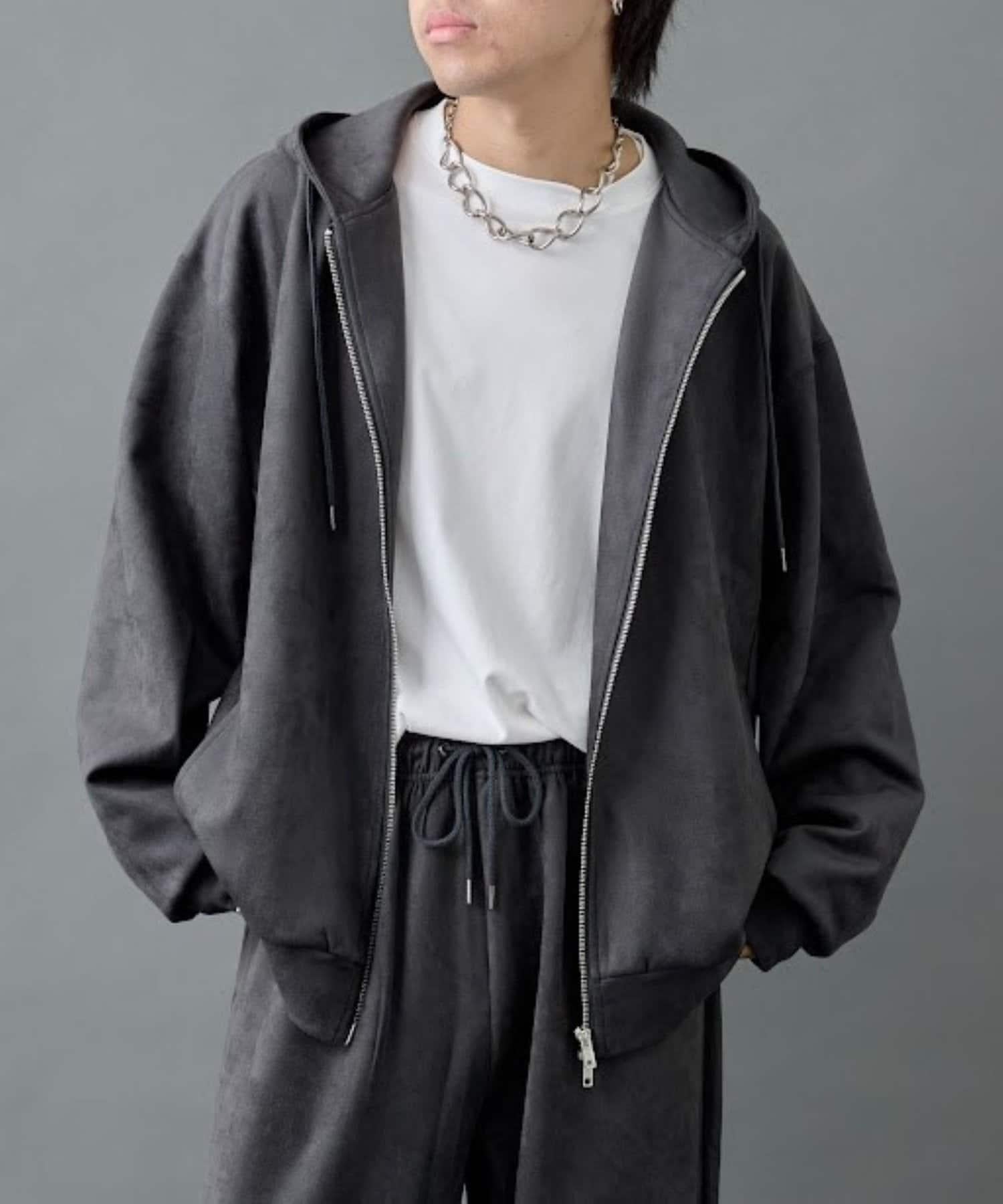 【AW/】合成麂皮雙拉鍊連帽外套
