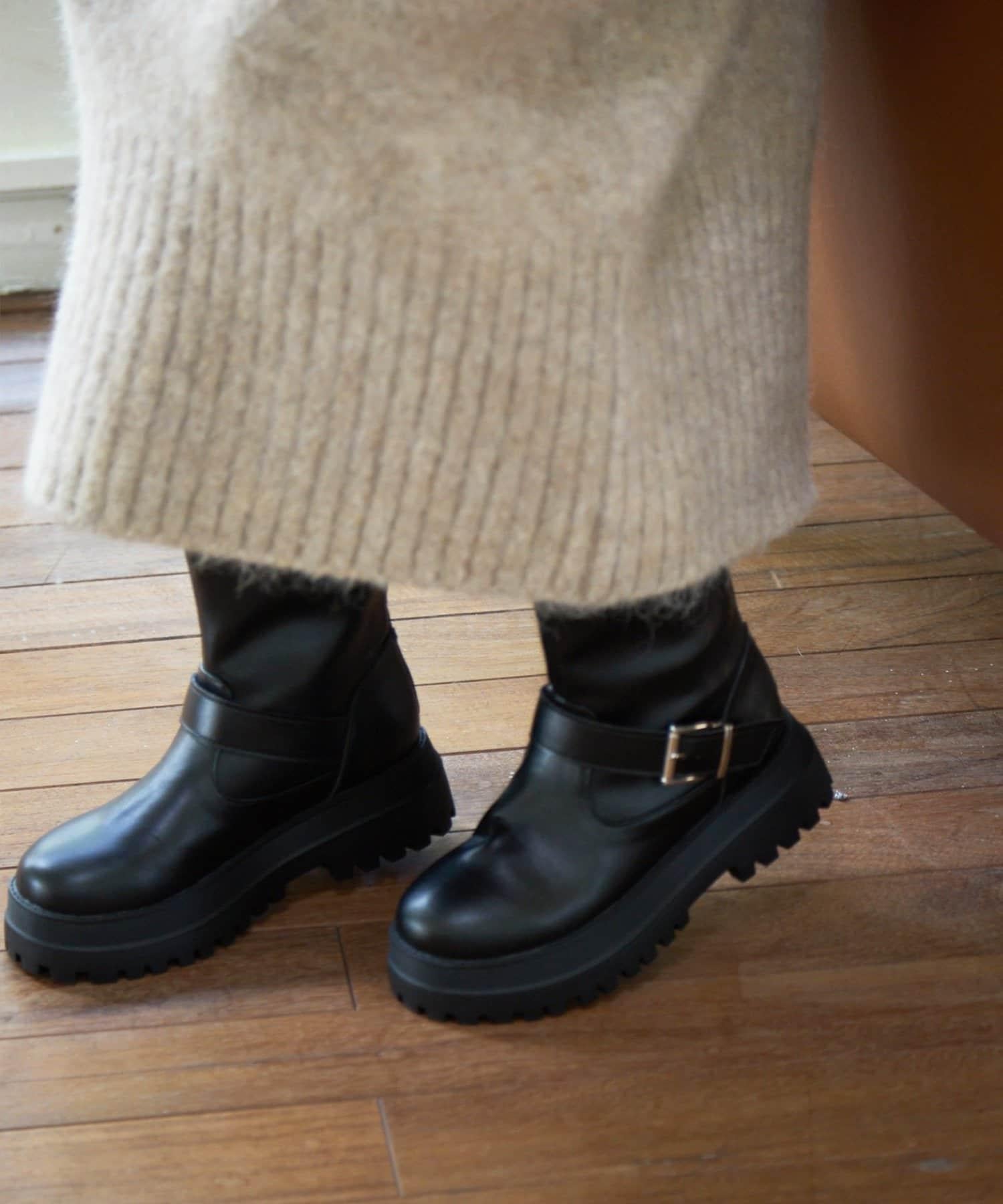 厚實的腰帶、銀色搭扣和厚重的鞋底等細節都是這款工程師靴的真實再現。