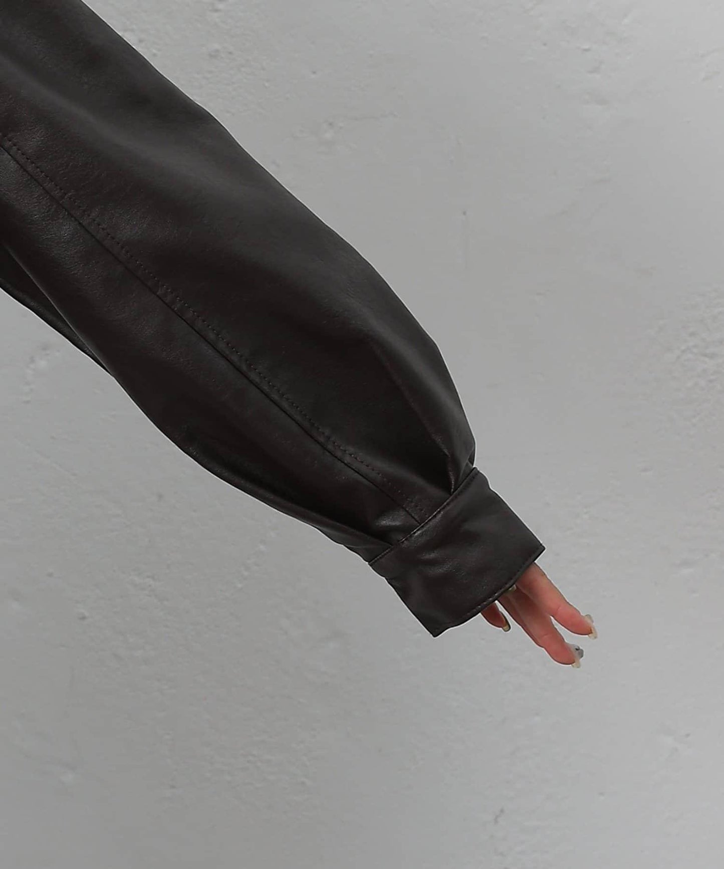 這款罩衫具有真皮般奢華的光澤和質感,但卻是由動物和環保型人造皮革製成。