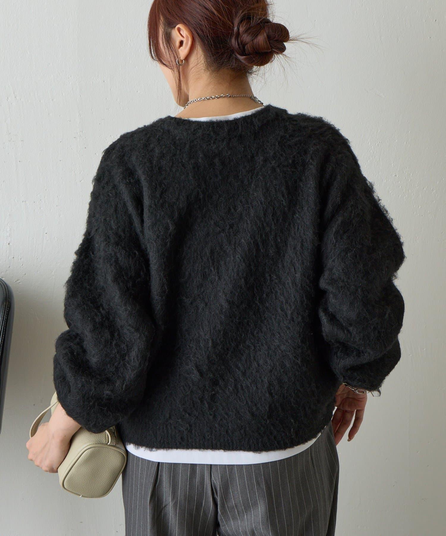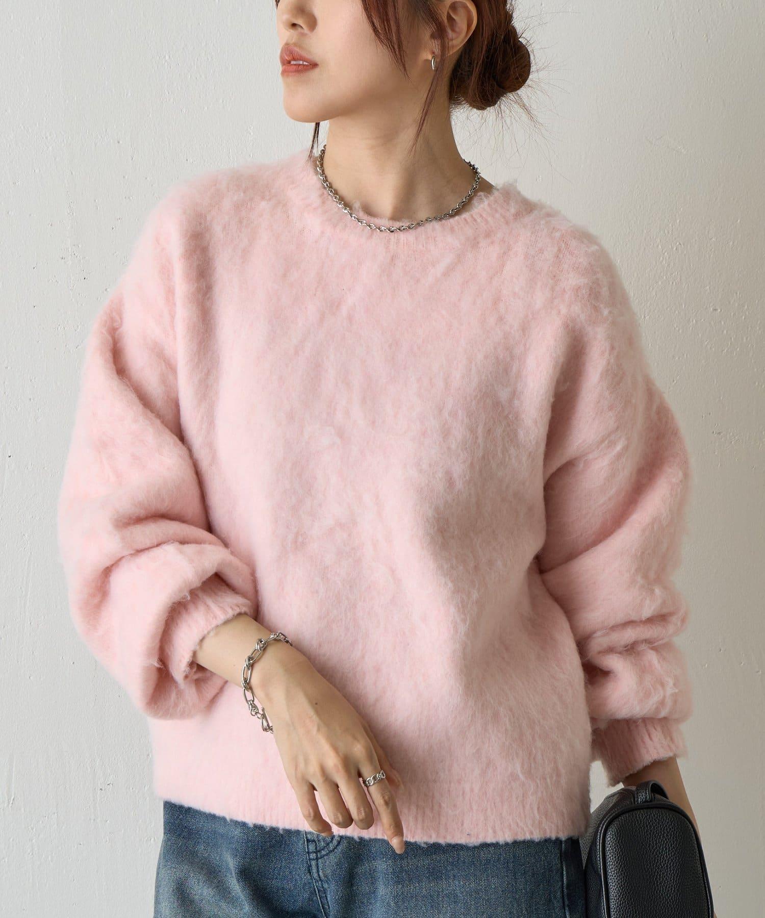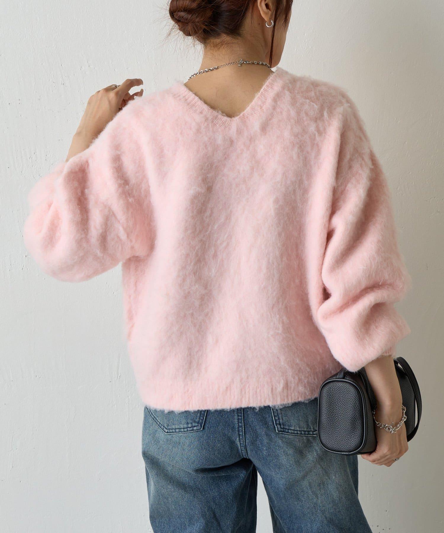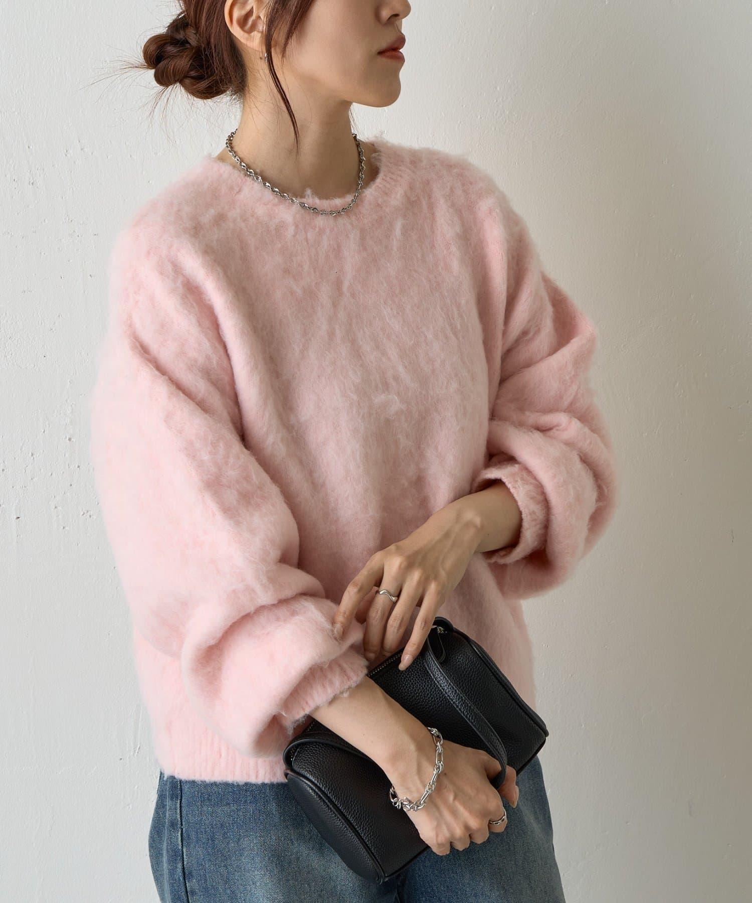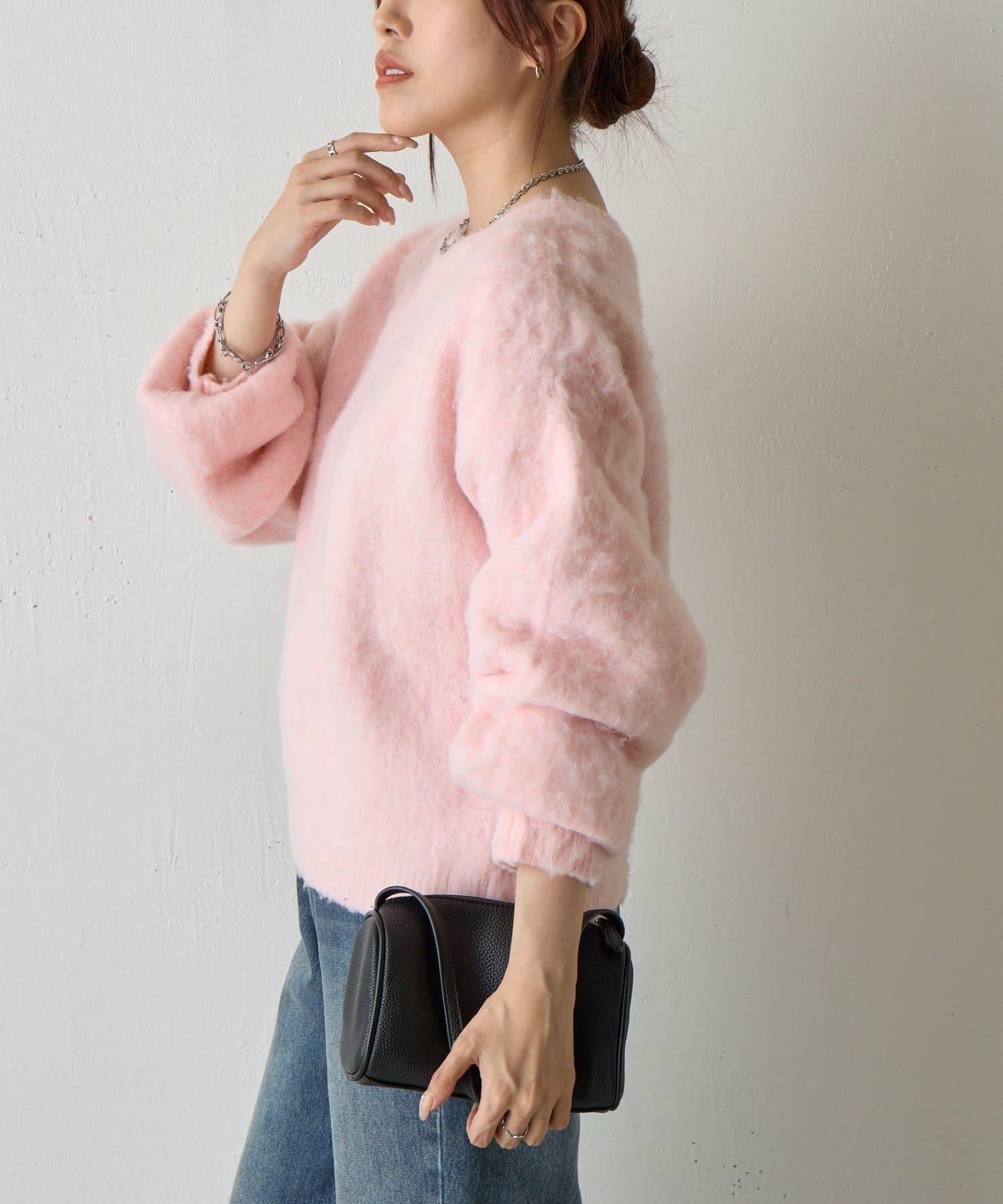 這款馬海毛觸感針織衫具有可愛的蓬鬆材質感。