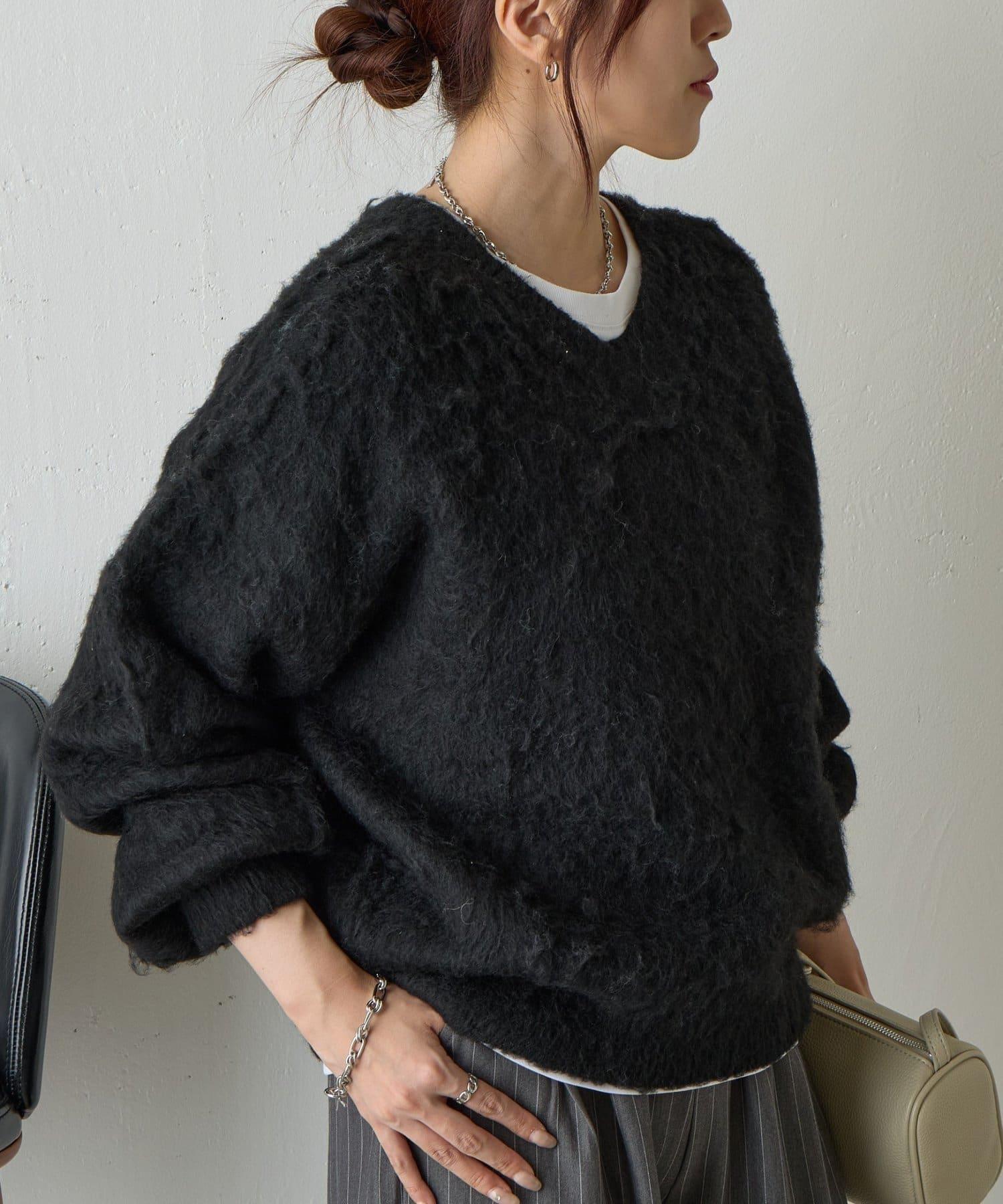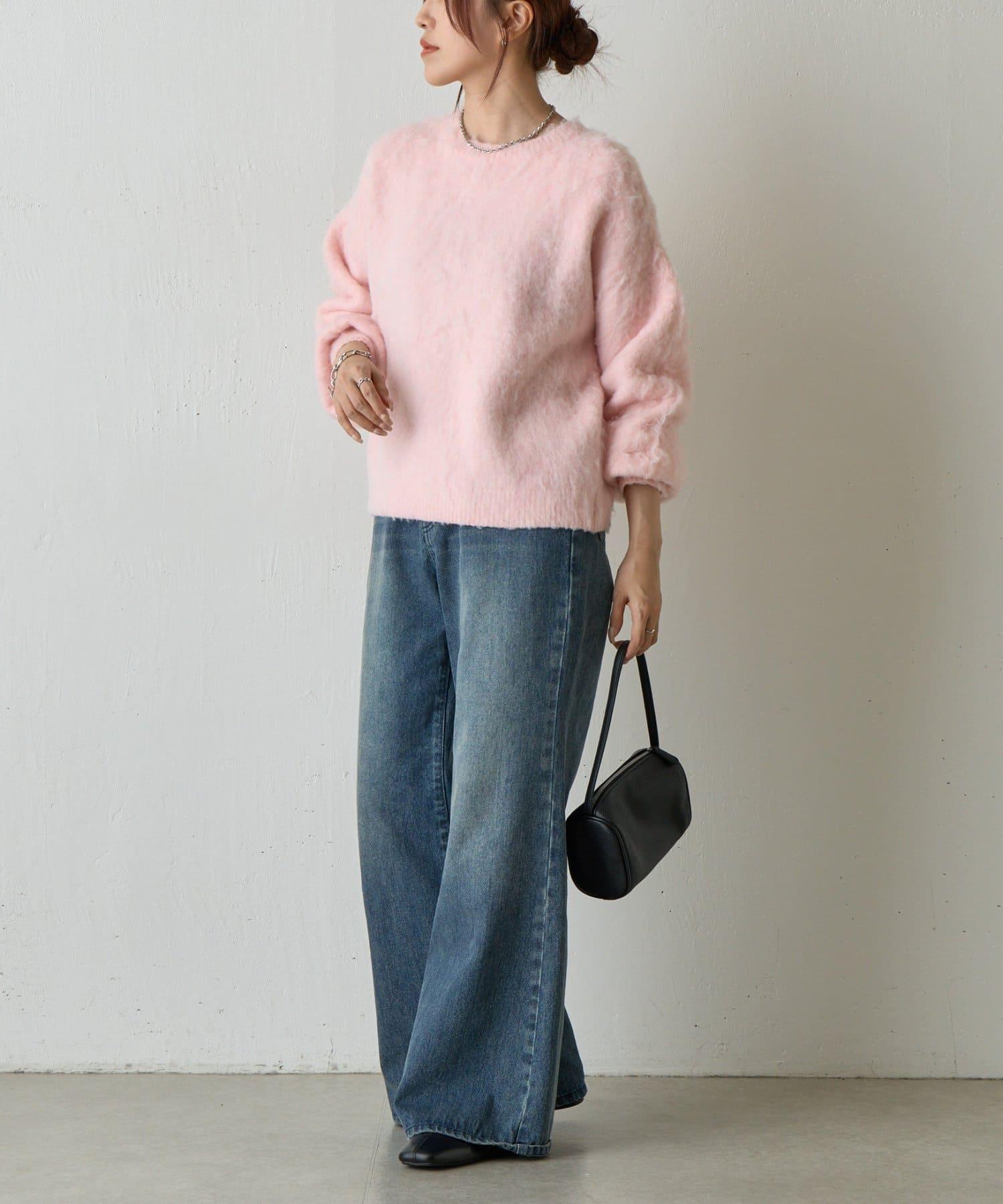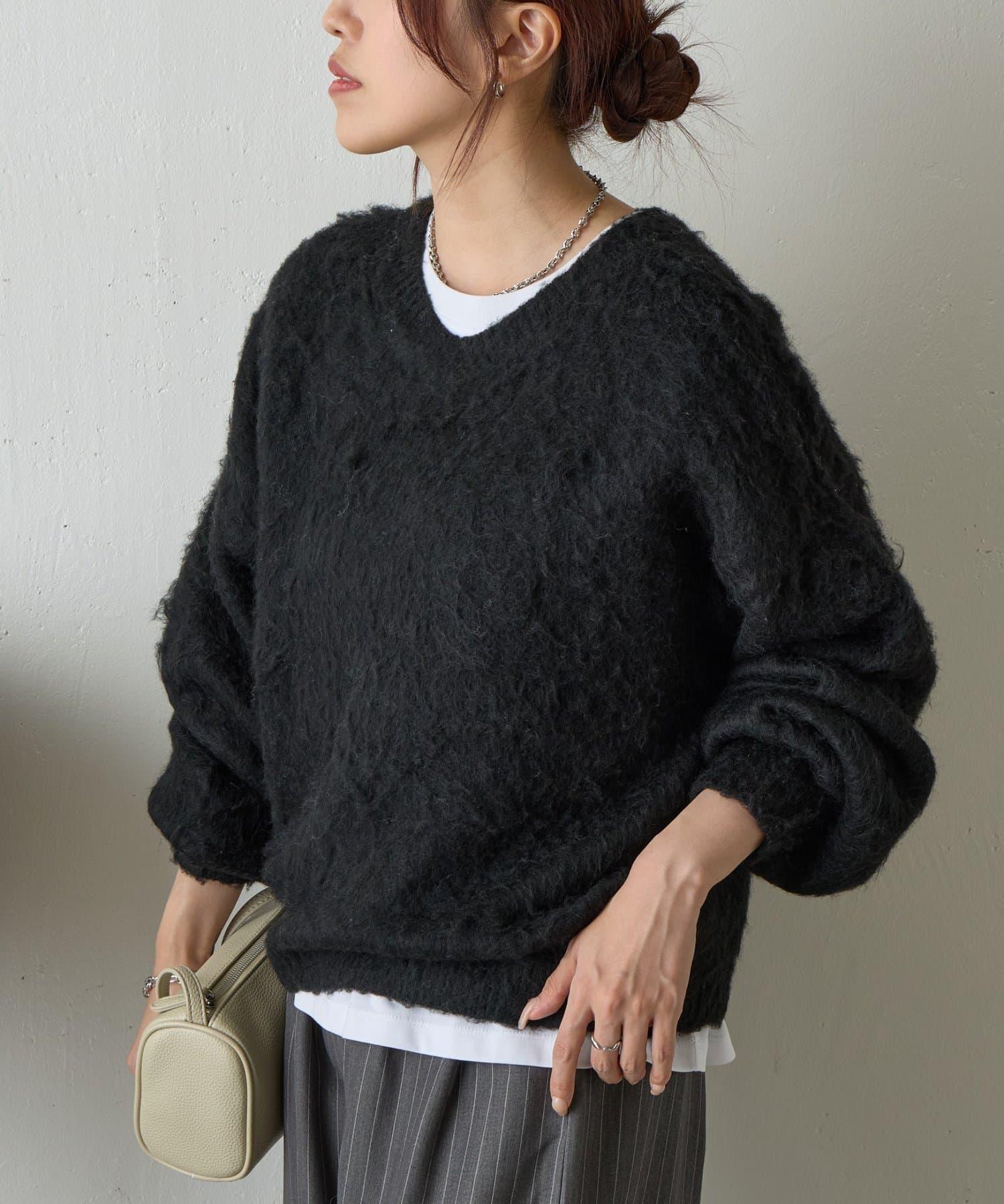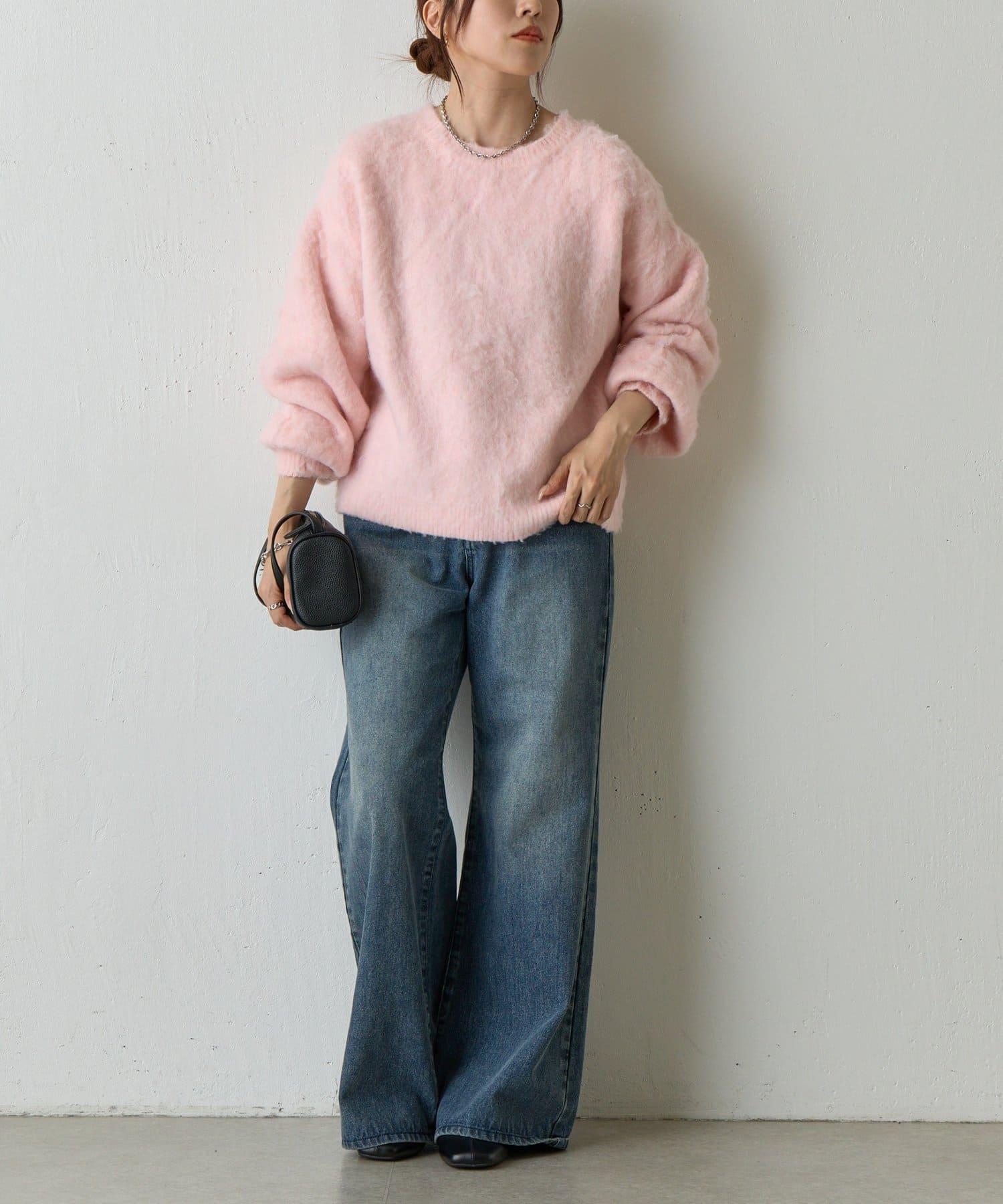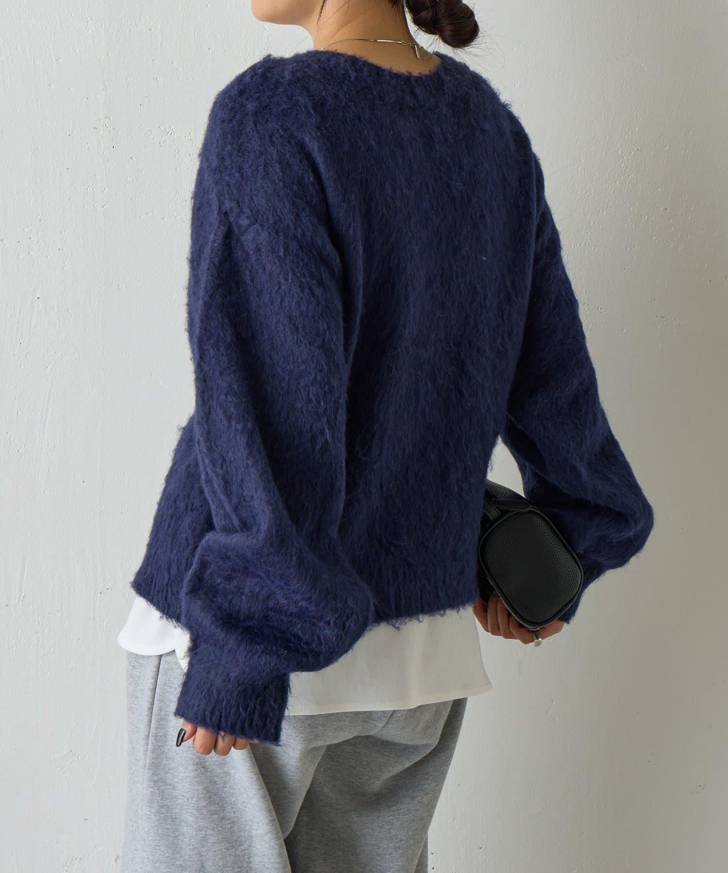 這款馬海毛觸感針織衫具有可愛的蓬鬆材質感。