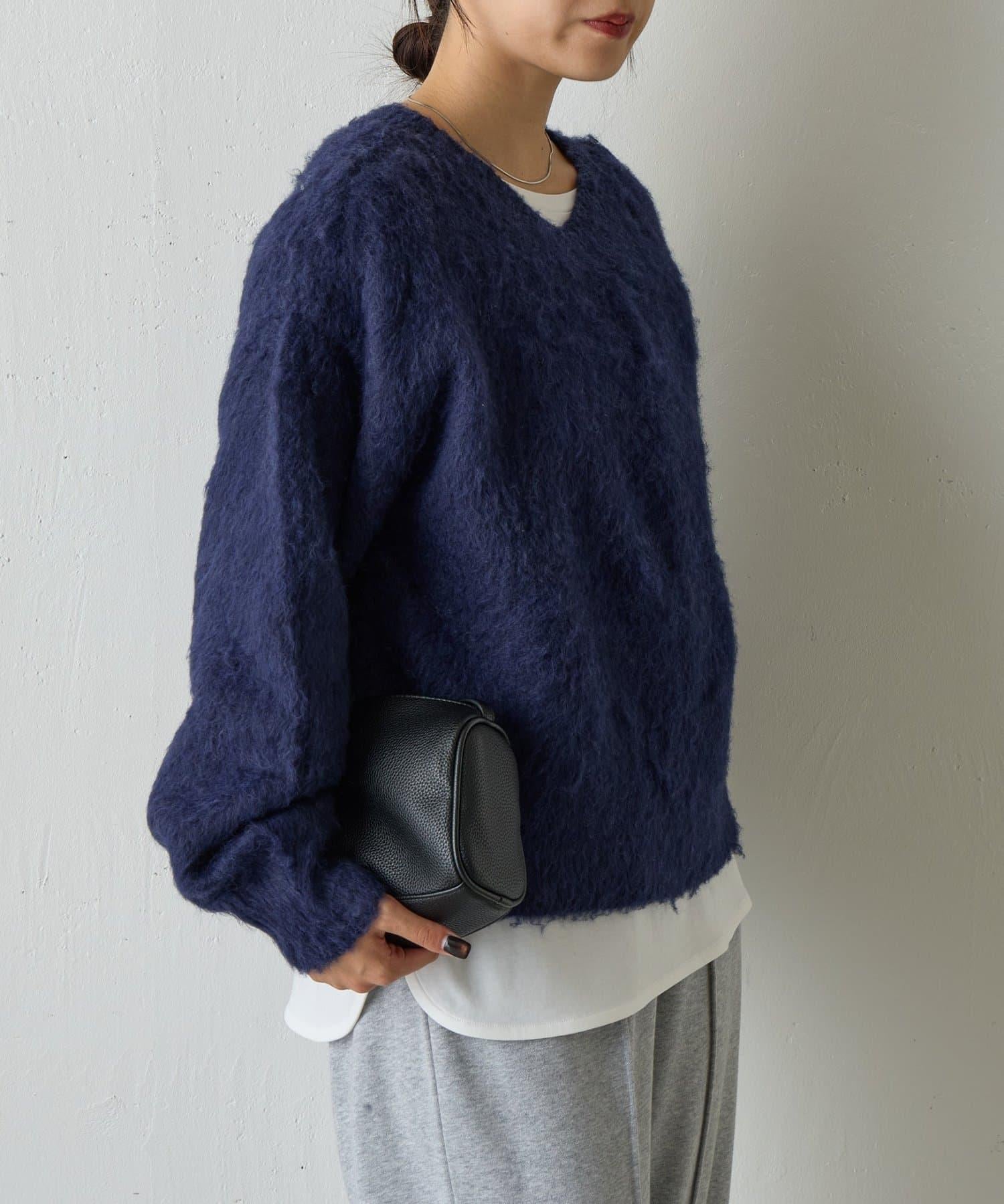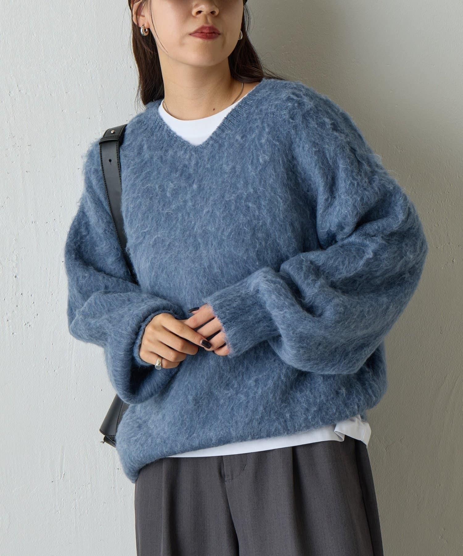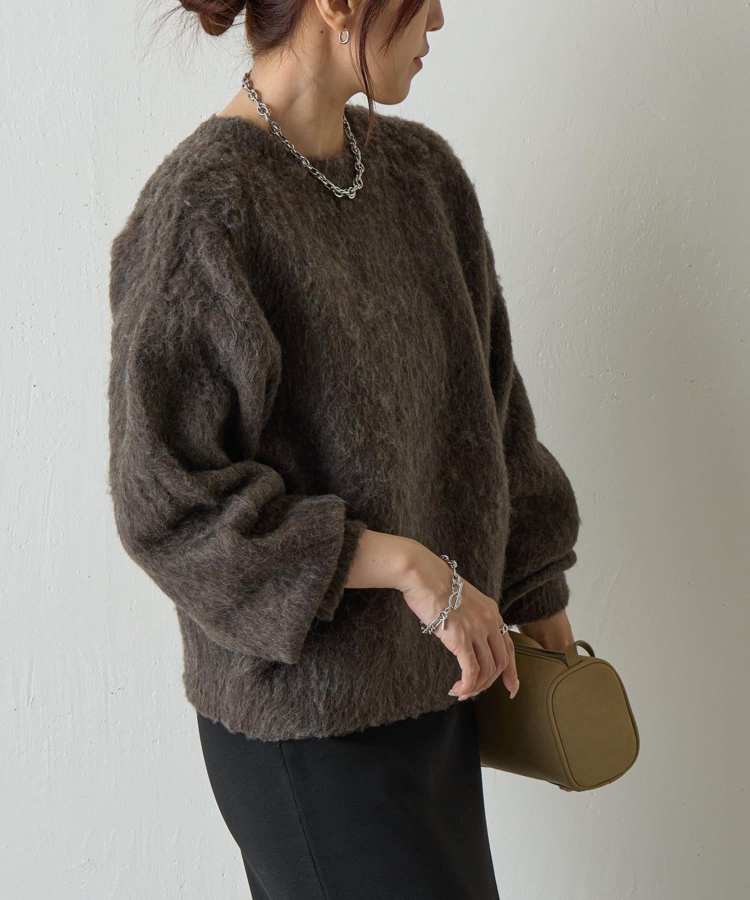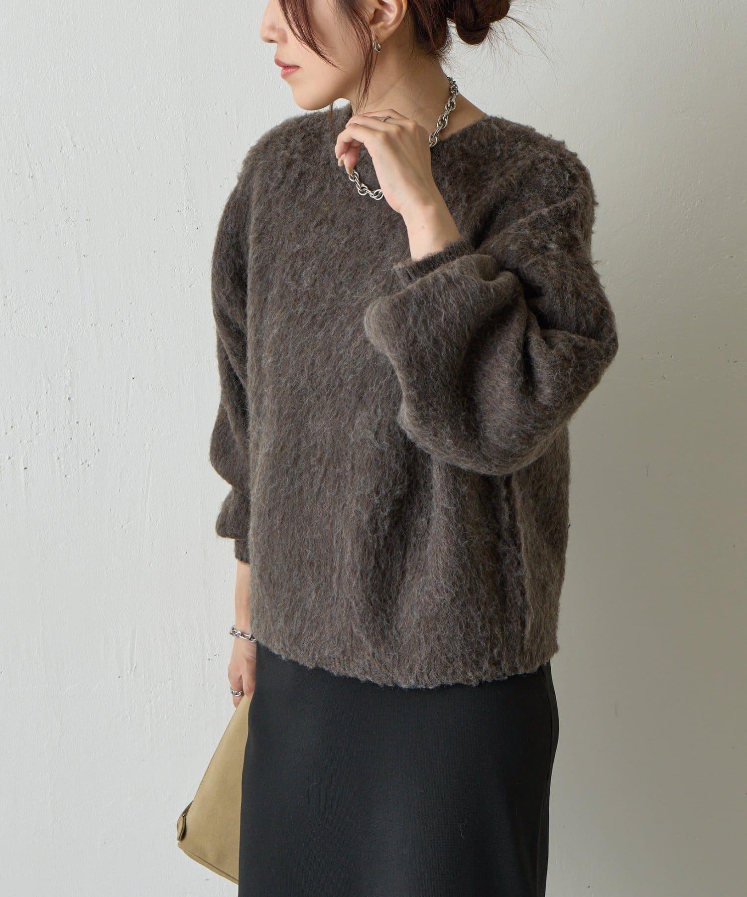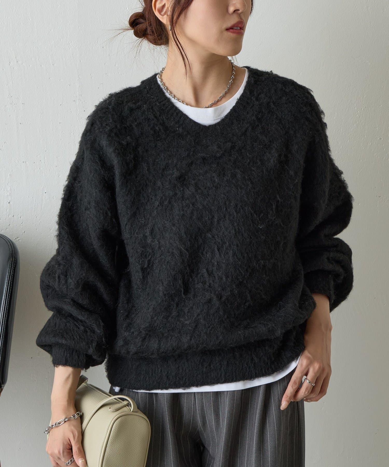 這款馬海毛觸感針織衫具有可愛的蓬鬆材質感。