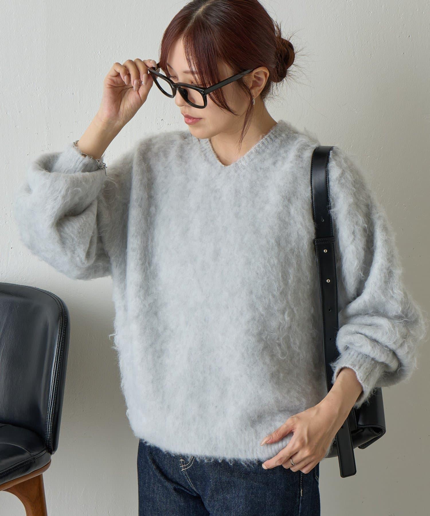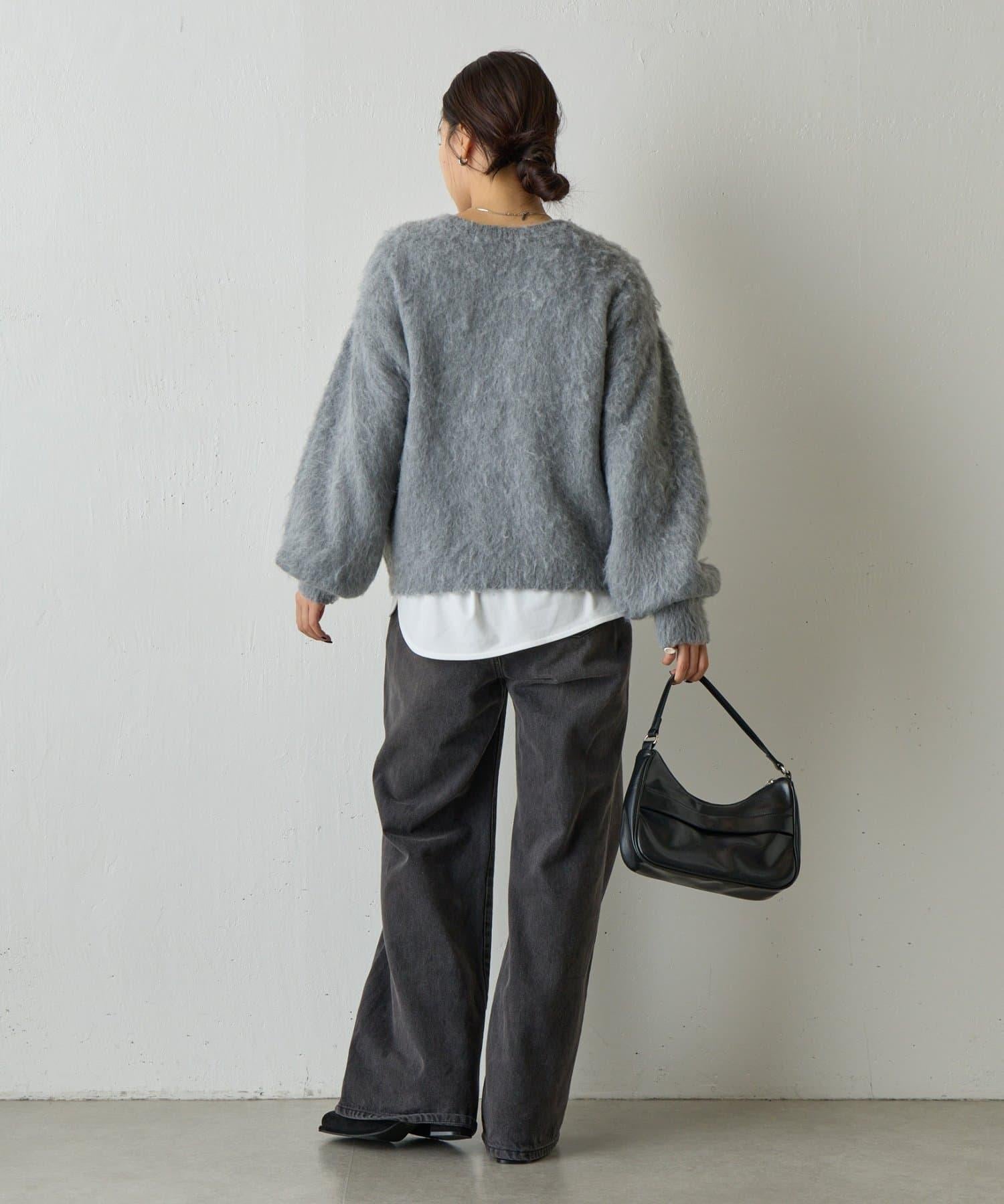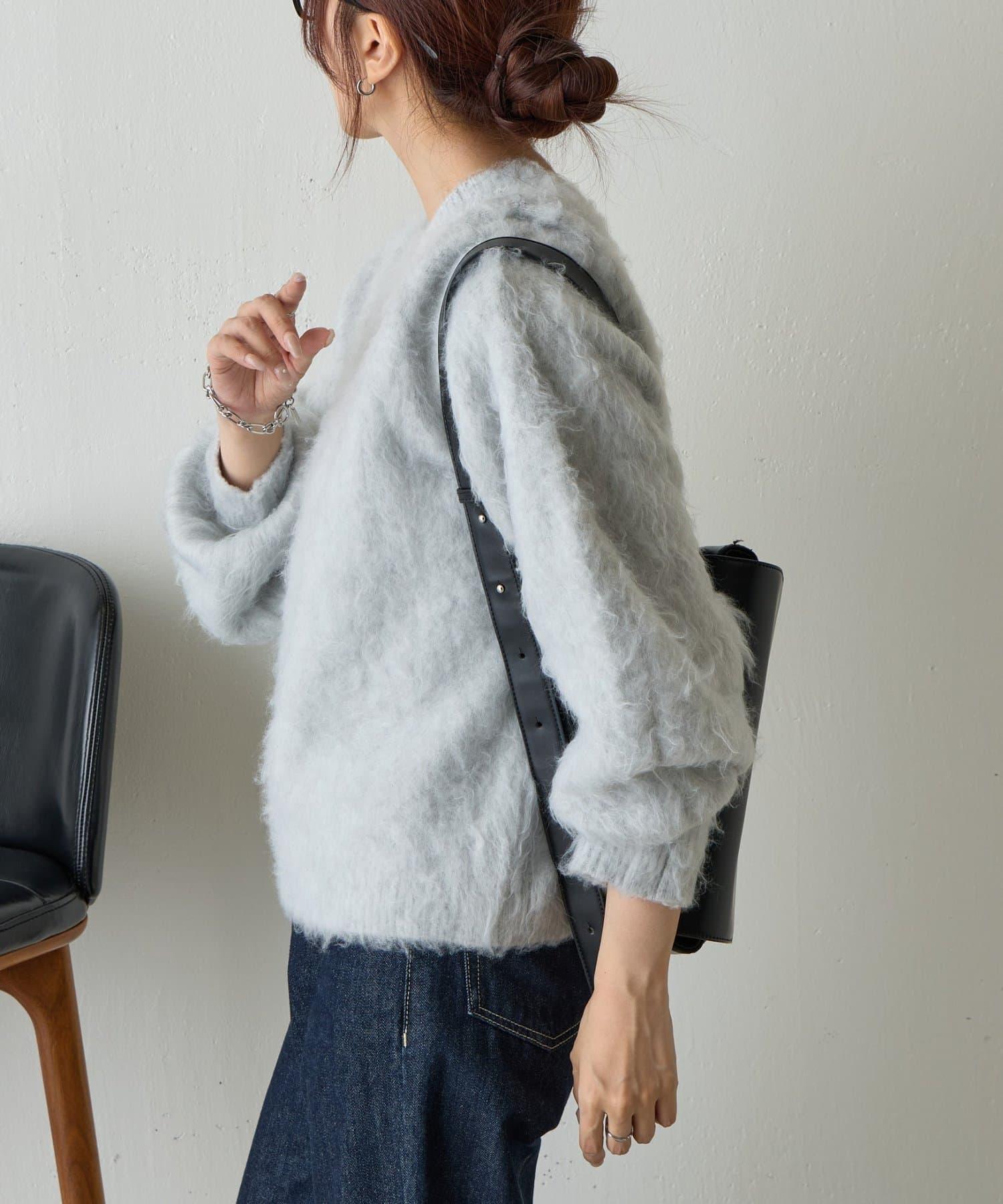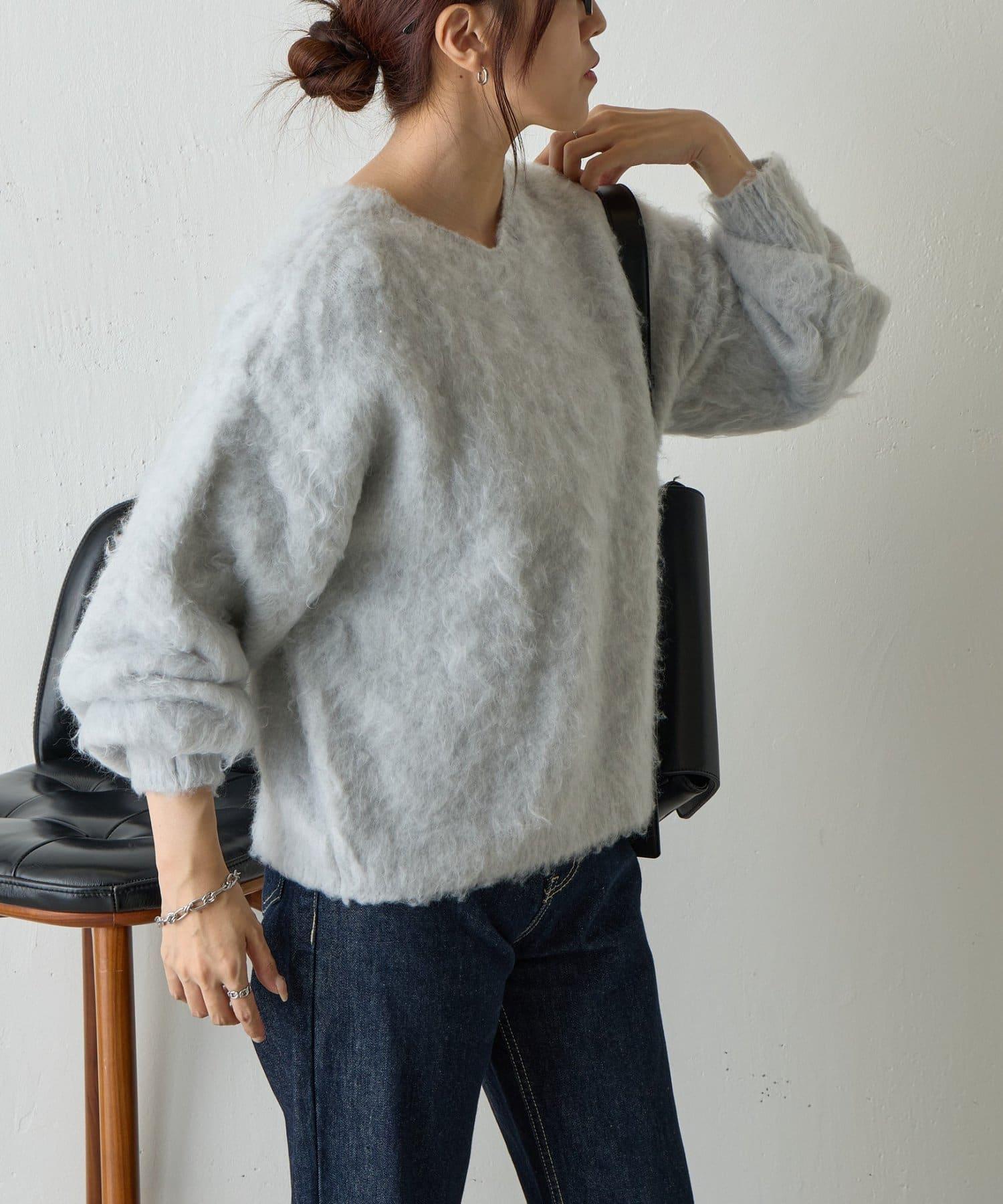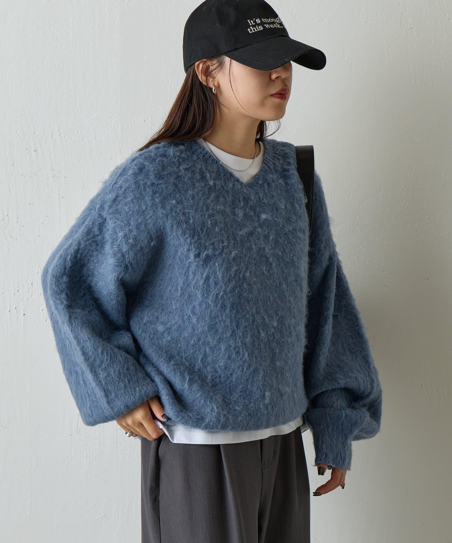 這款馬海毛觸感針織衫具有可愛的蓬鬆材質感。