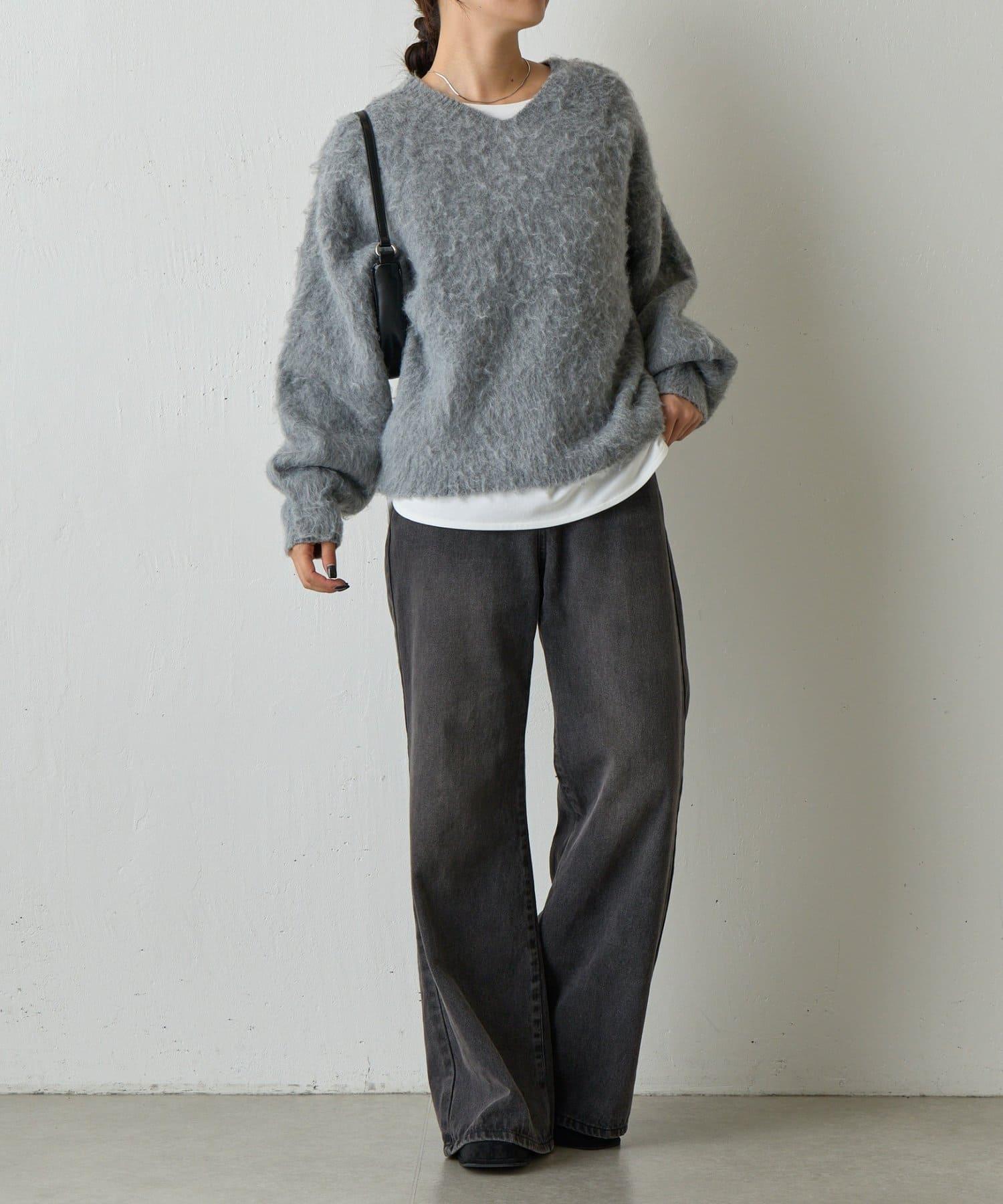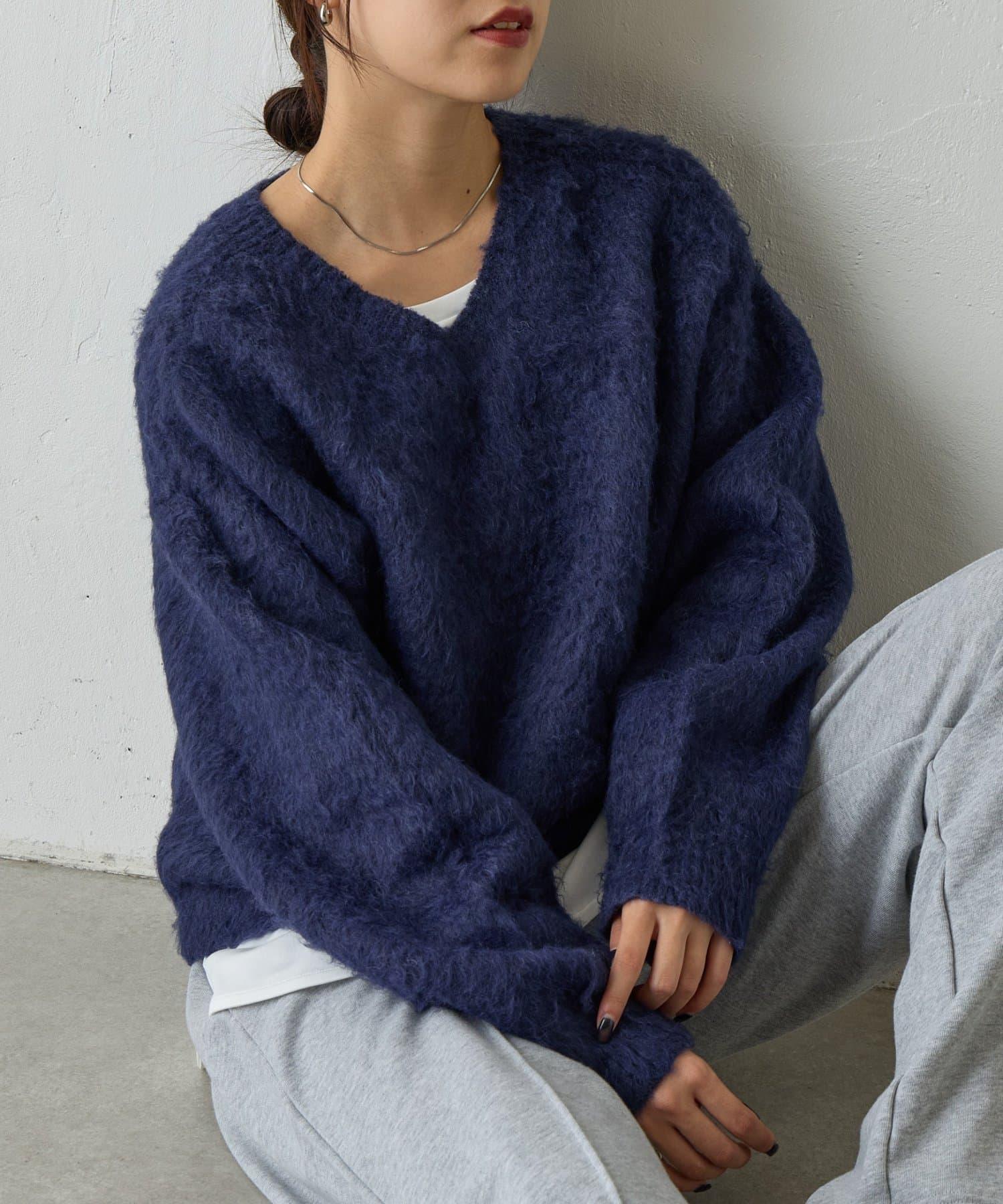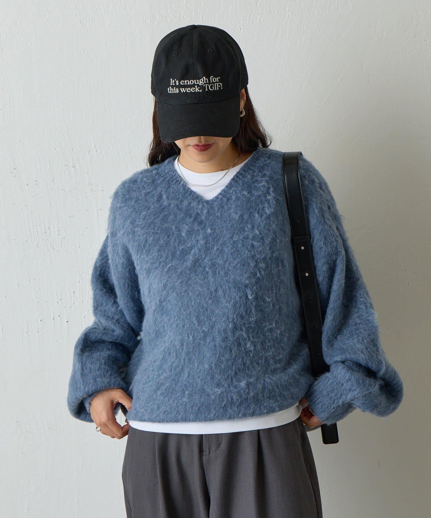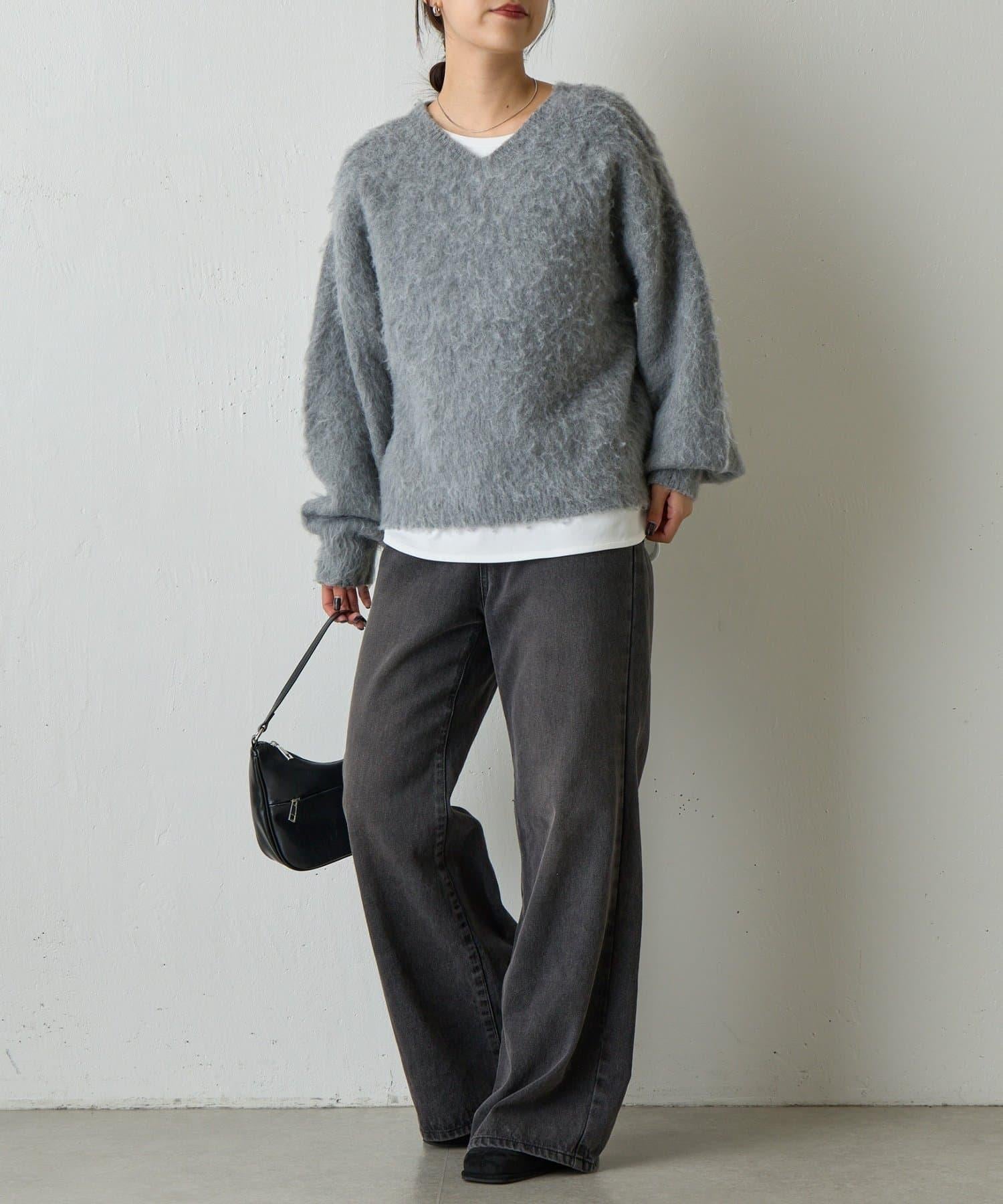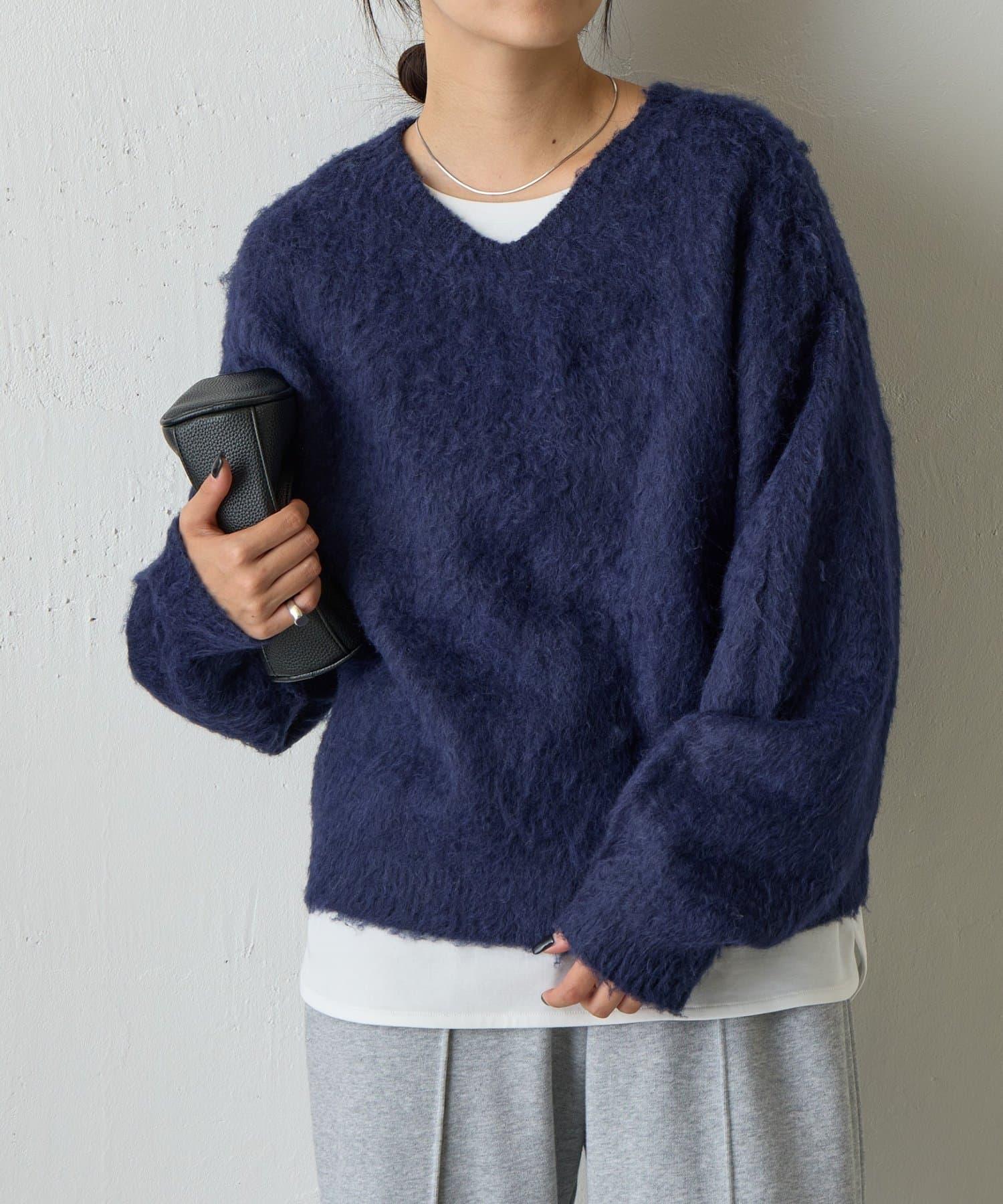 這款馬海毛觸感針織衫具有可愛的蓬鬆材質感。