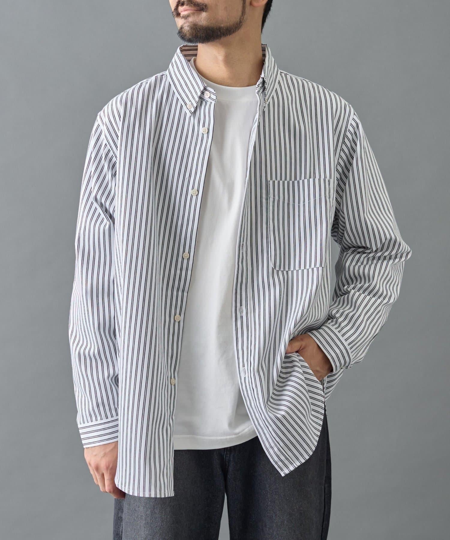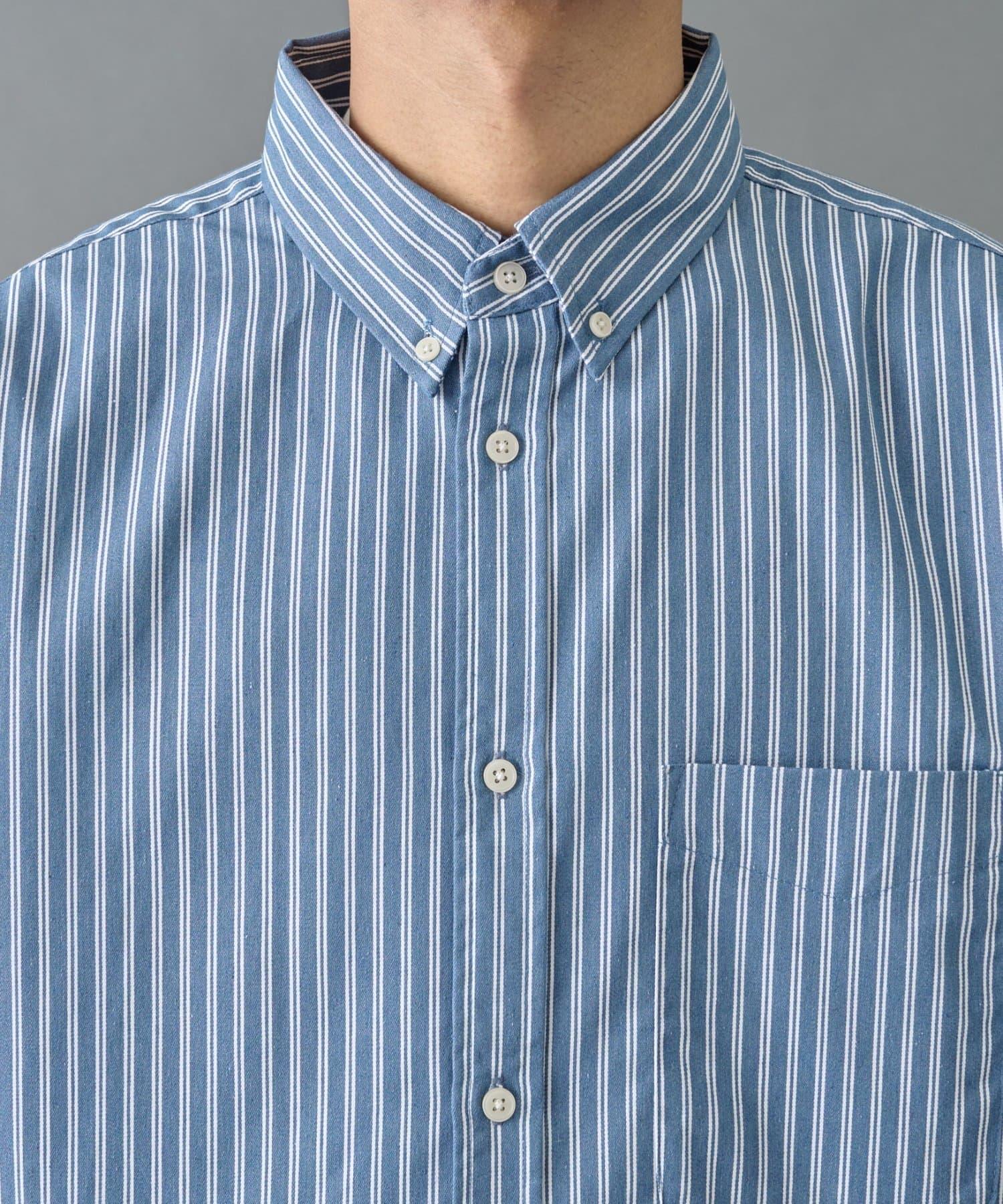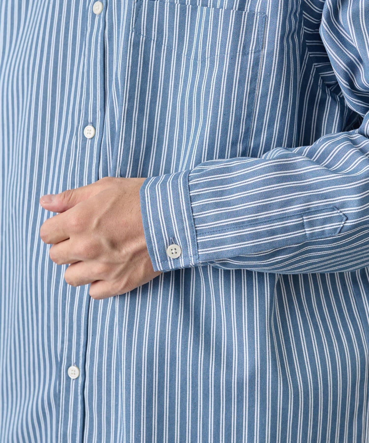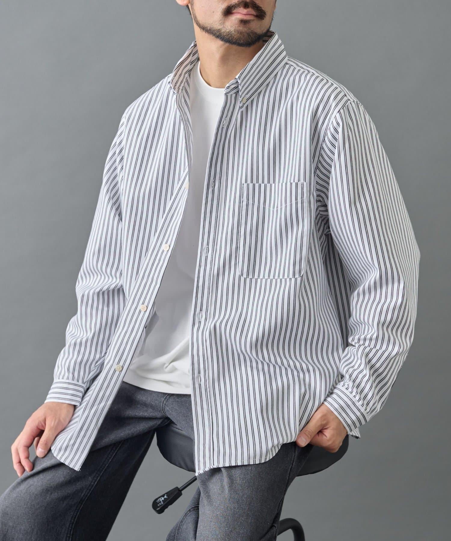 這款紐扣襯衫色調柔和,提花條紋精緻細膩。