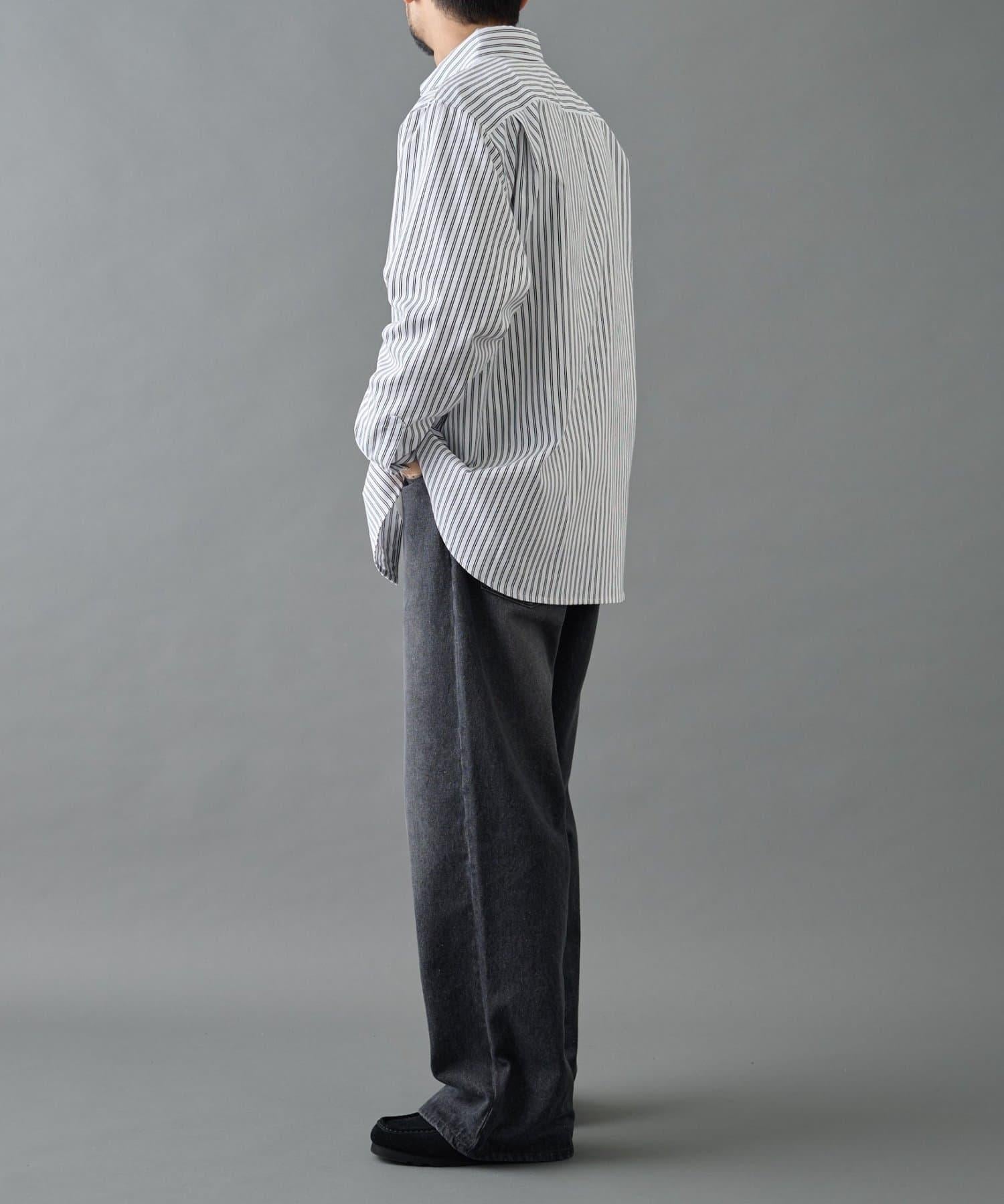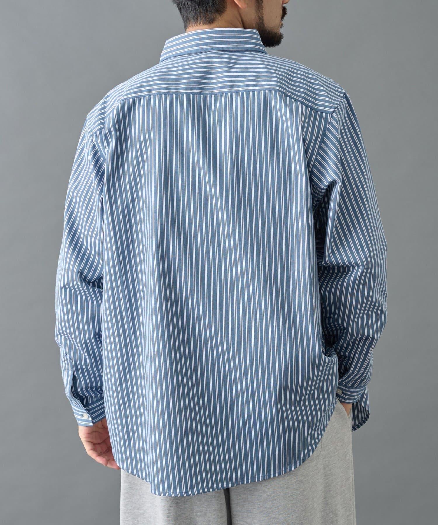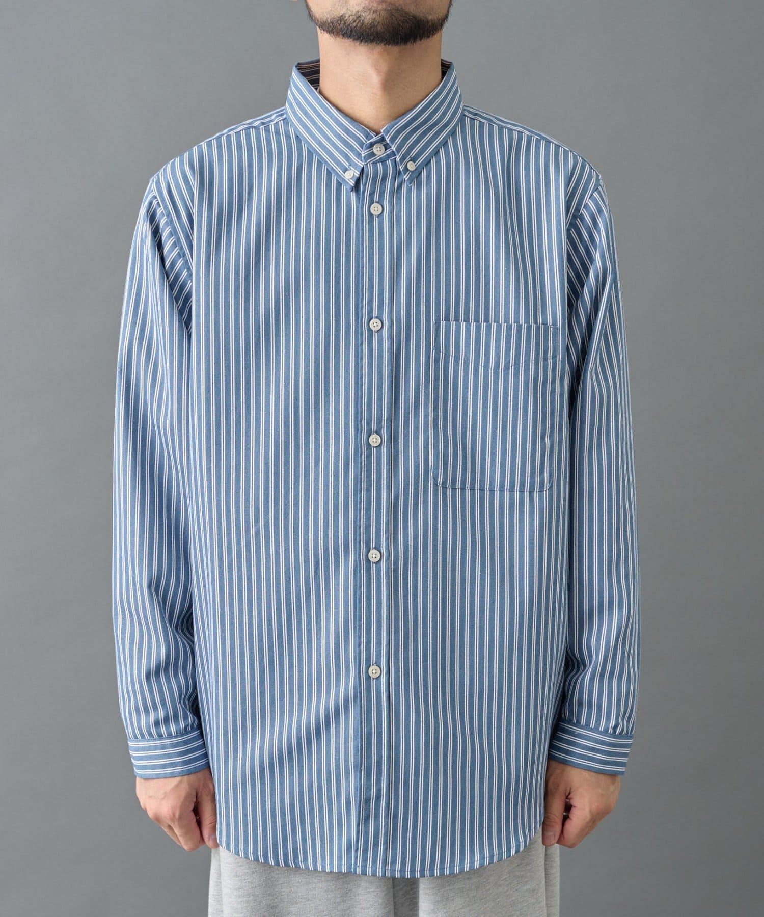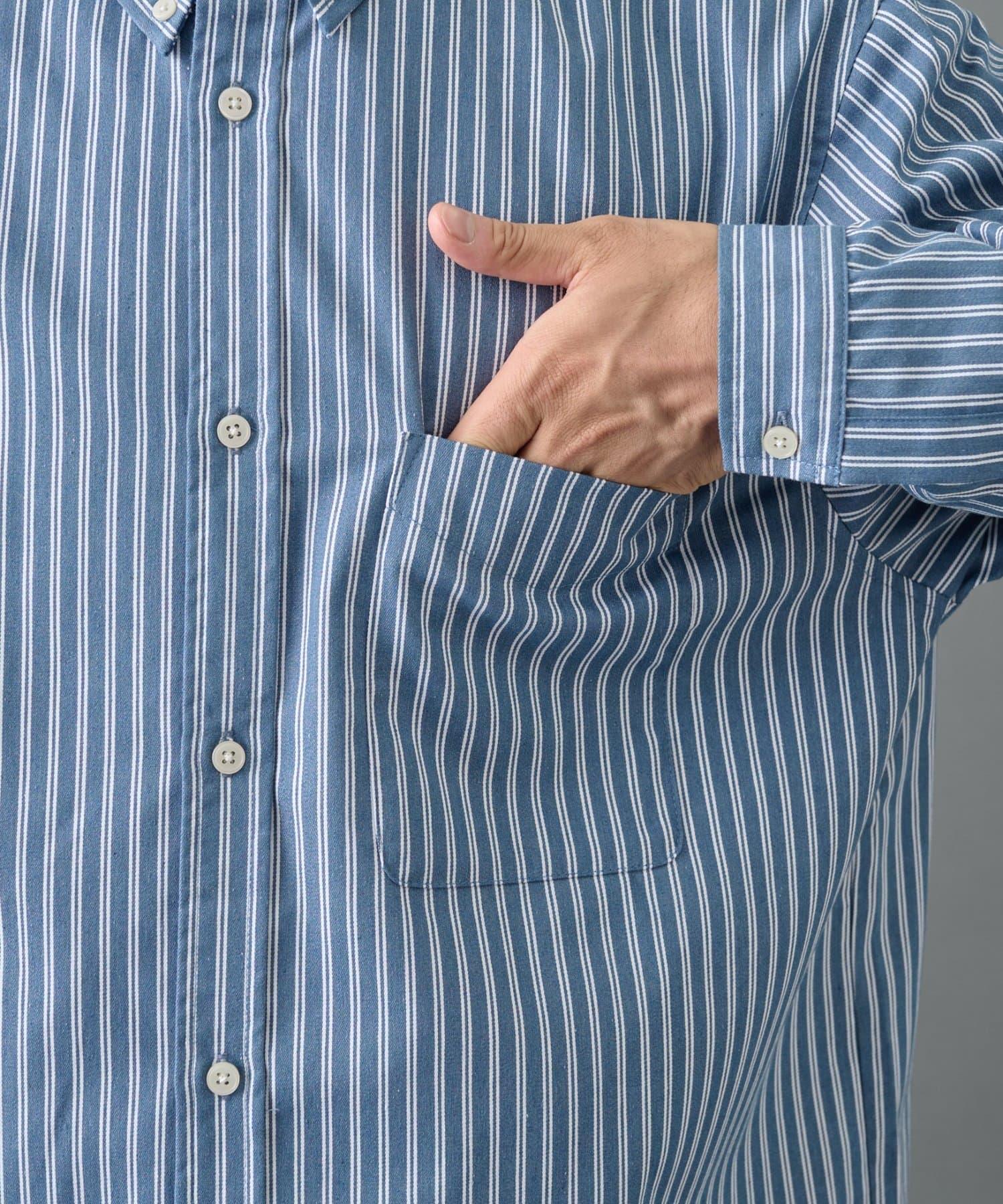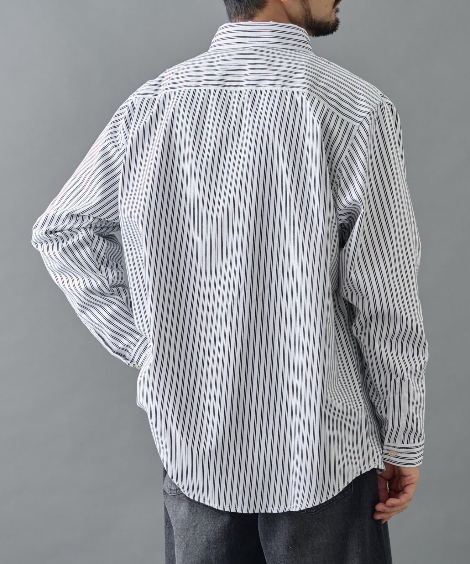 這款紐扣襯衫色調柔和,提花條紋精緻細膩。