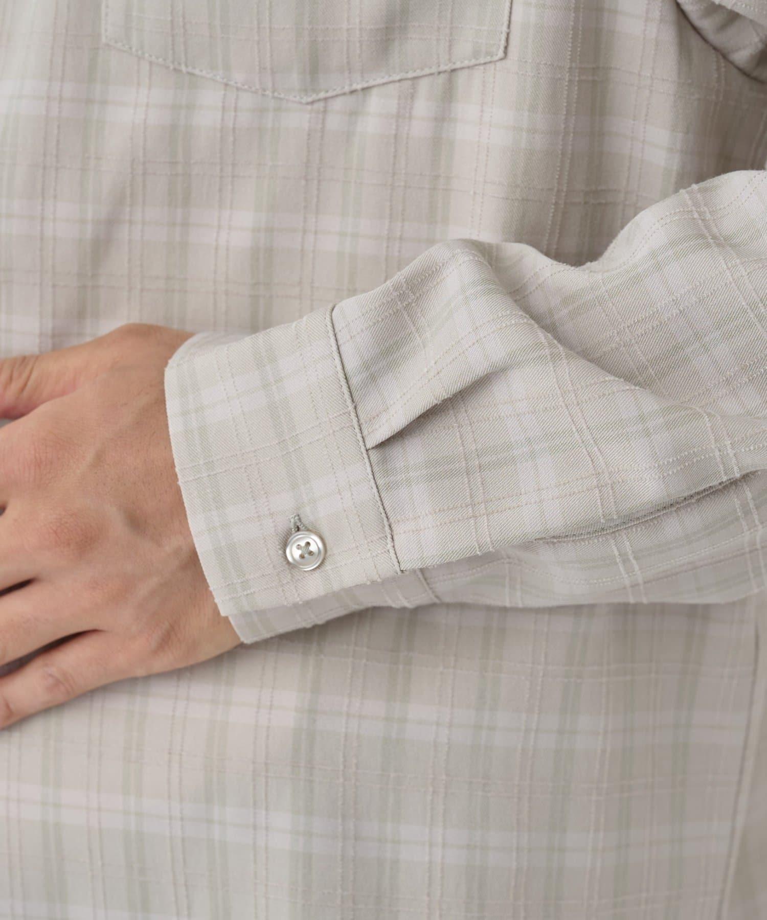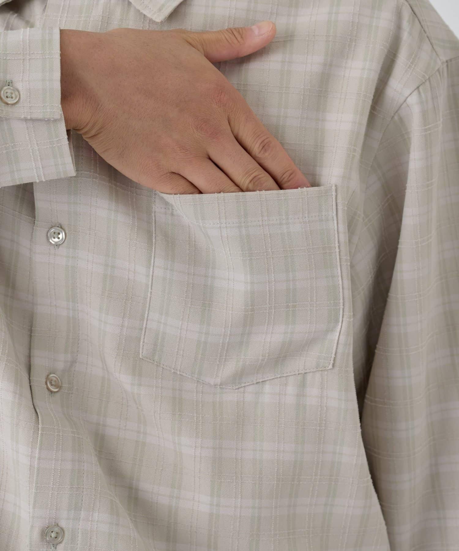 這款長袖襯衫採用精緻的提花織法表現棋盤格圖案,營造出優雅的立體效果。