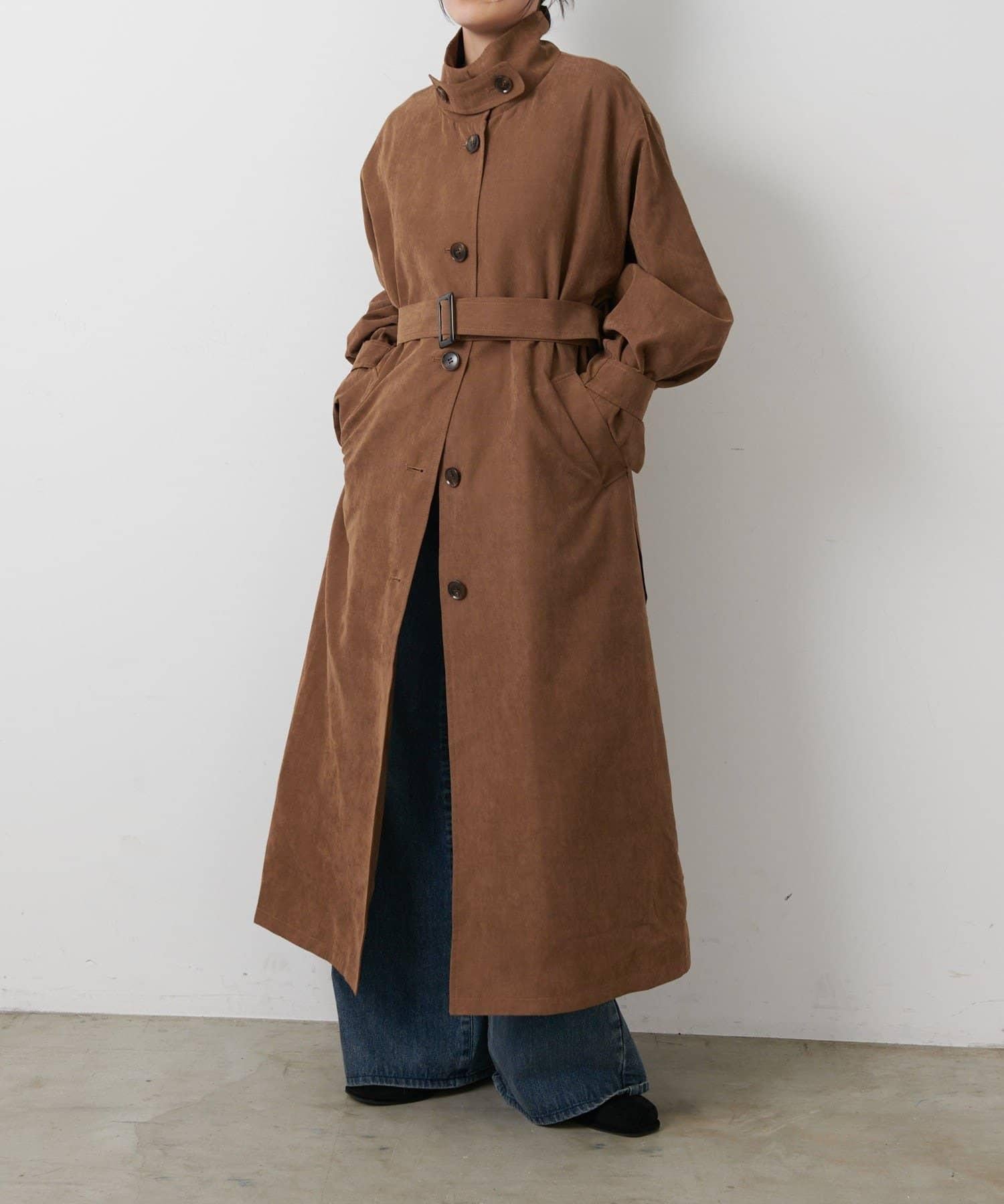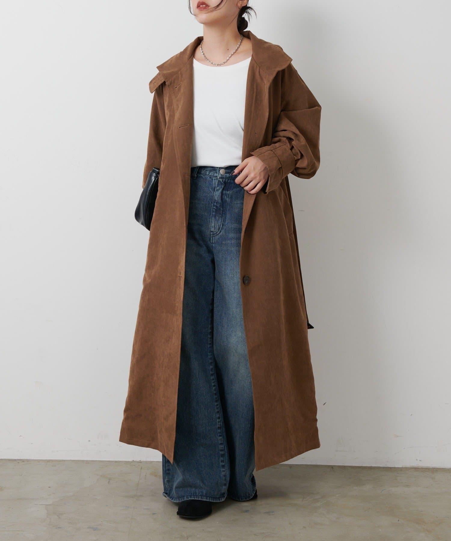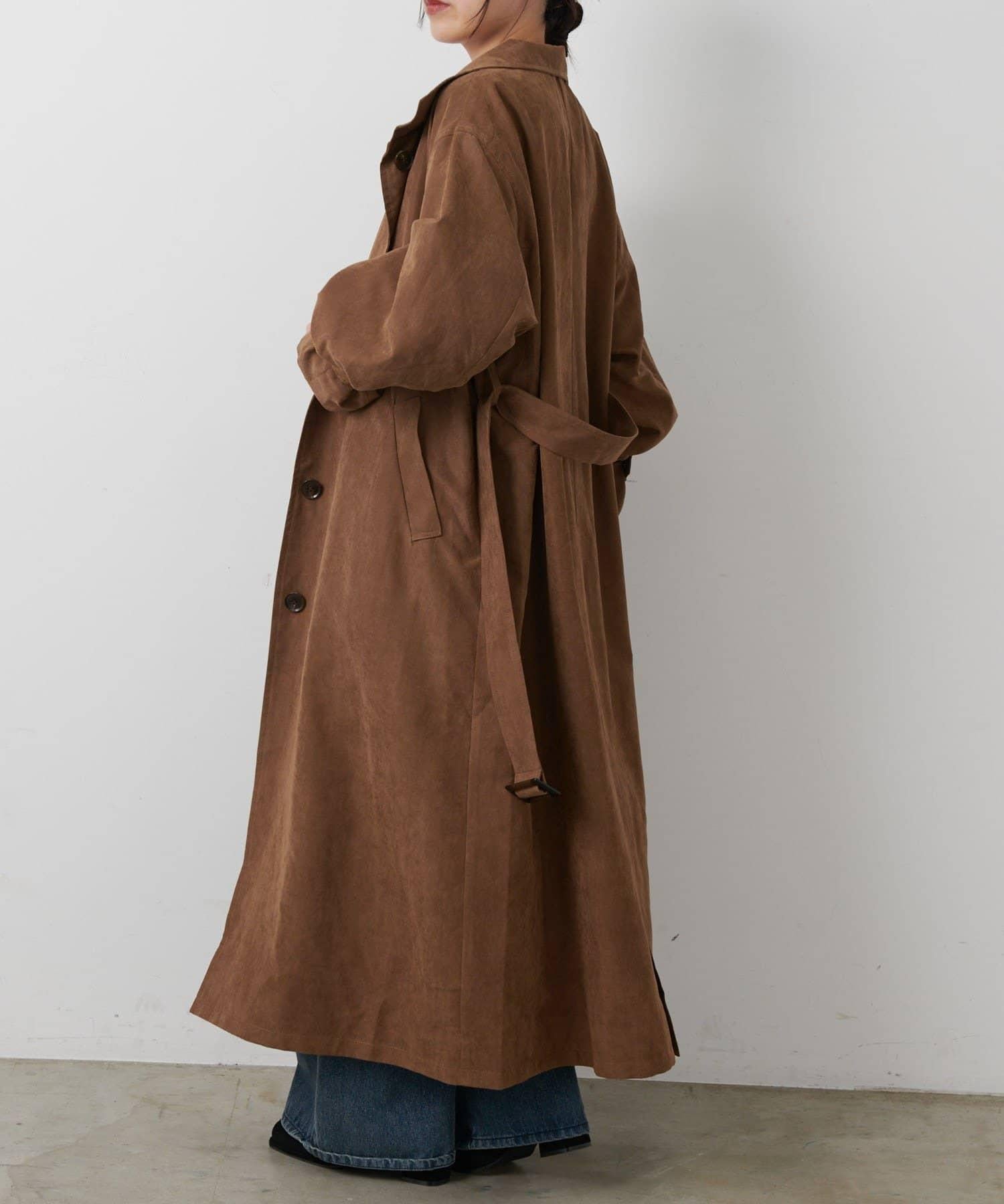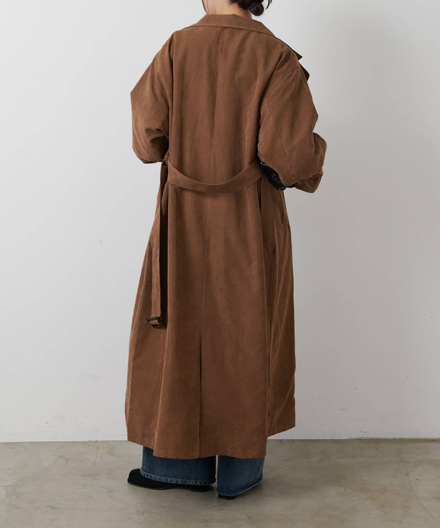 這款長款風衣採用柔軟舒適的桃皮絨面料製成。
