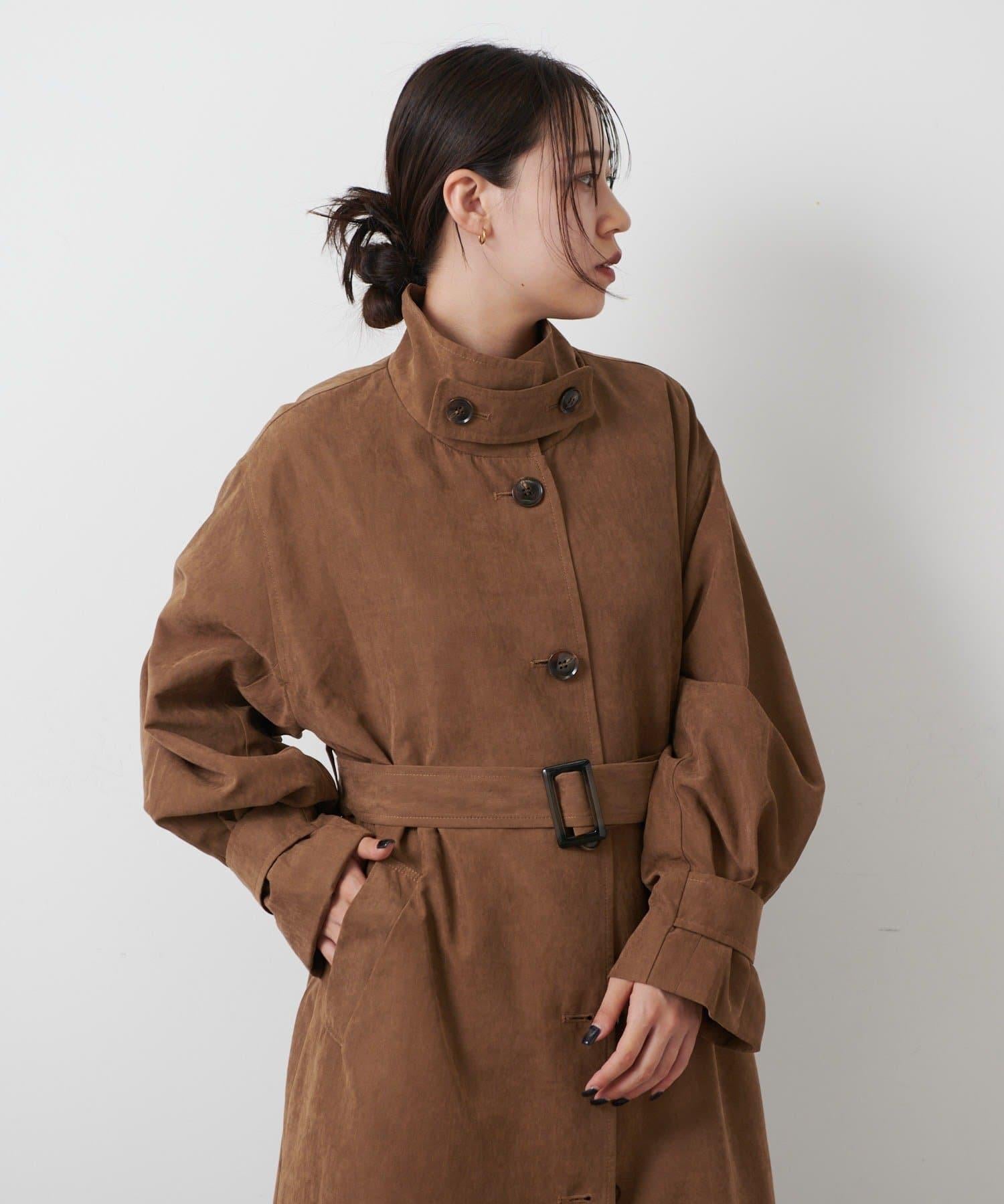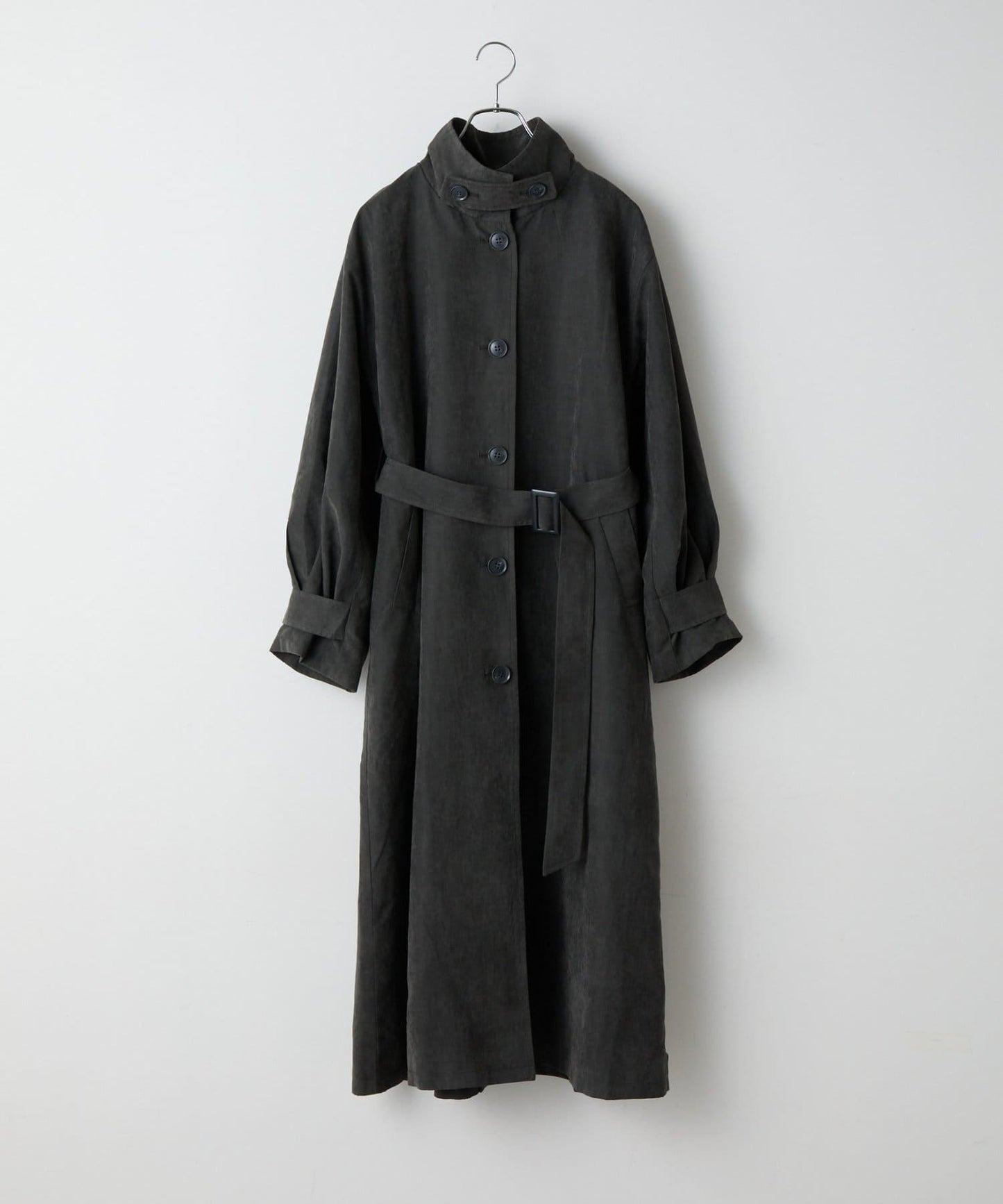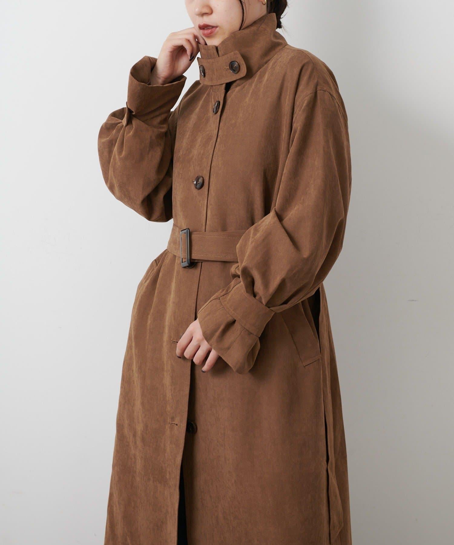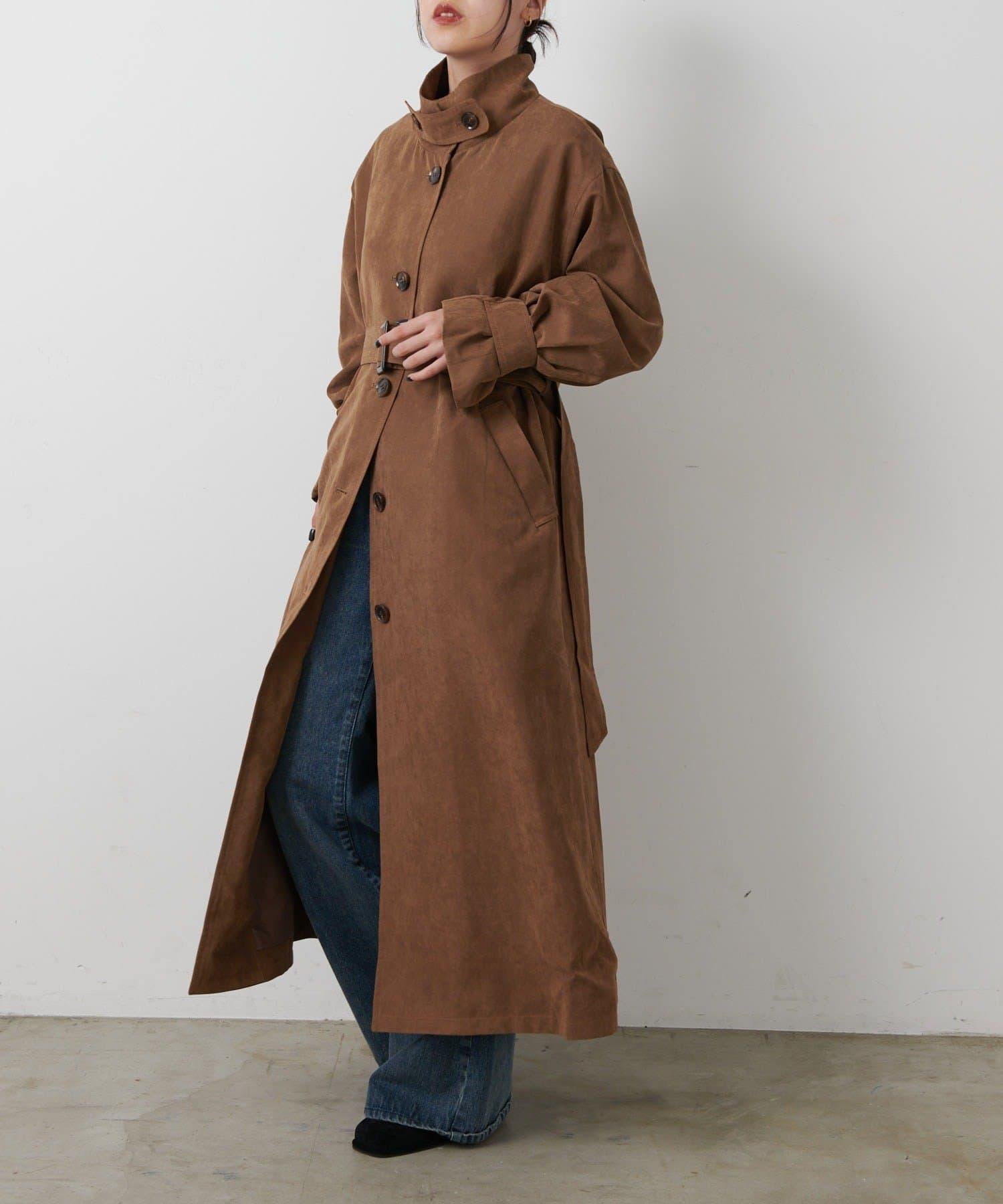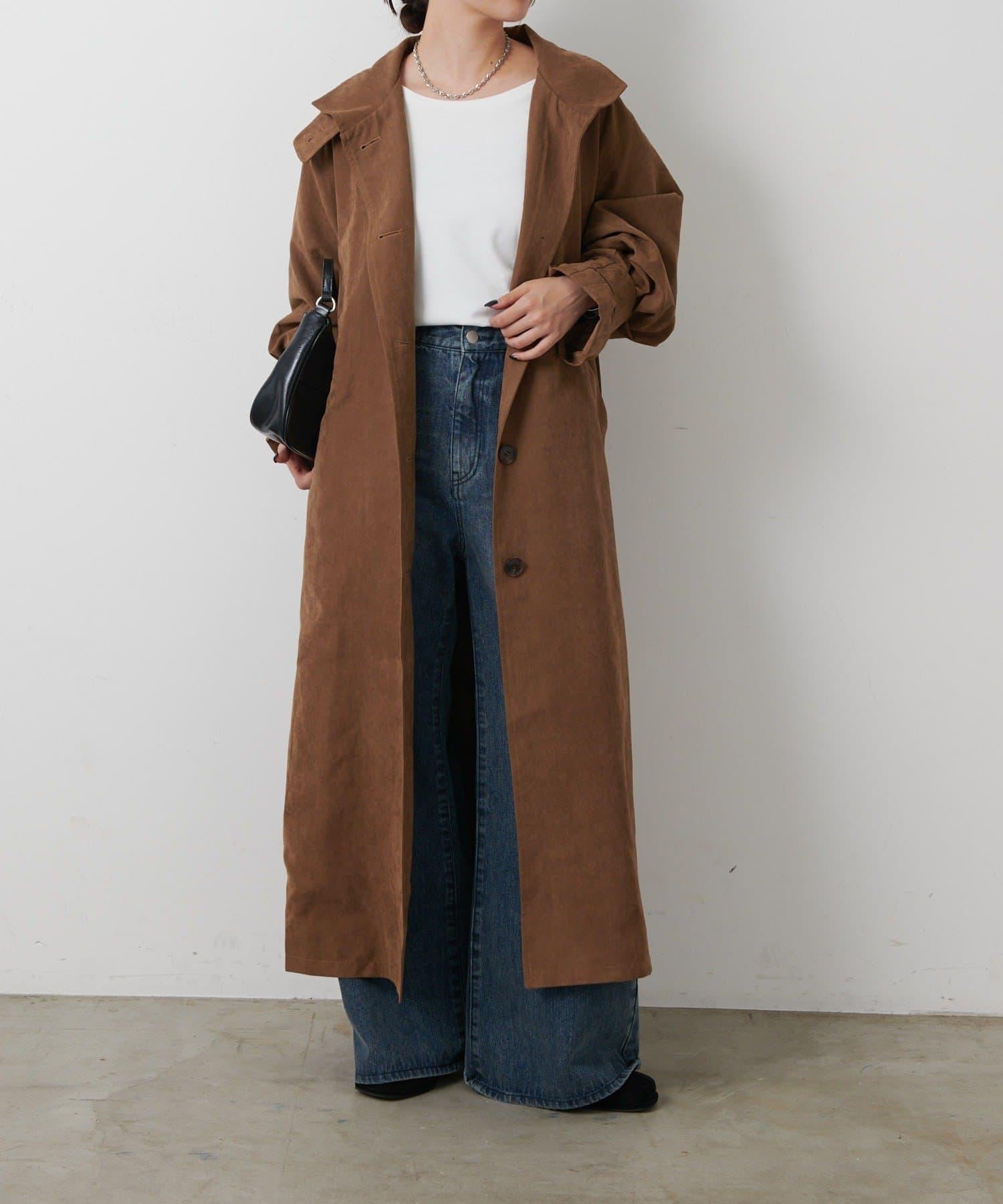 這款長款風衣採用柔軟舒適的桃皮絨面料製成。