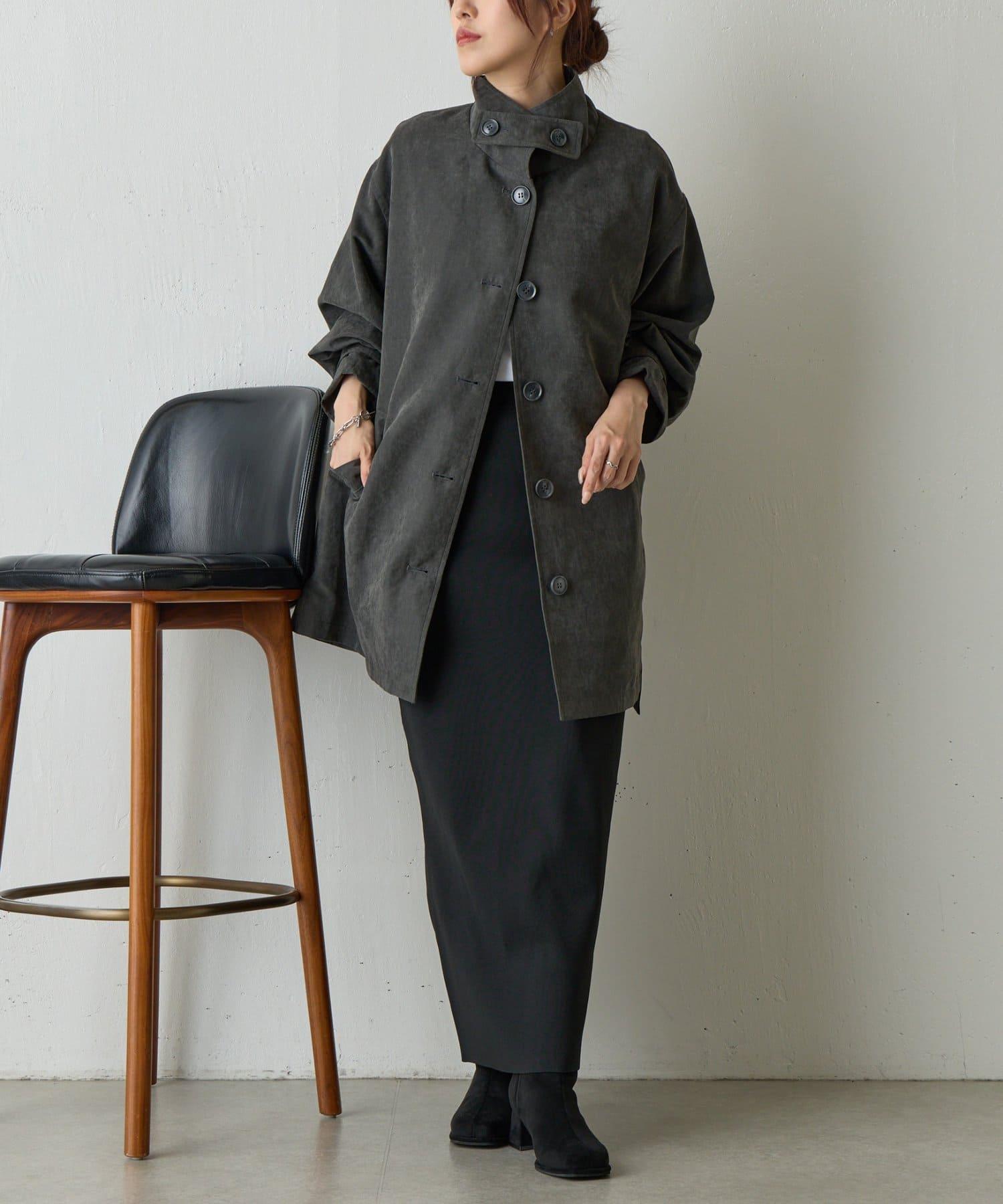 長度屬於中長款,能很好地遮住臀部,所以無論是搭配長褲還是裙子都能很好地兼顧,垂直效果的整潔感也是很好的一點◎。