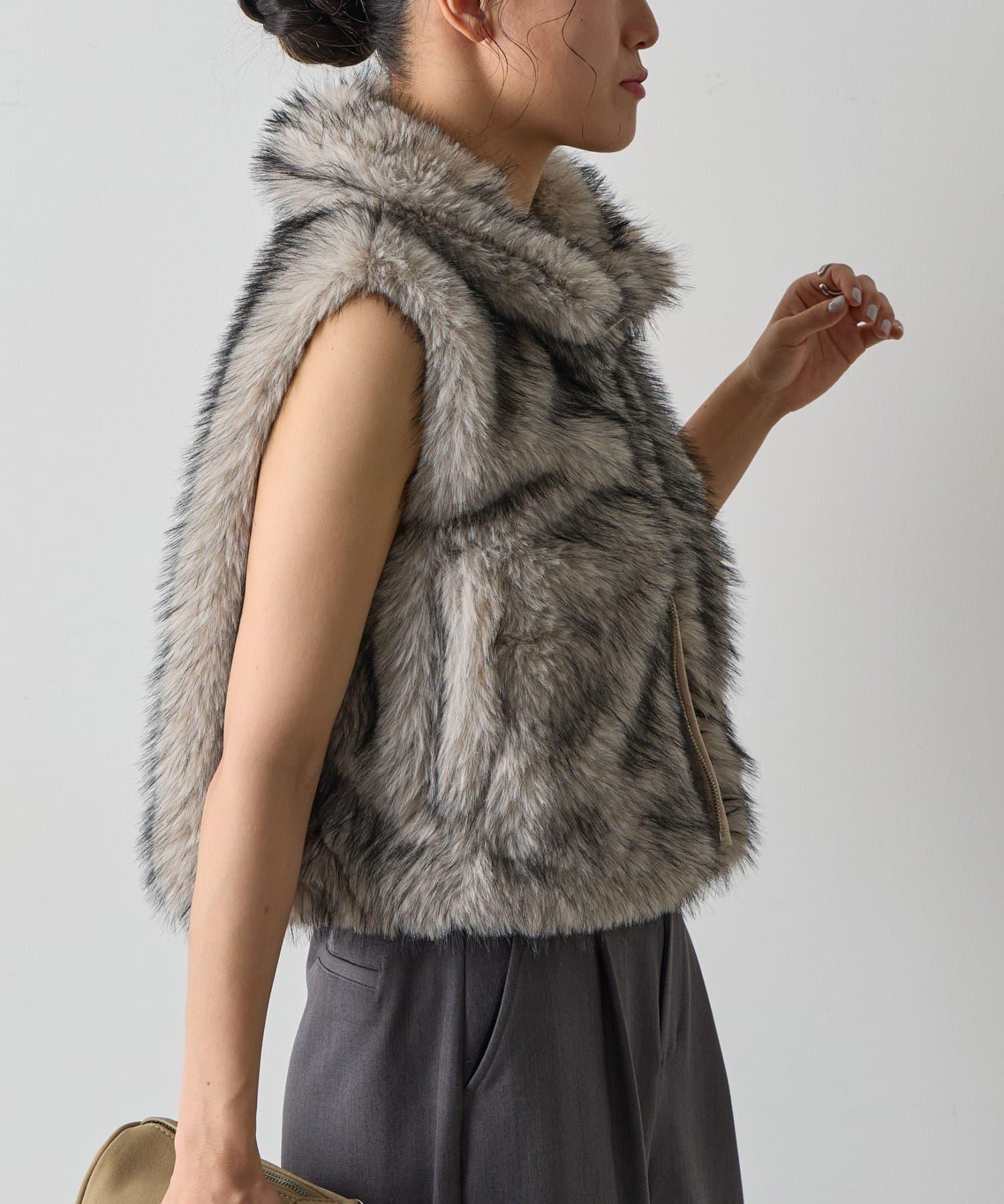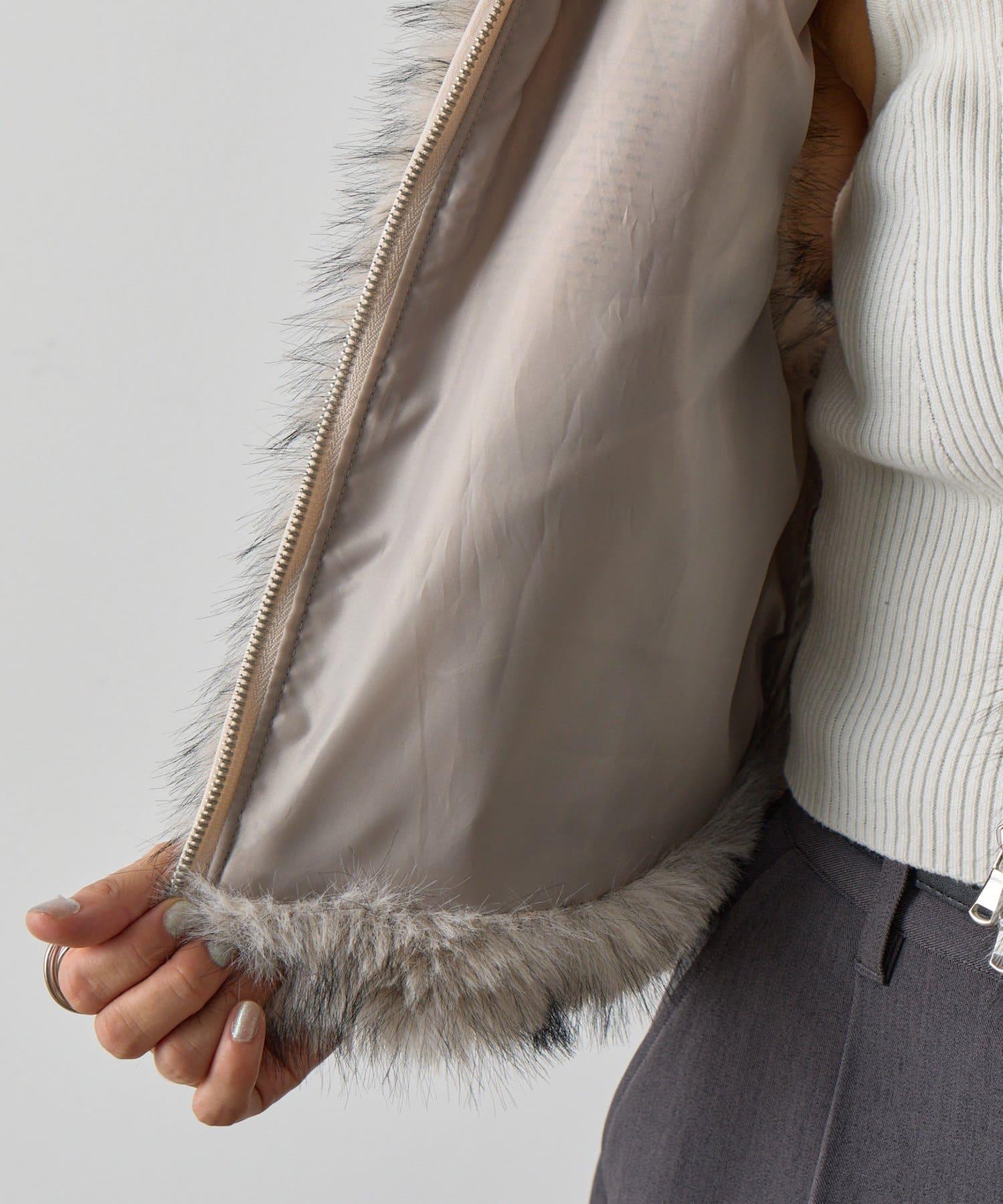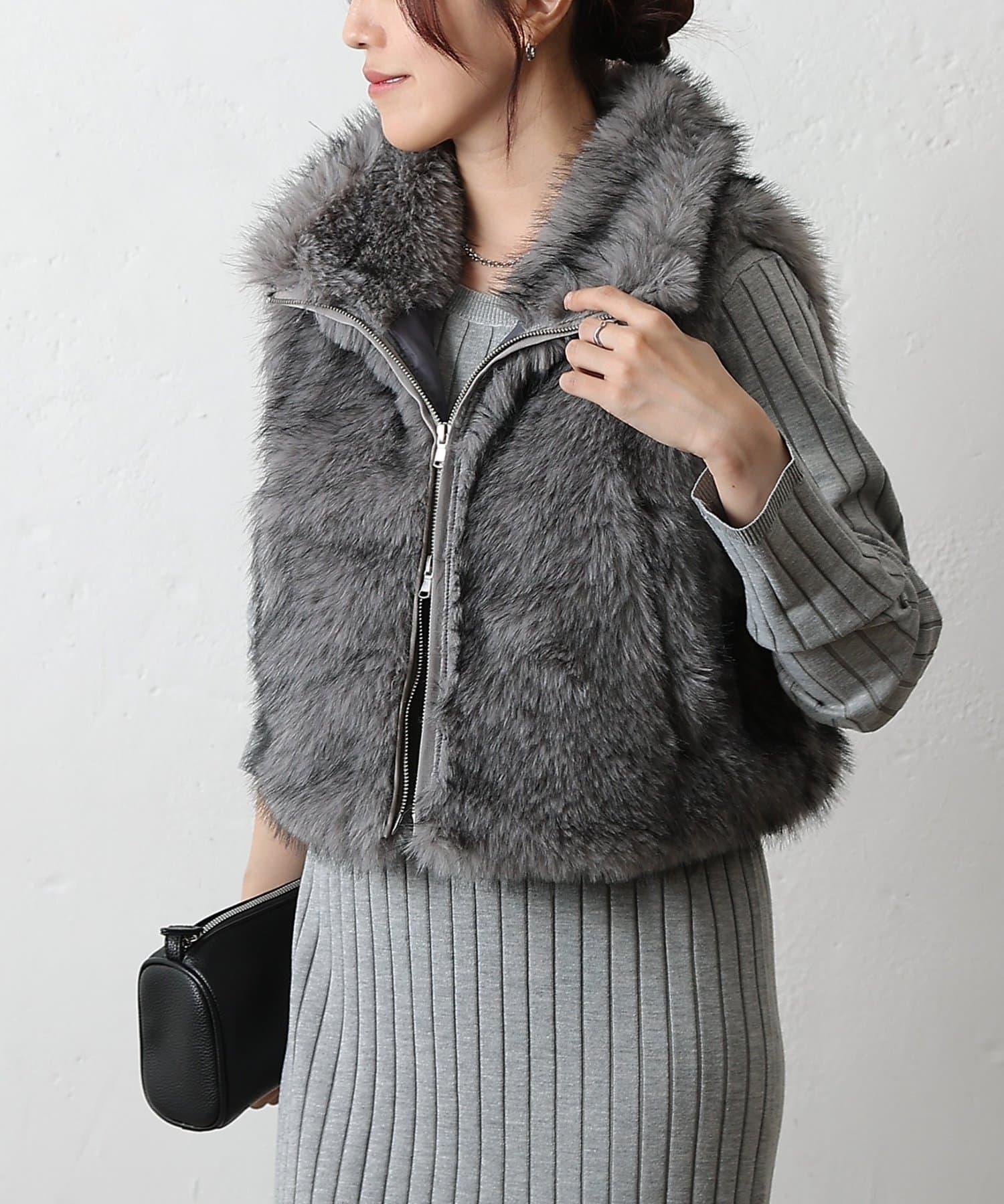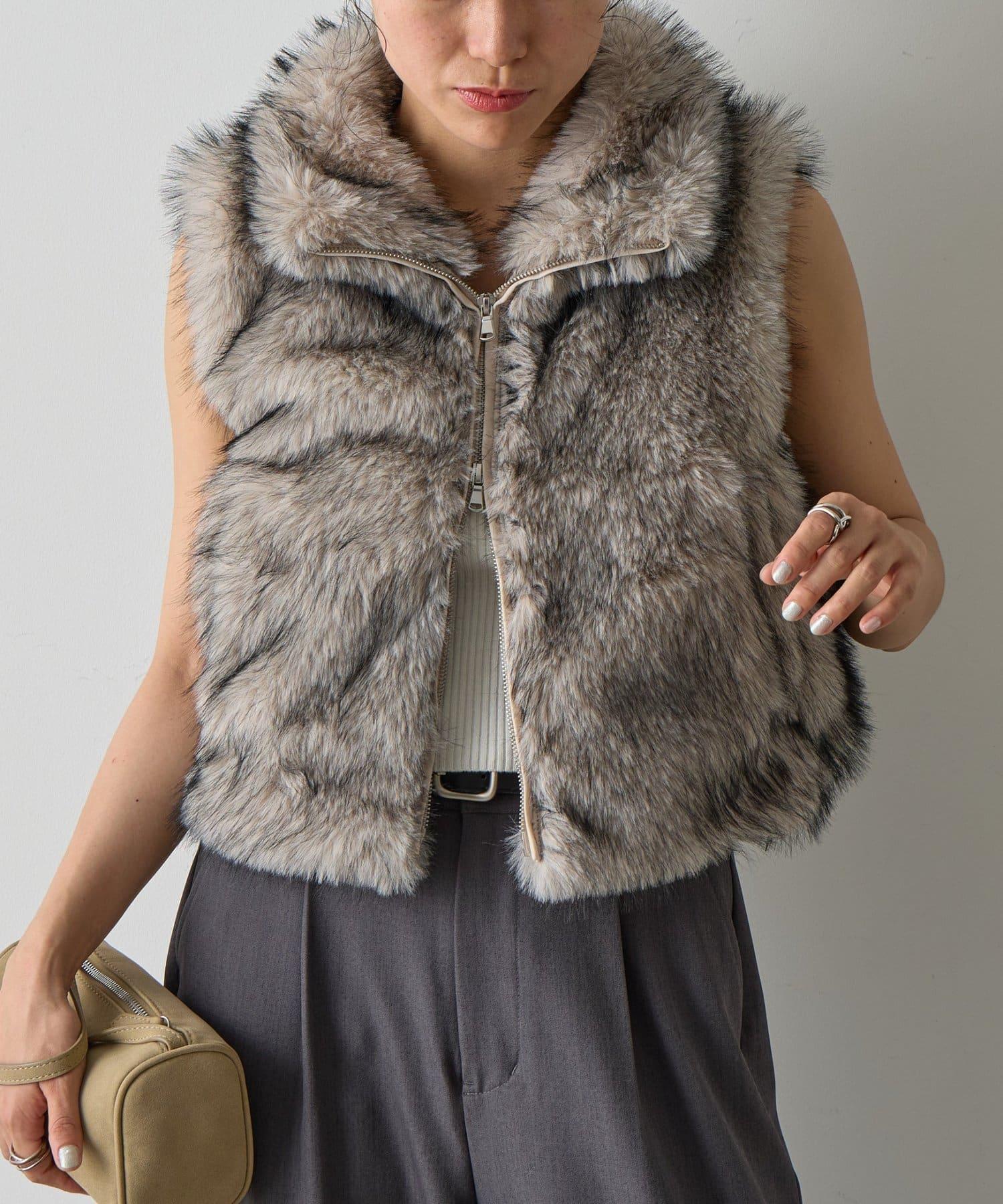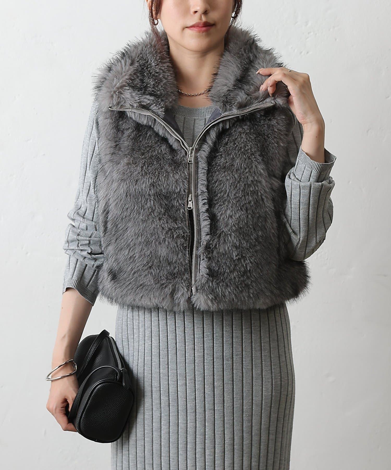 混合羊皮毛皮的拉鍊馬甲,給人豐富而精緻的混合毛皮印象,富有層次感。