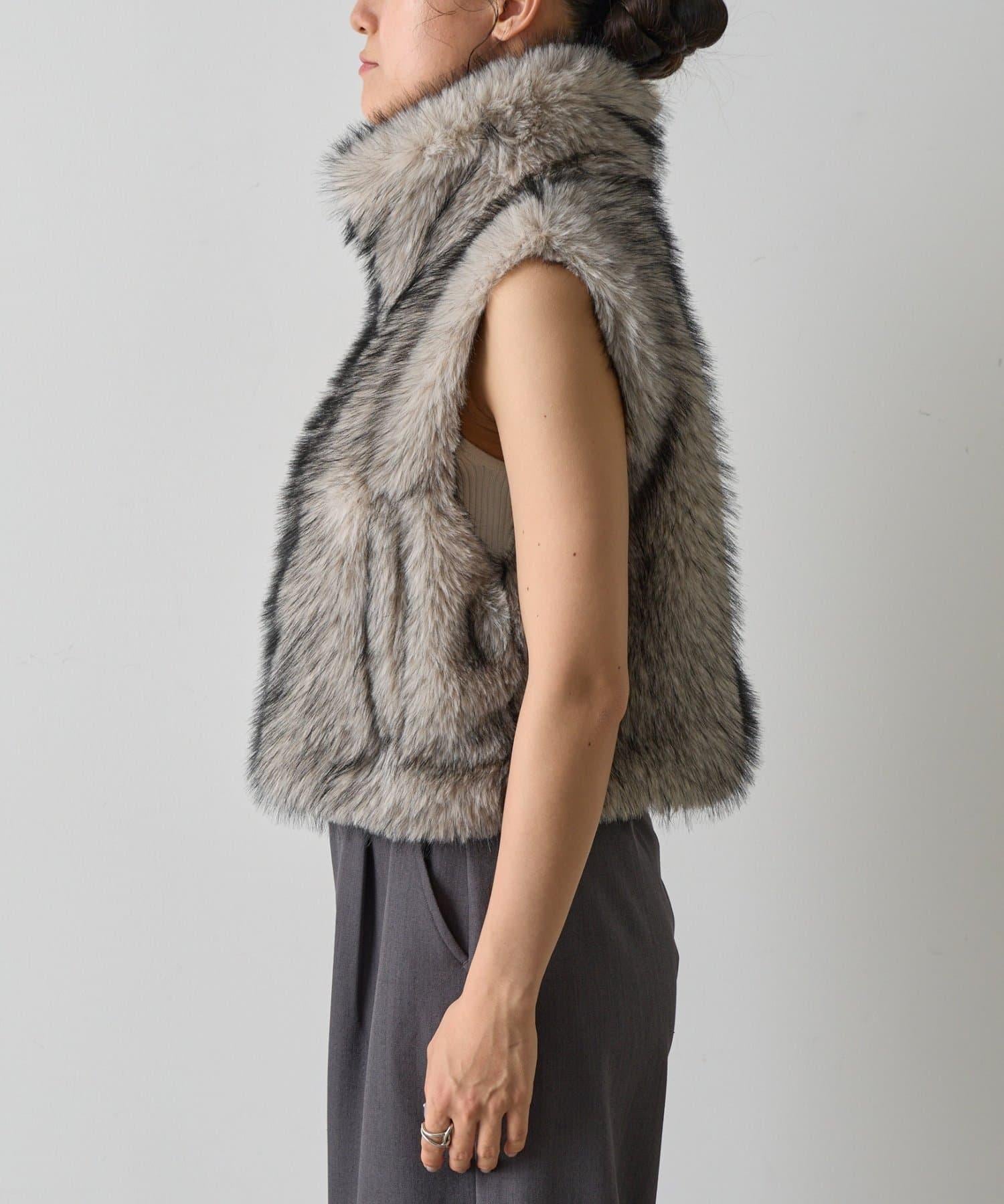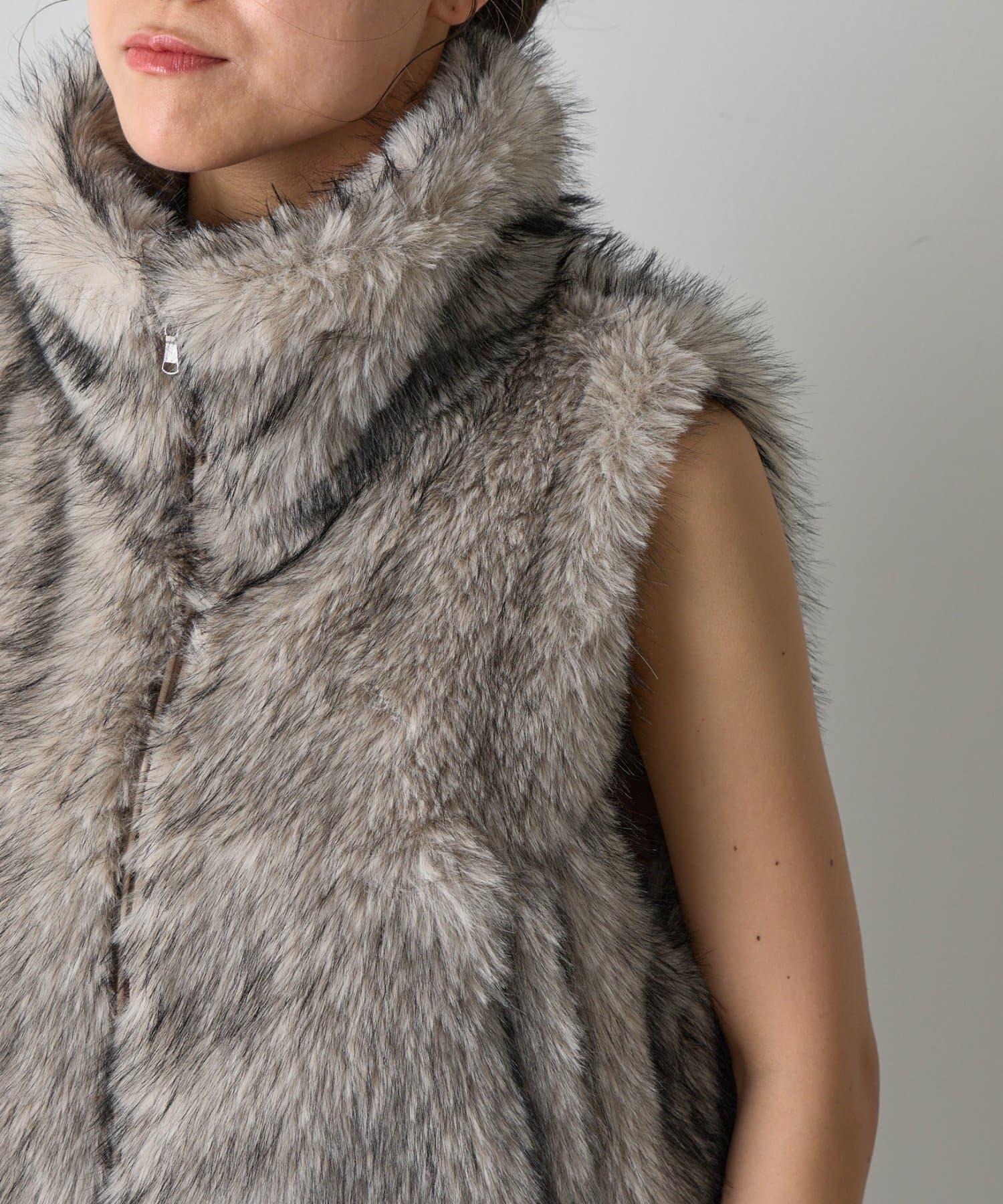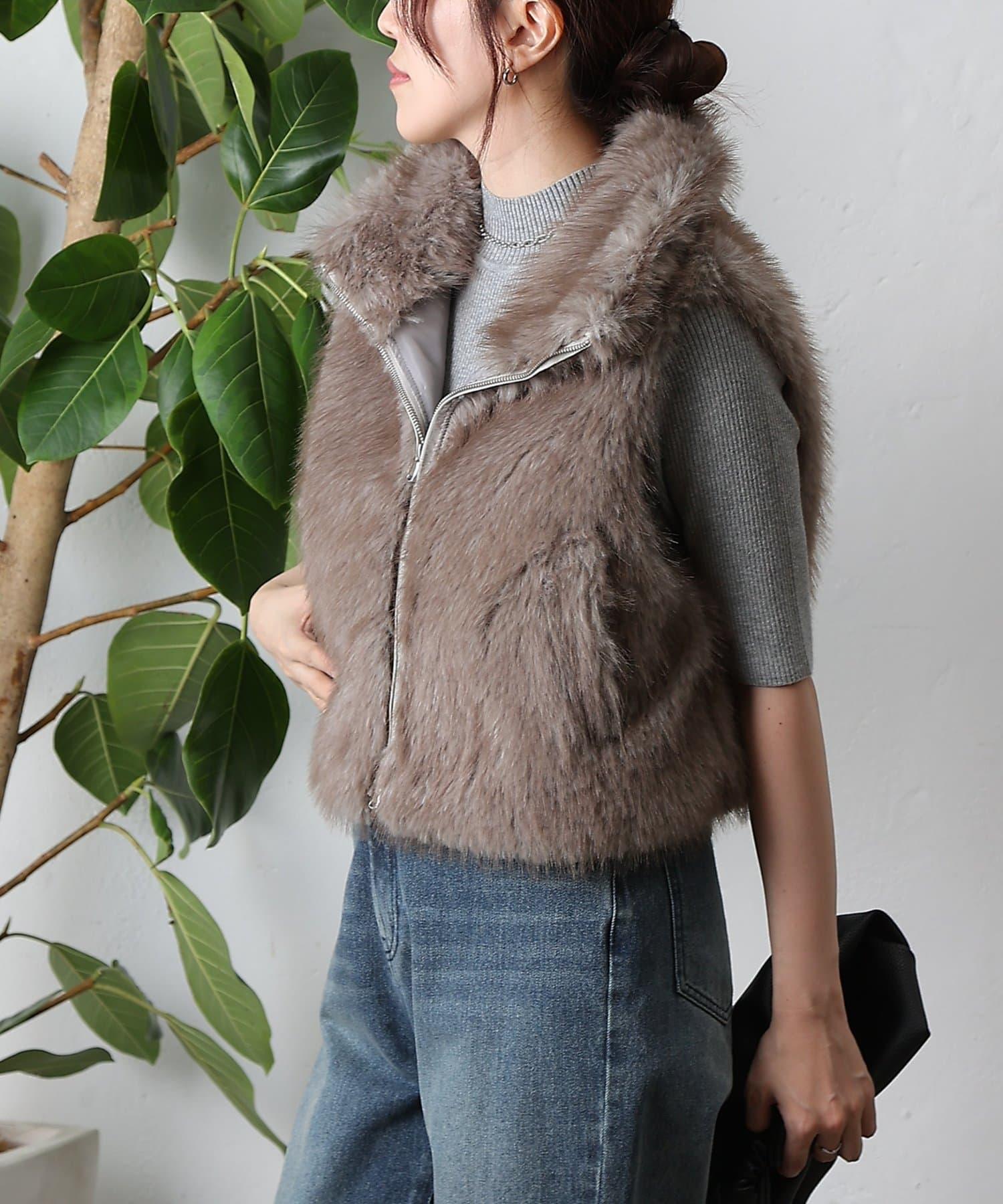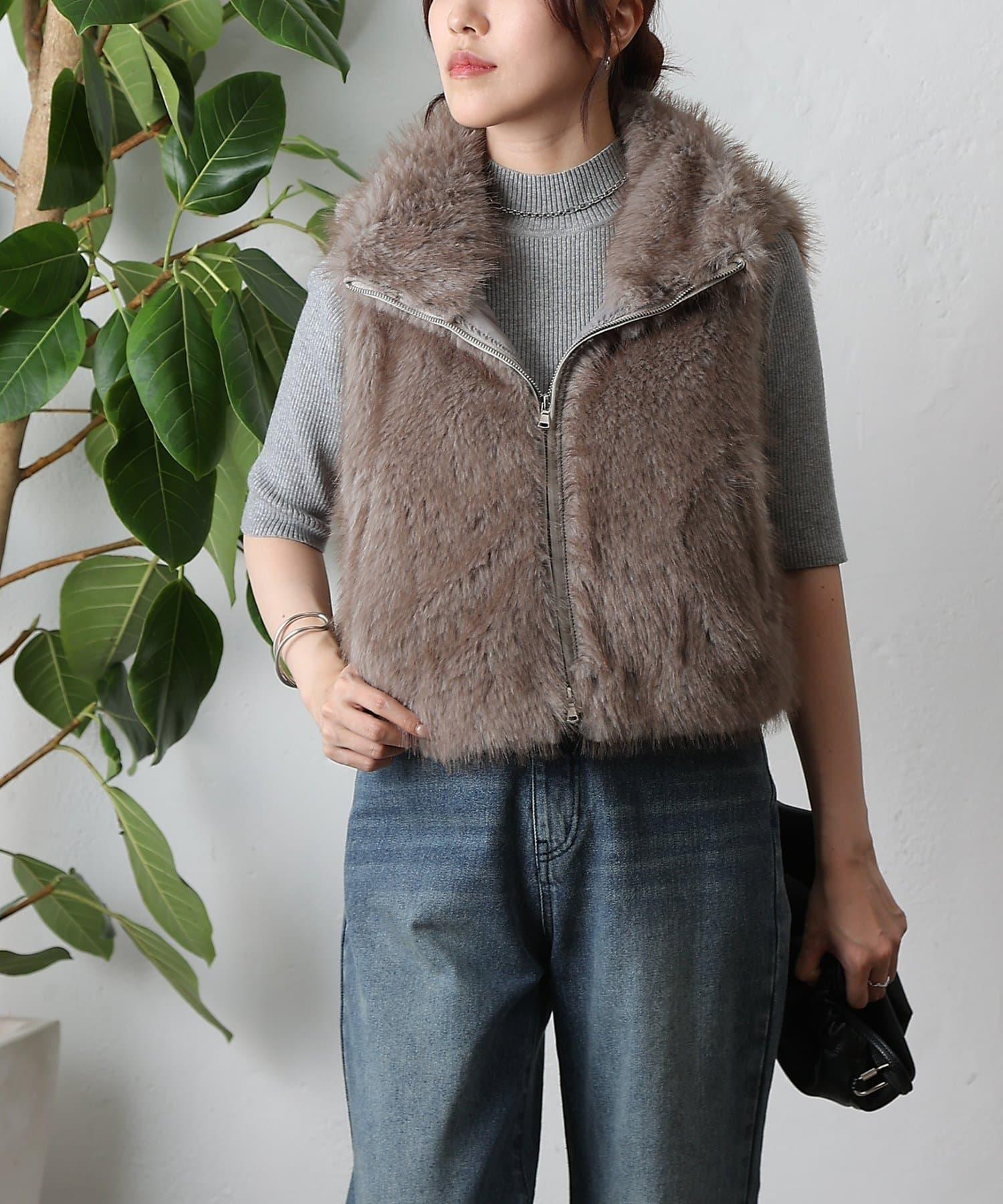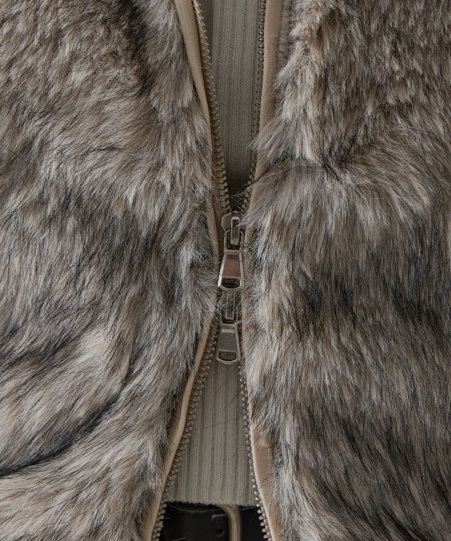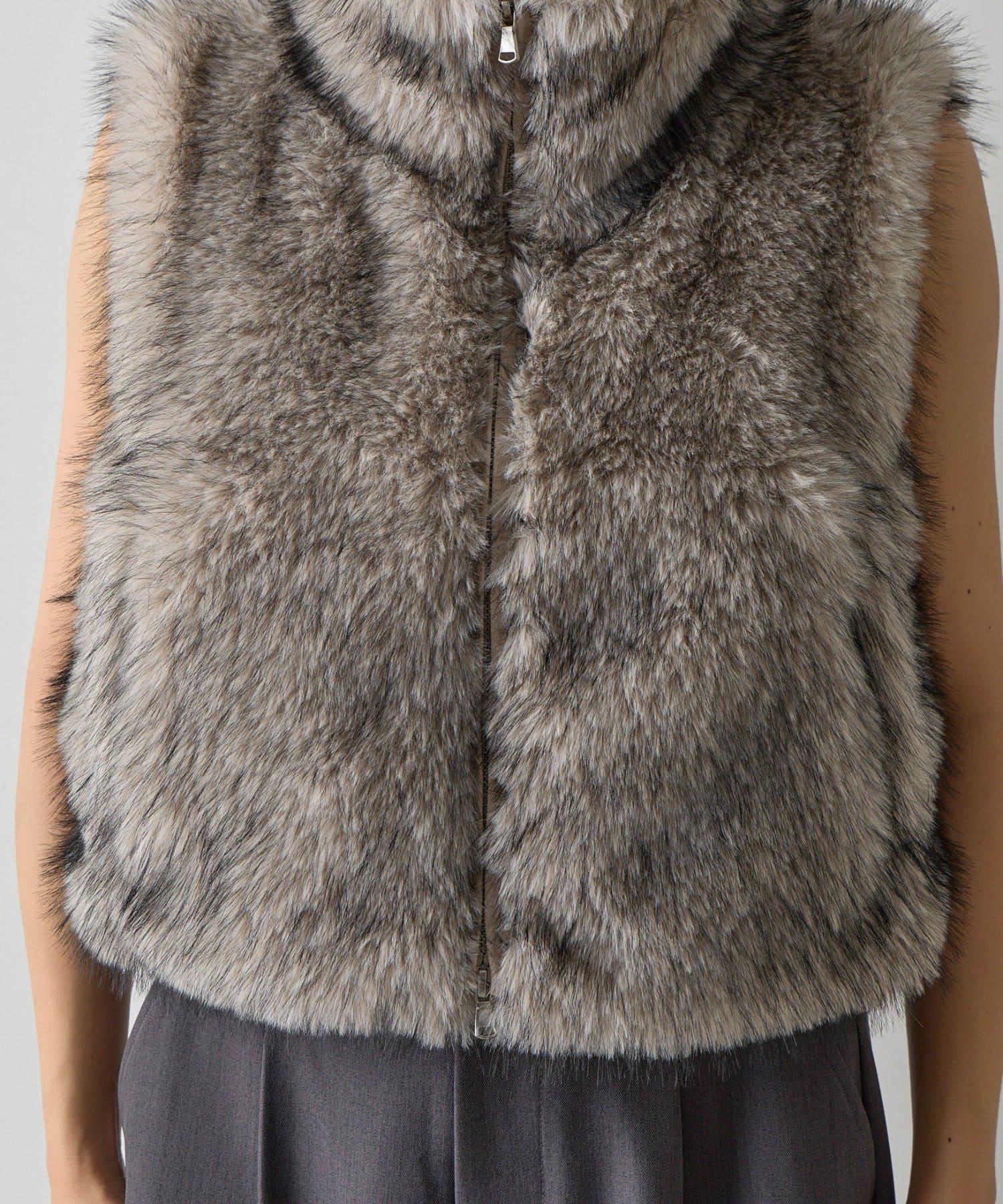 混合羊皮毛皮的拉鍊馬甲,給人豐富而精緻的混合毛皮印象,富有層次感。