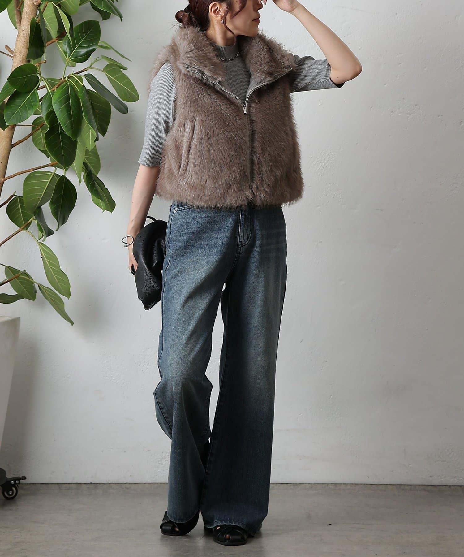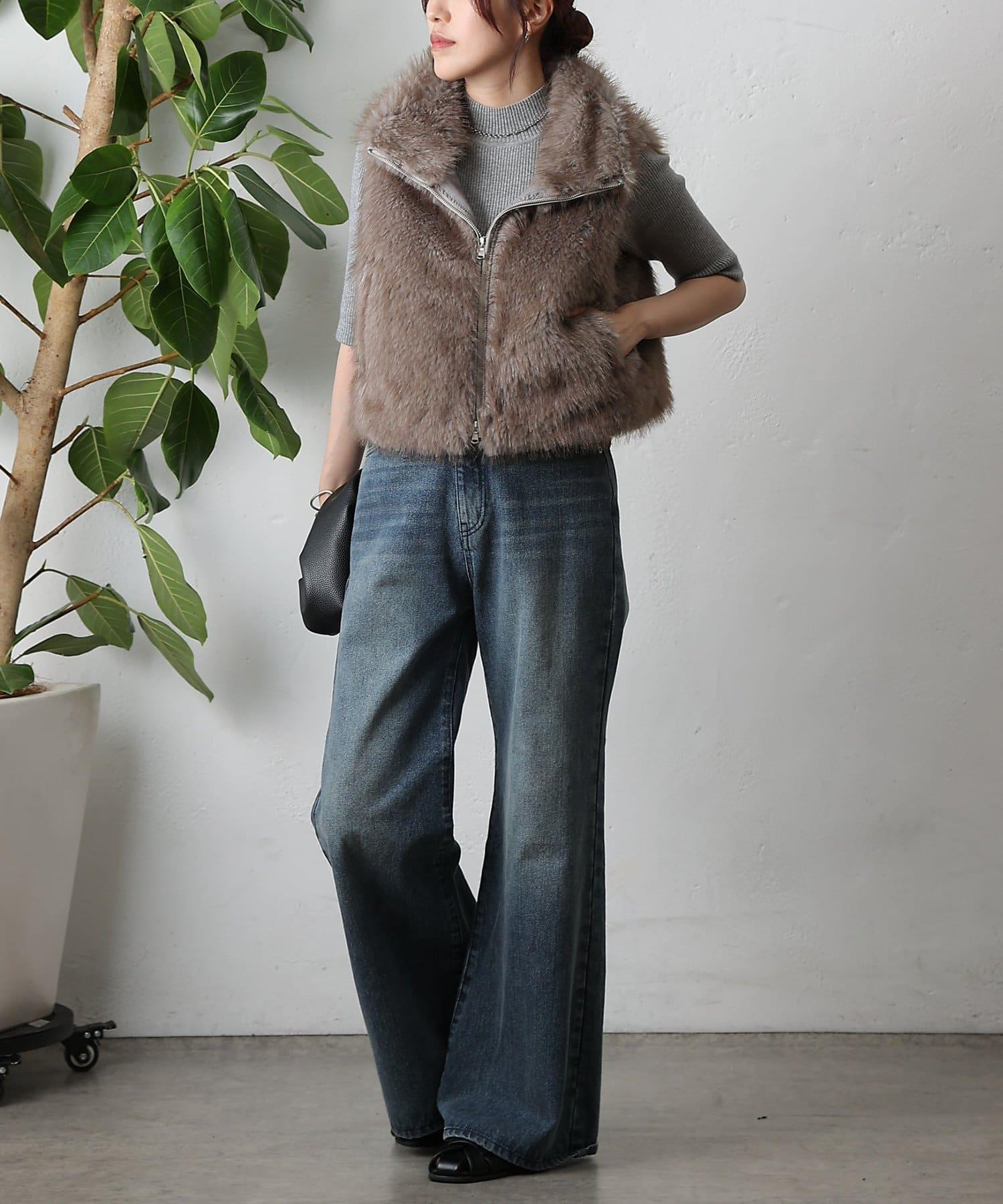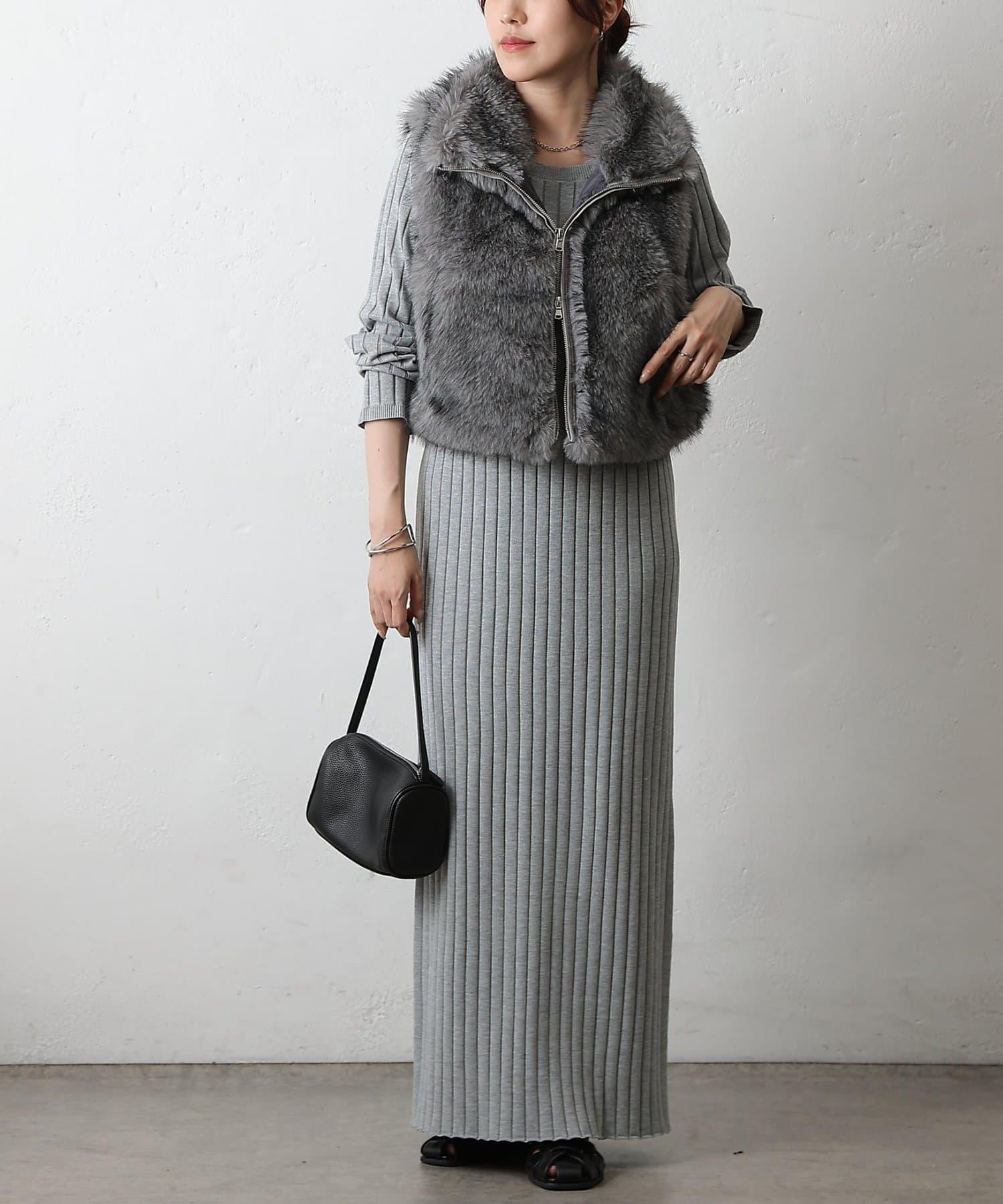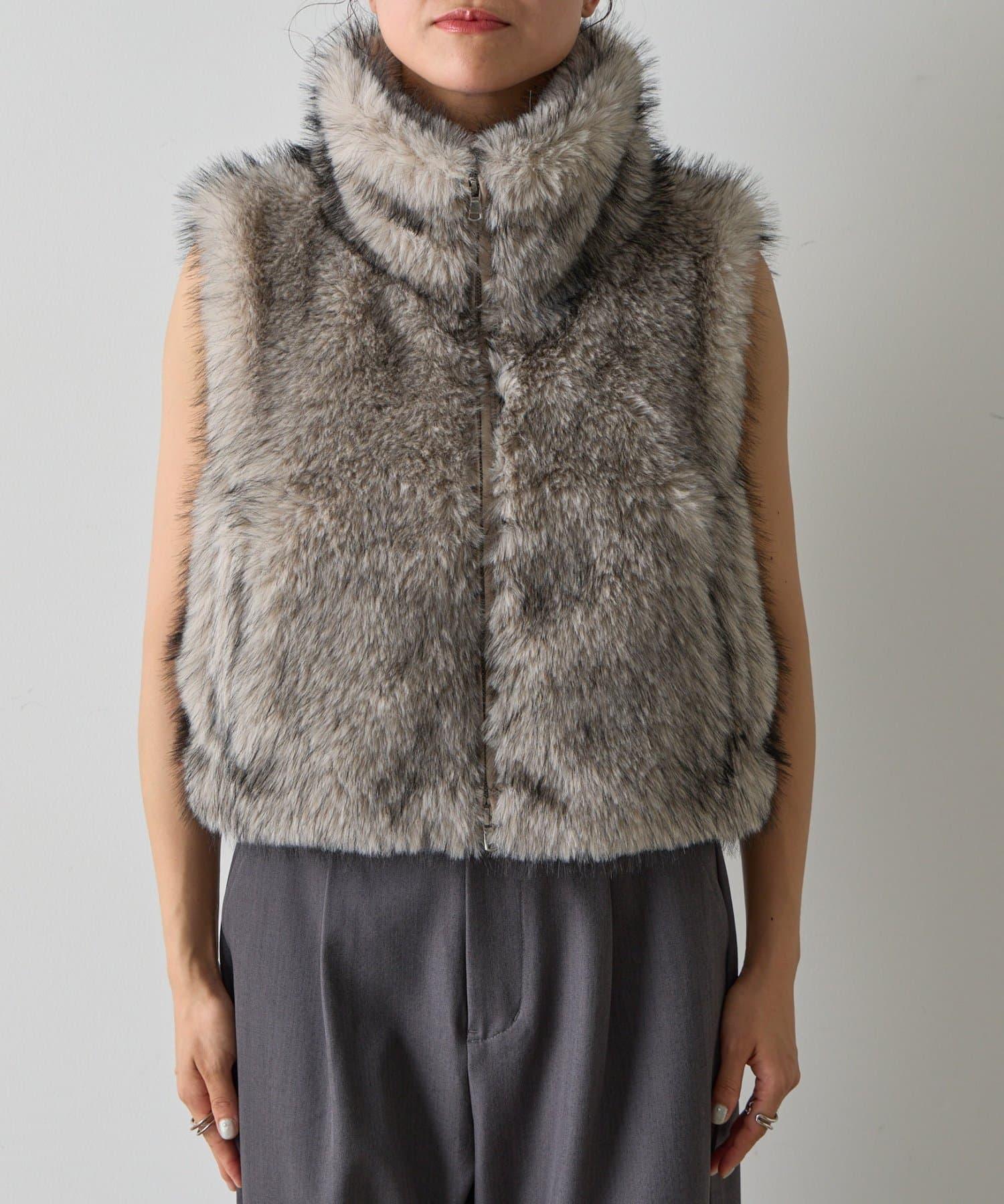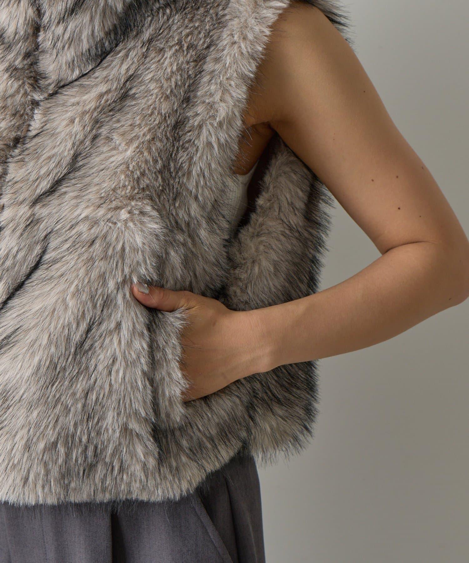 混合羊皮毛皮的拉鍊馬甲,給人豐富而精緻的混合毛皮印象,富有層次感。