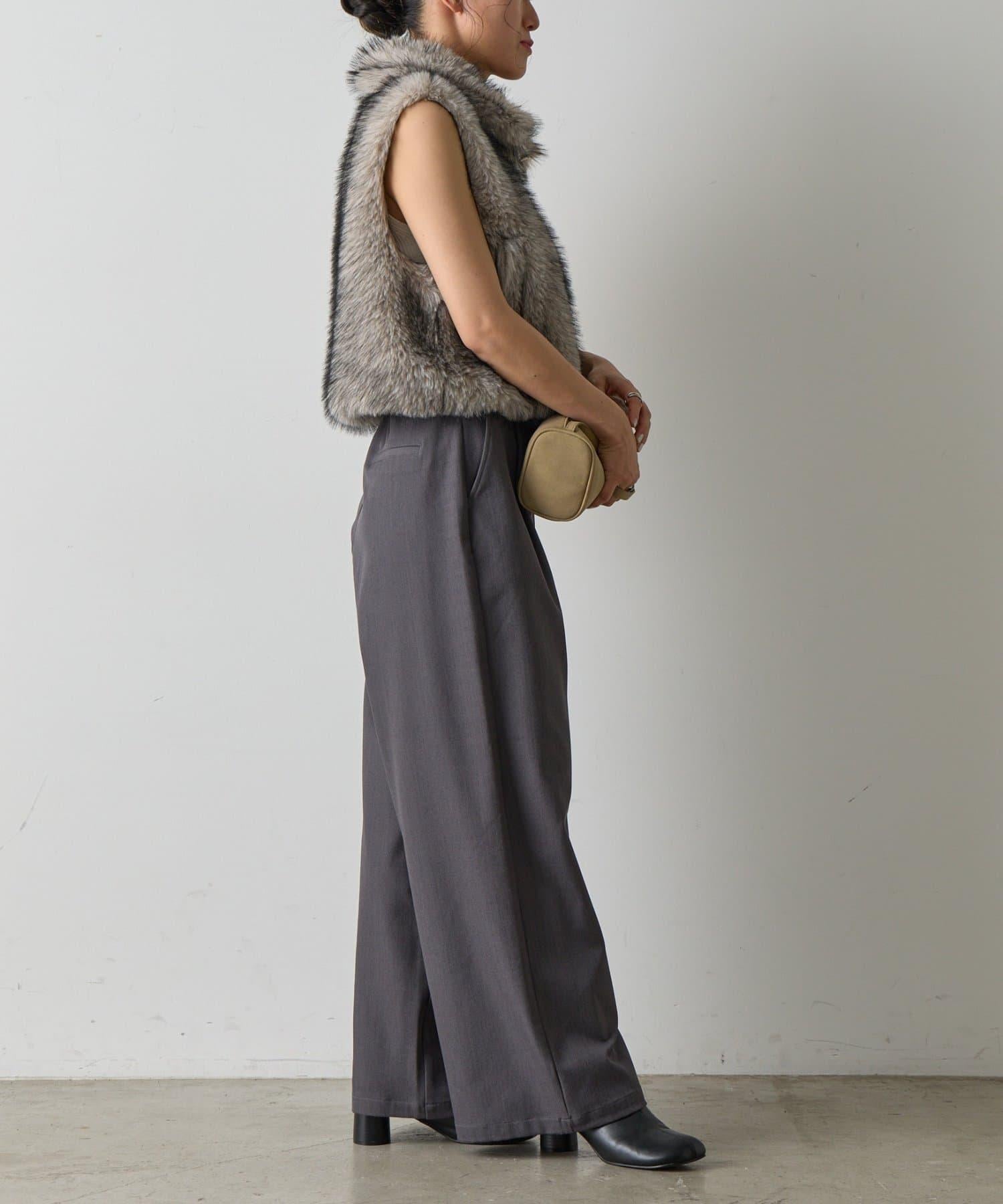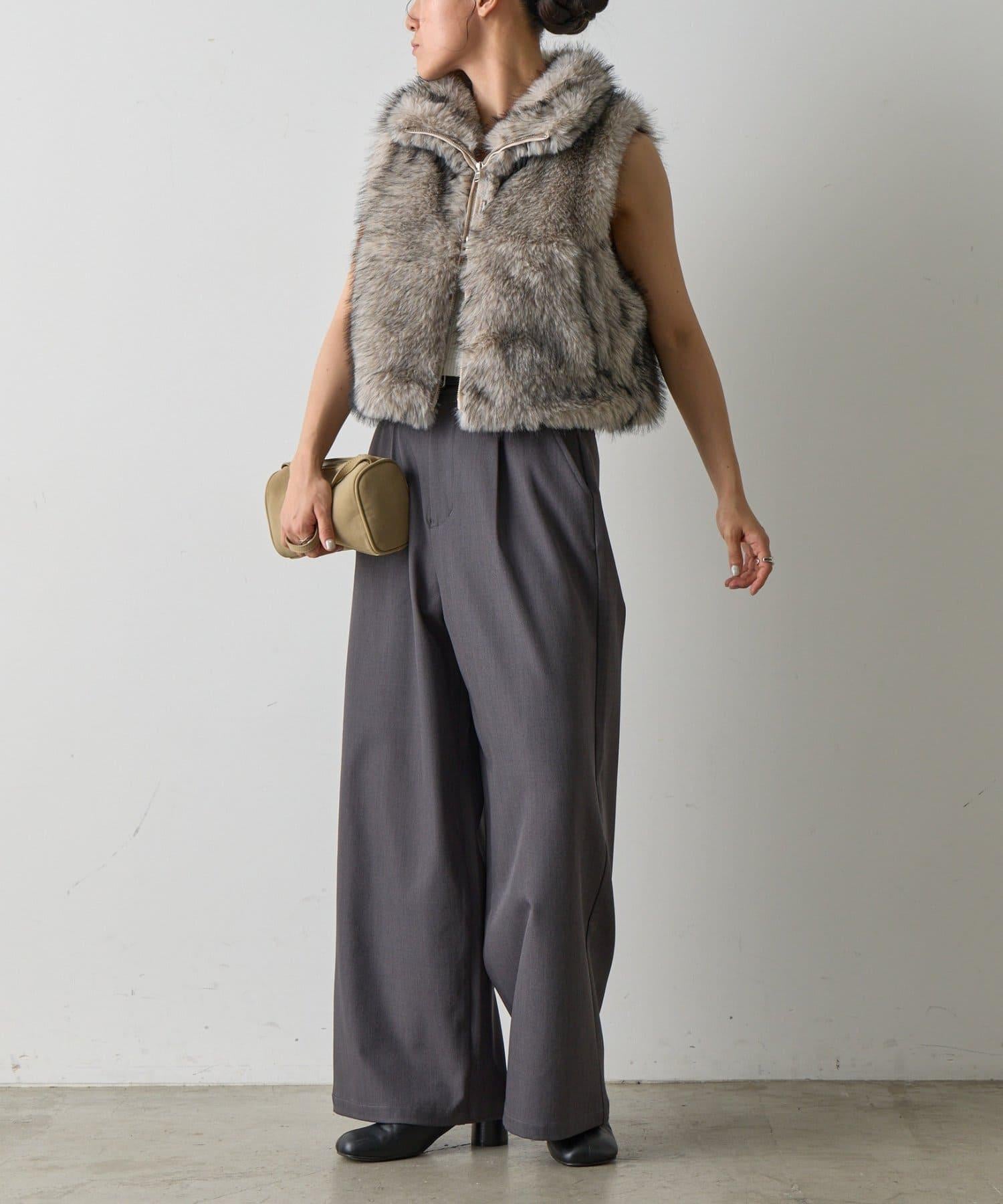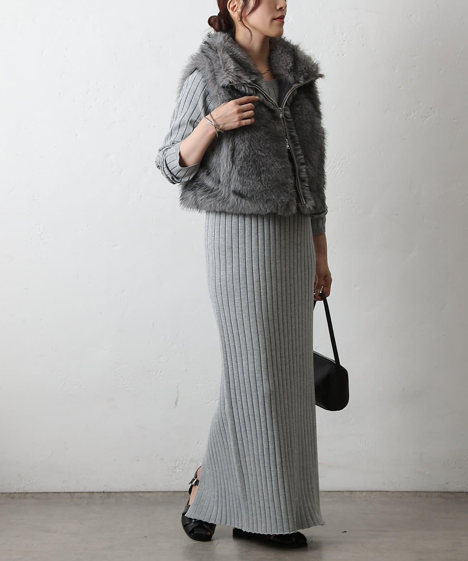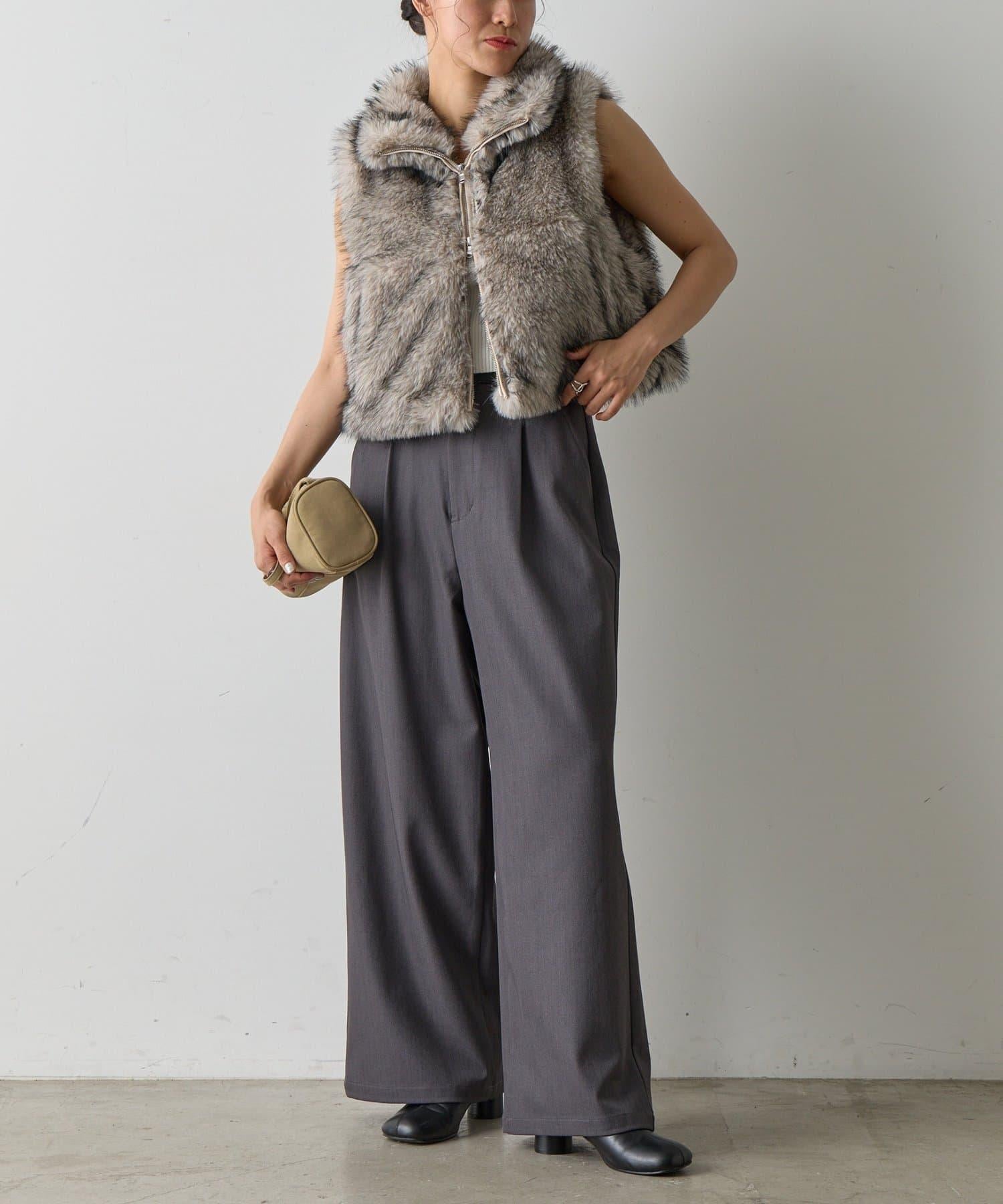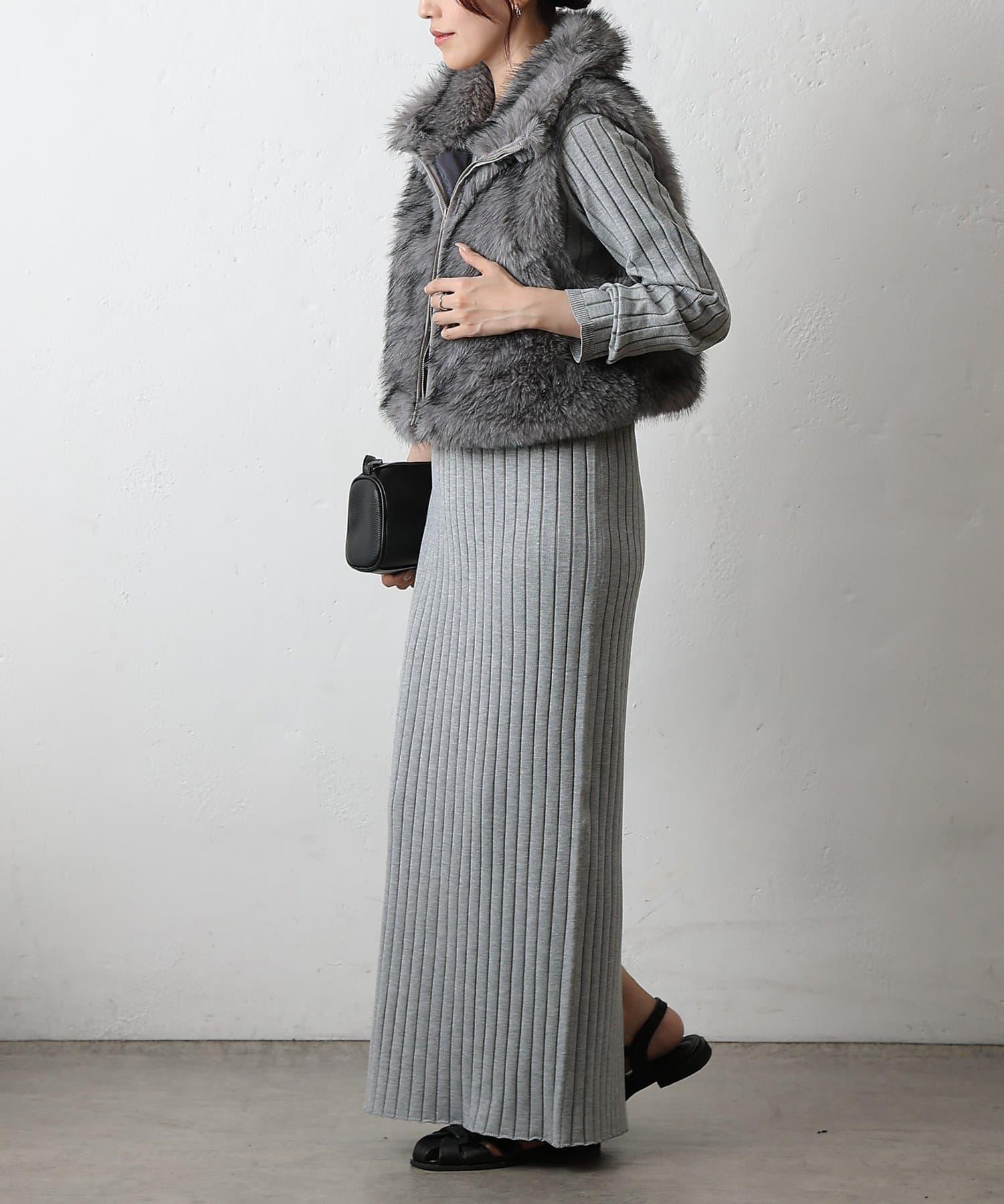 混合羊皮毛皮的拉鍊馬甲,給人豐富而精緻的混合毛皮印象,富有層次感。