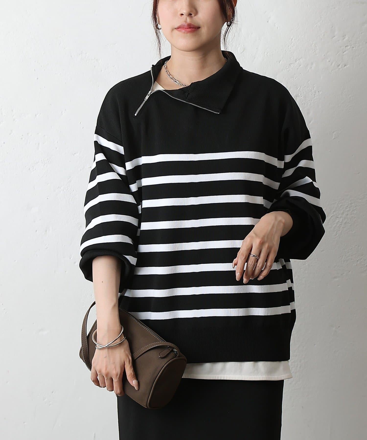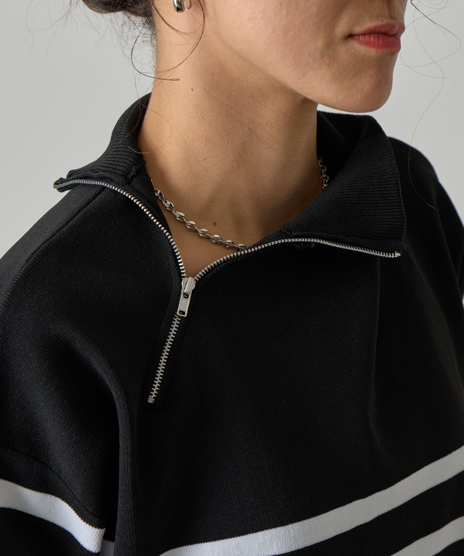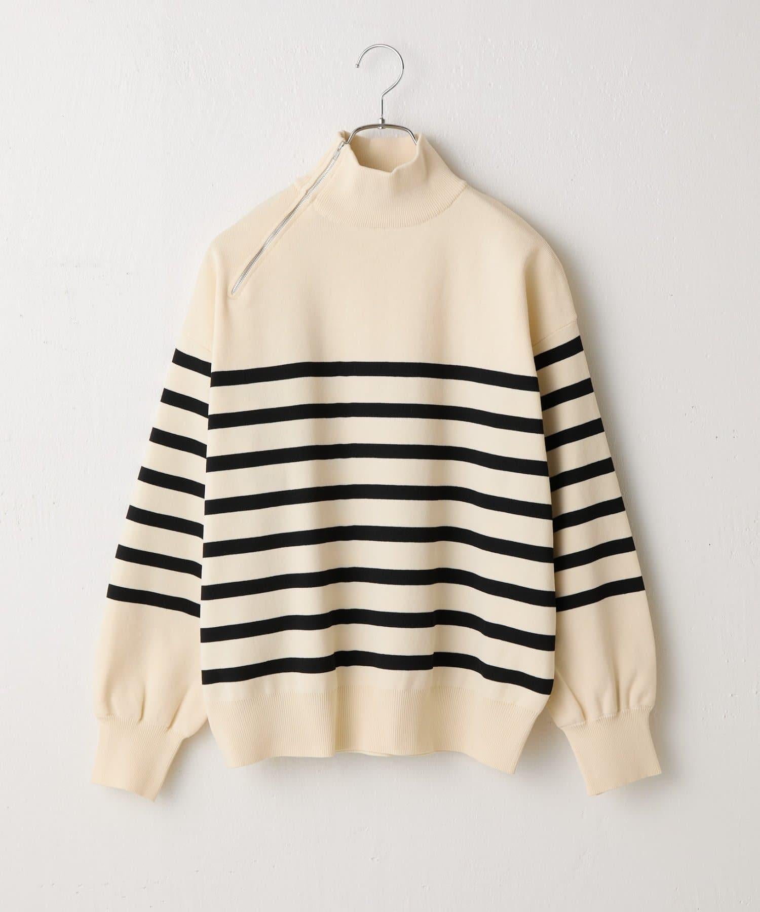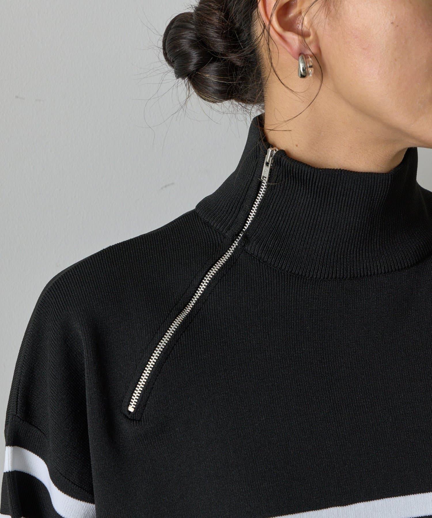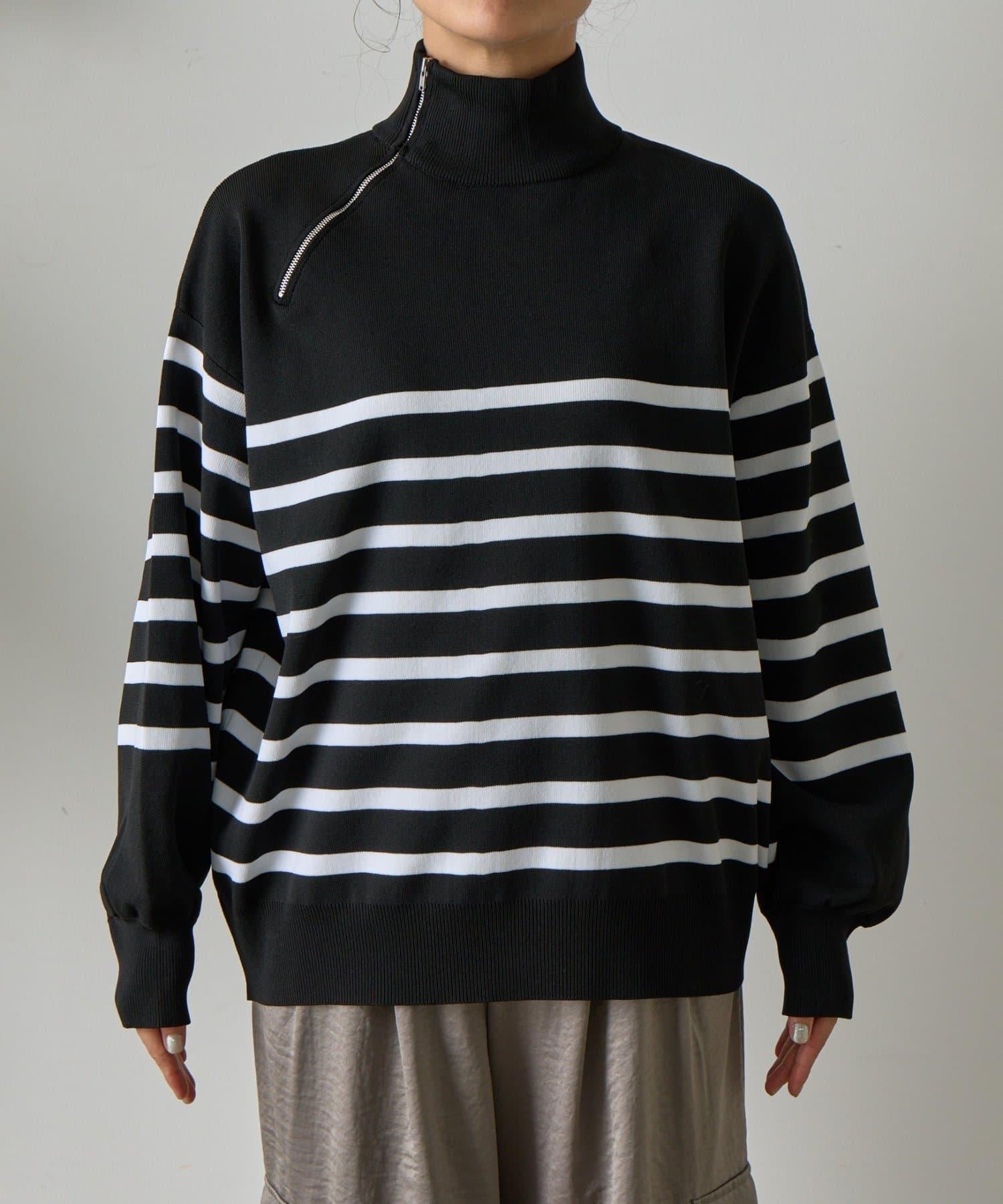 【AW】滌綸紗側頸拉鍊條紋針織衫