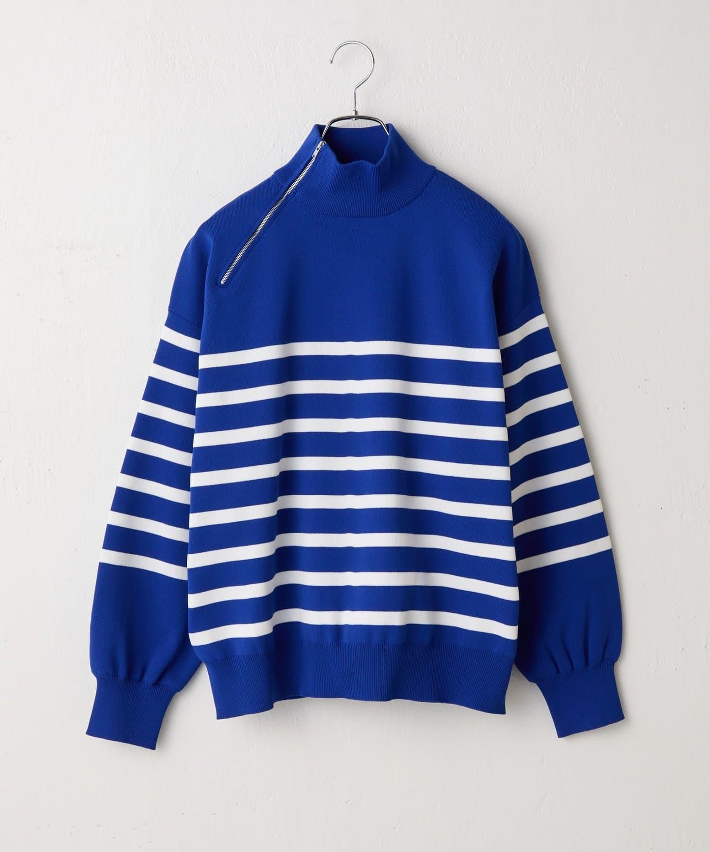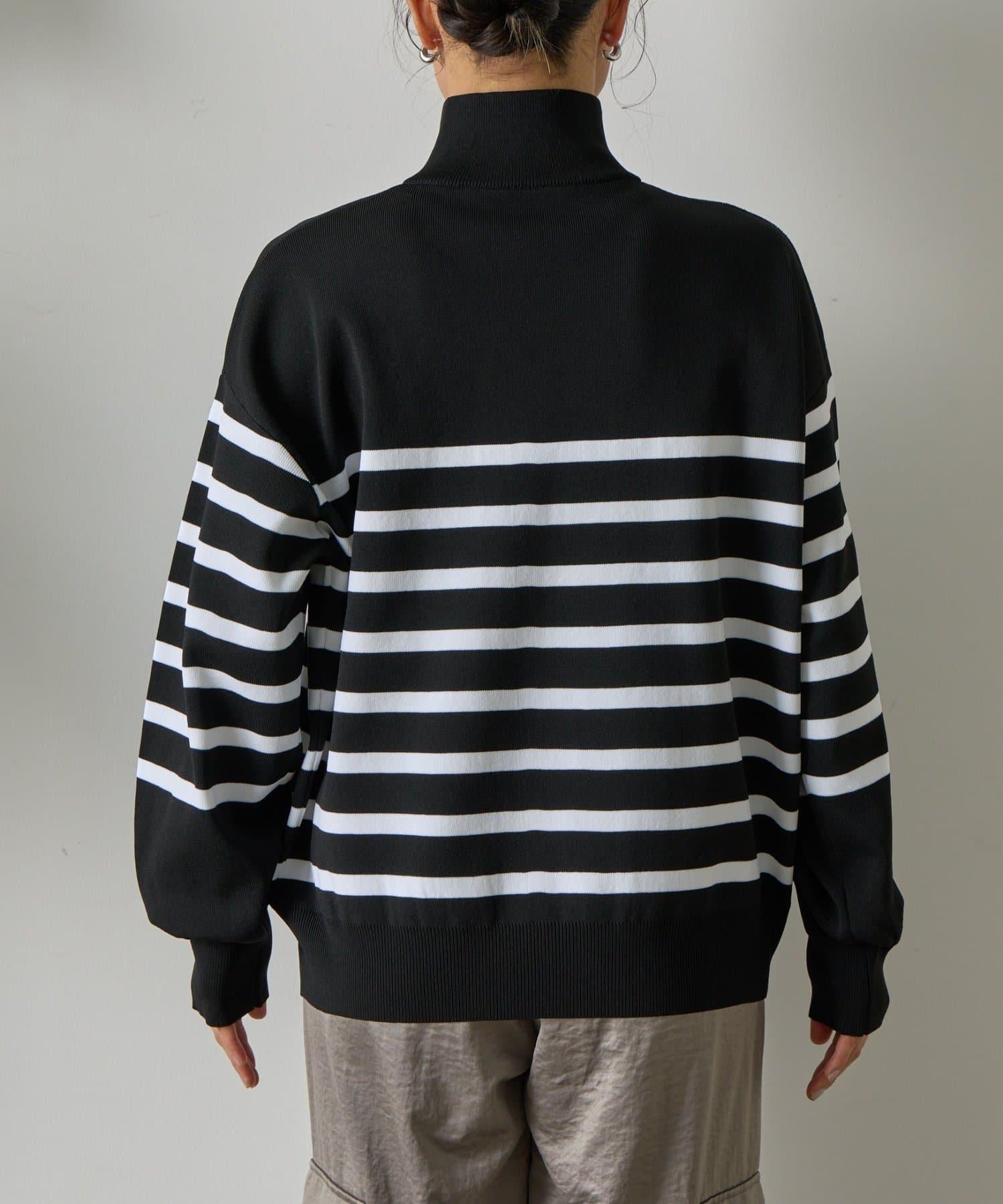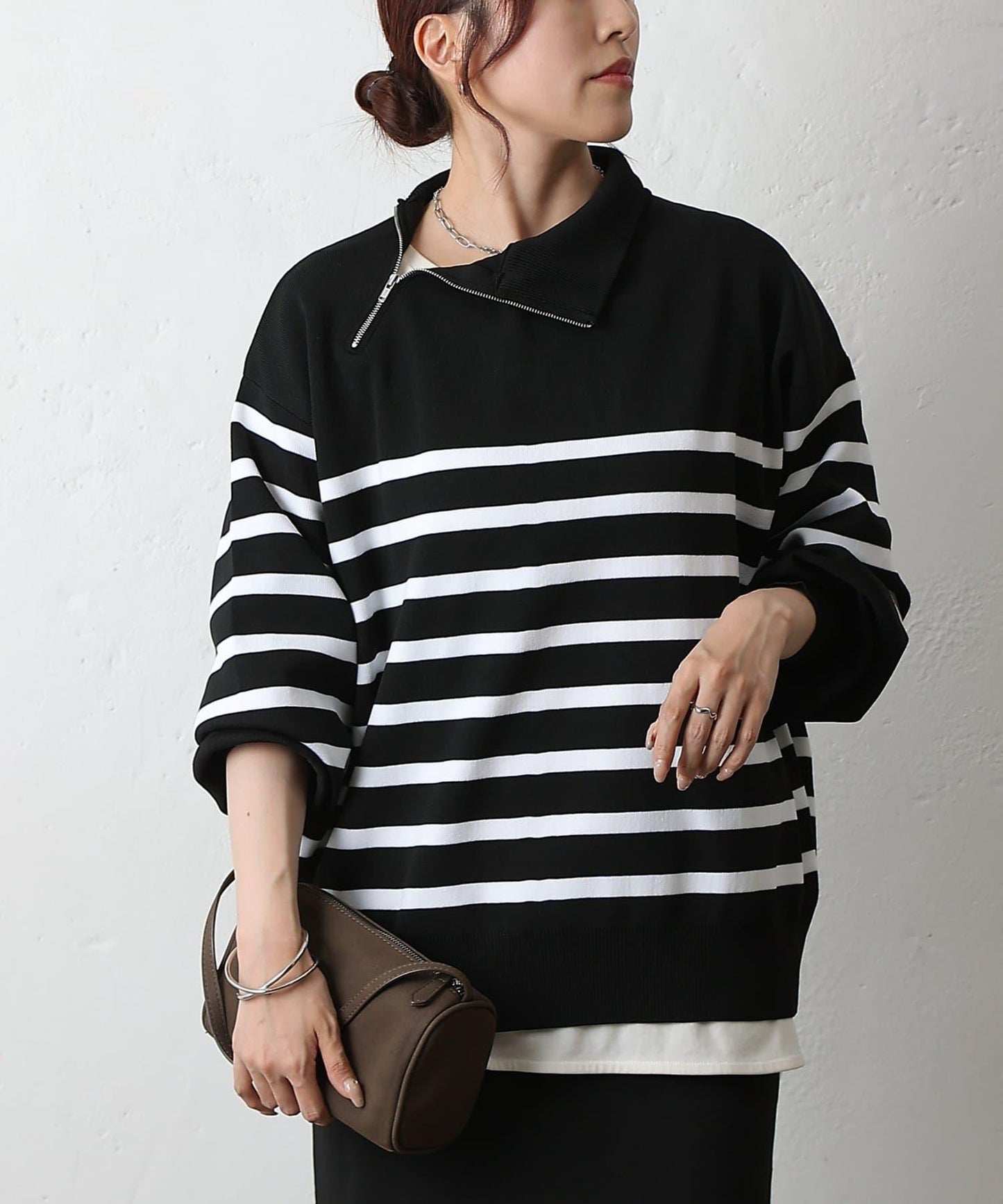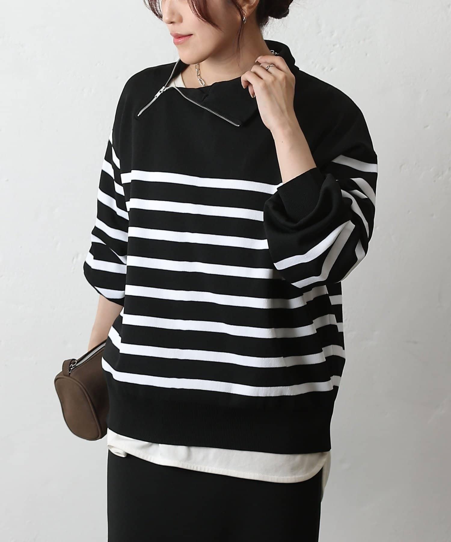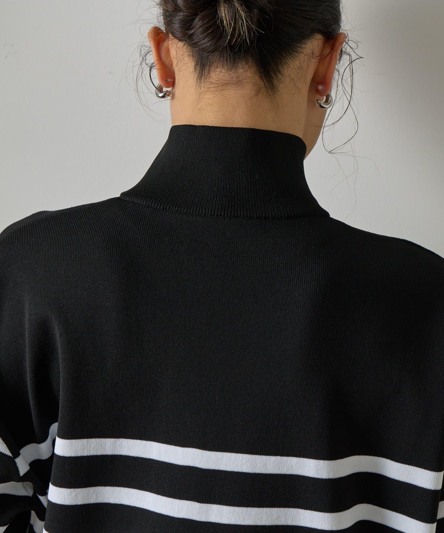 【AW】滌綸紗側頸拉鍊條紋針織衫